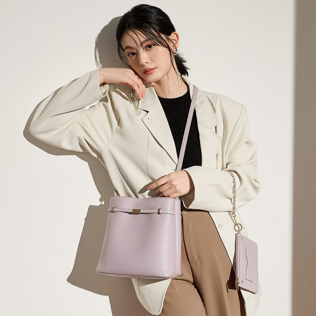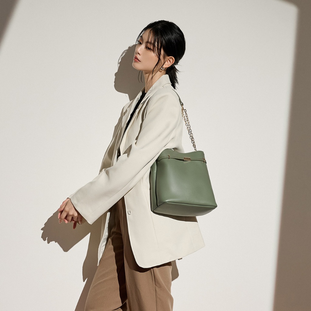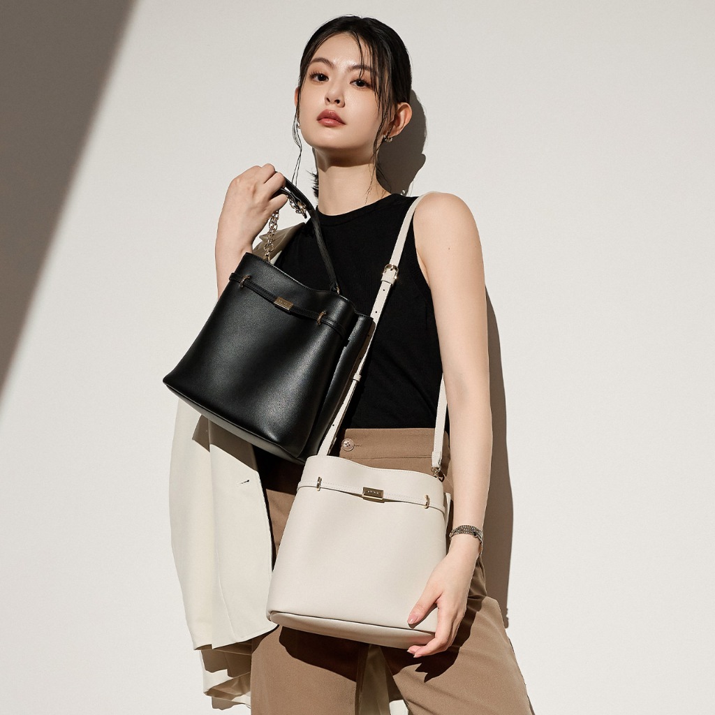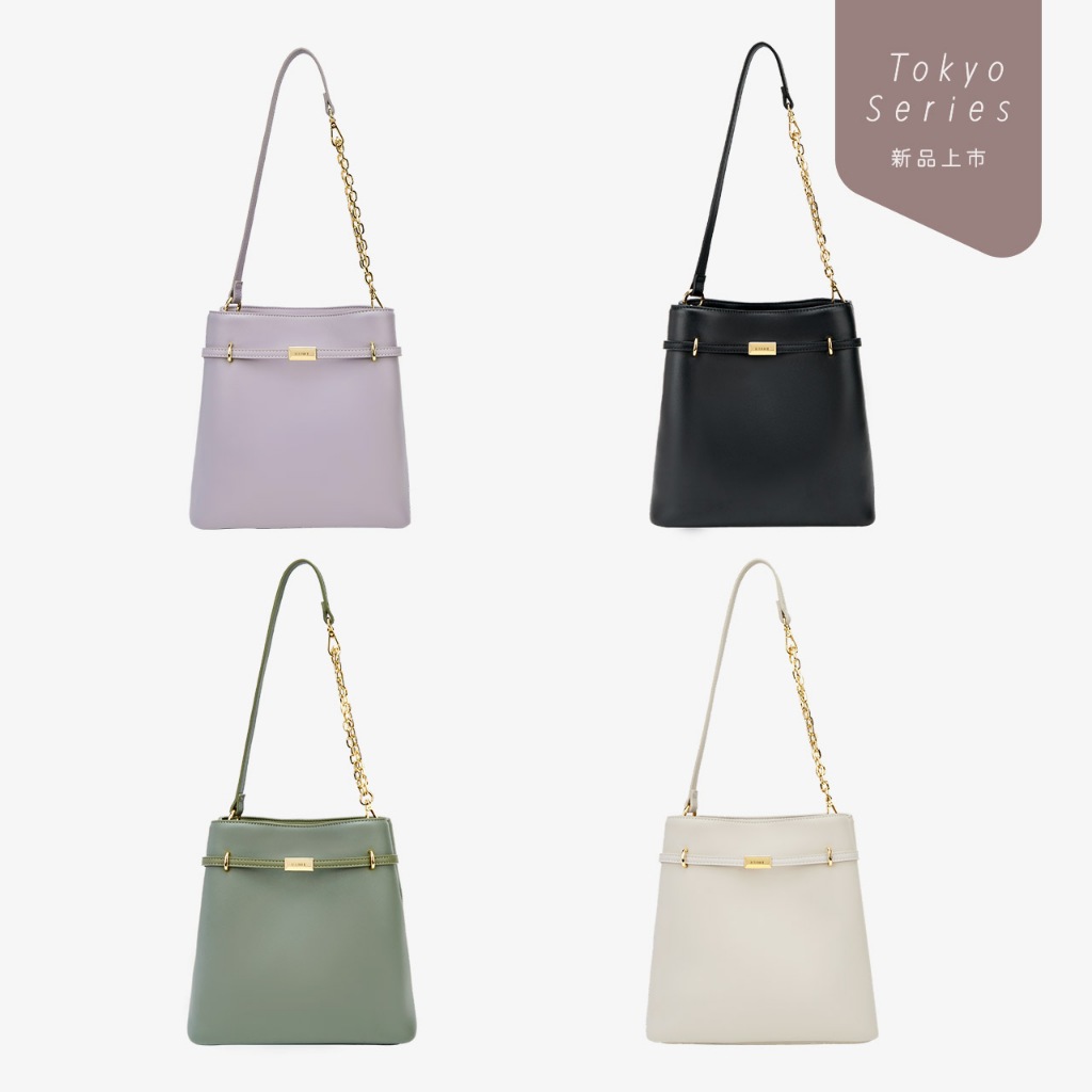 S’AIME City 雙背帶真皮金釦水桶包白色|綠色|紫色|黑色S’AIME 東京企劃官方旗艦店