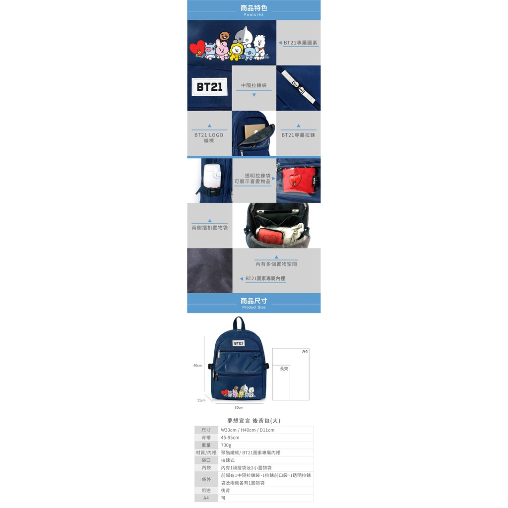 【PG美人網】 後背包(大) BT21 夢想宣言 R038黑色|珊瑚紅|藍色 PG美人網官方唯一旗艦店
