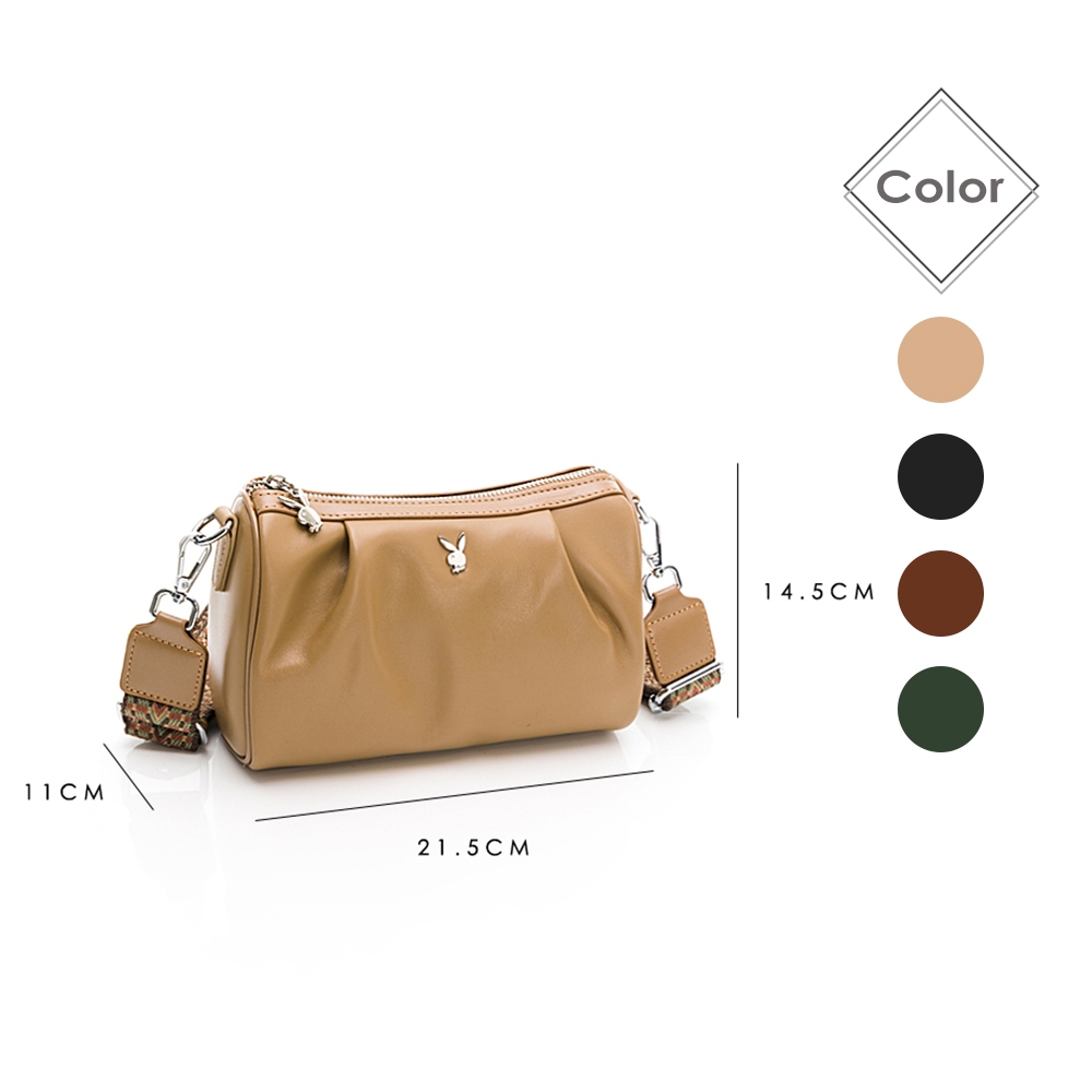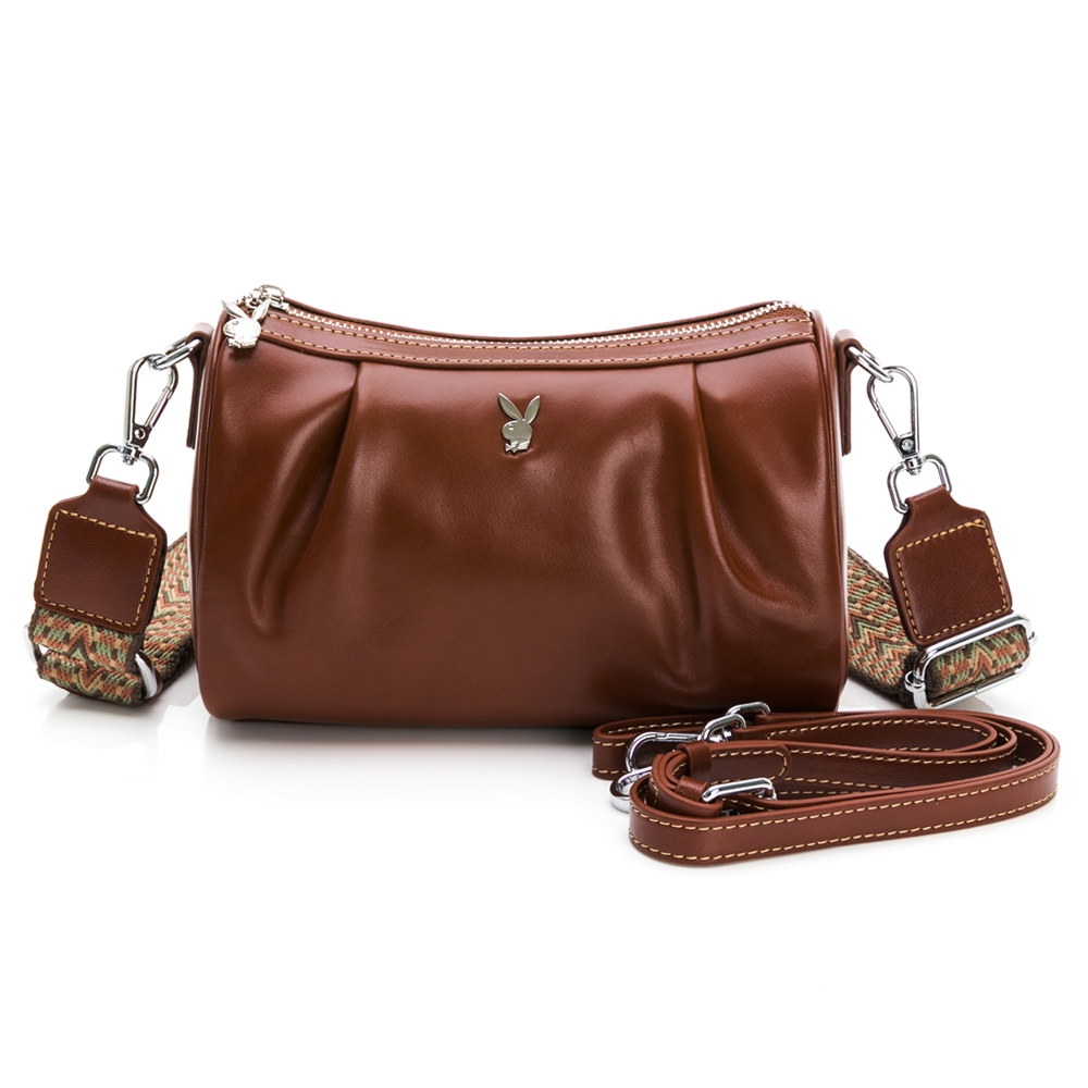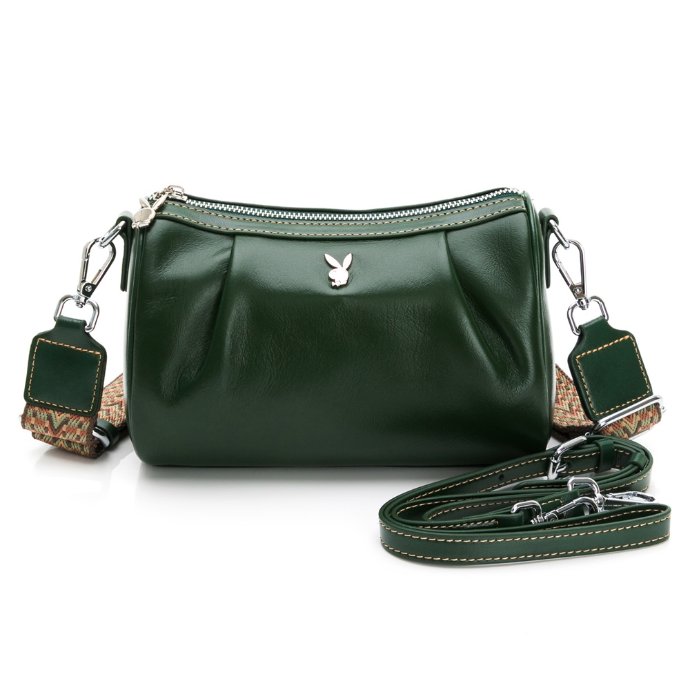 PLAYBOY – 斜背包附寬背帶 真皮系列 – 四色可選棕色|黑色|咖色|綠色PLAYBOY包包 官方旗艦館