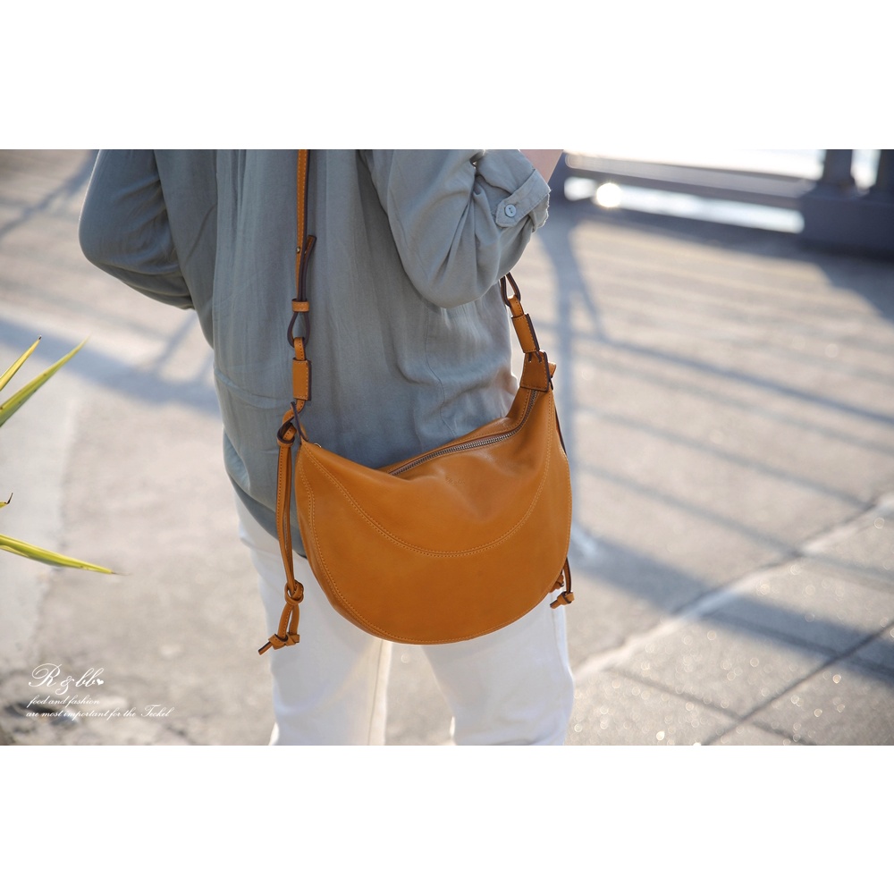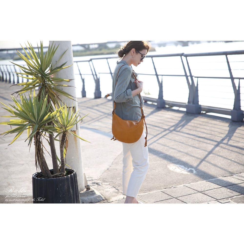 R&BB真皮牛皮包包-半圓流蘇馬鞍包 斜肩背包-棕色棕色R&BB 真皮靴包工坊