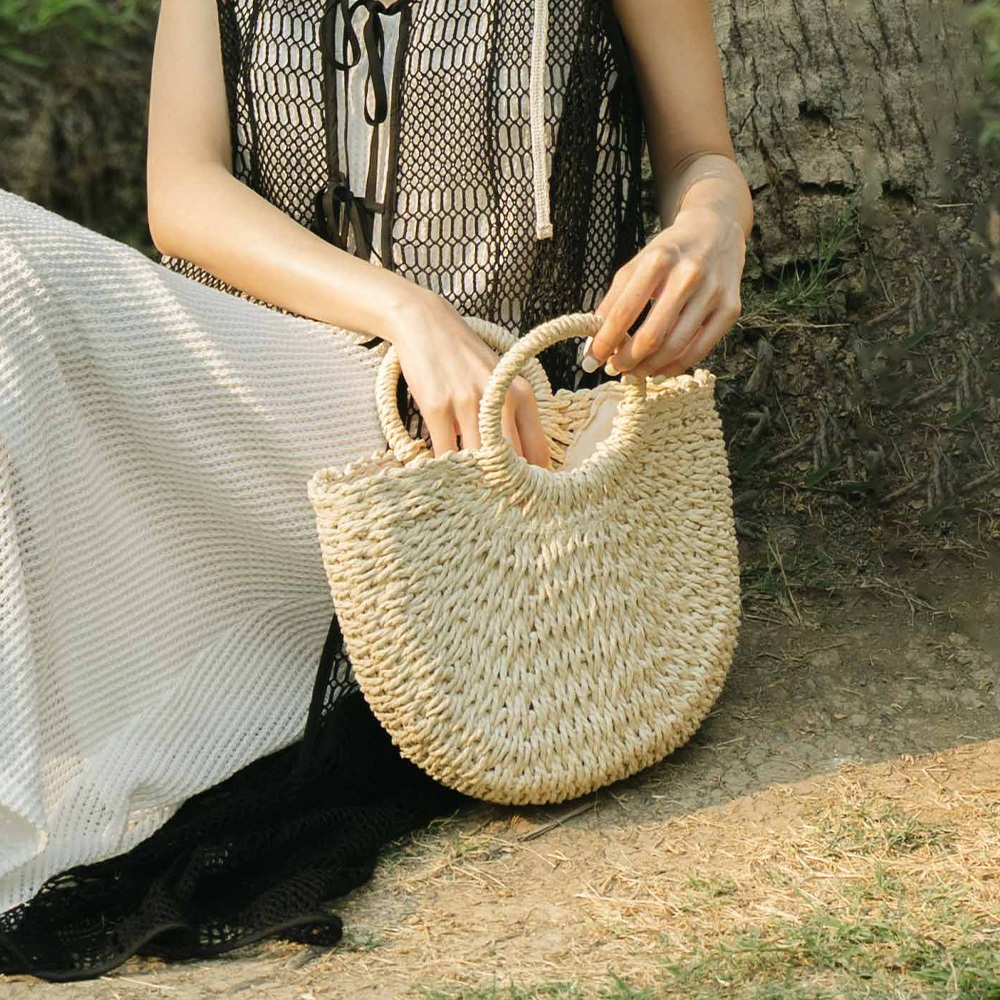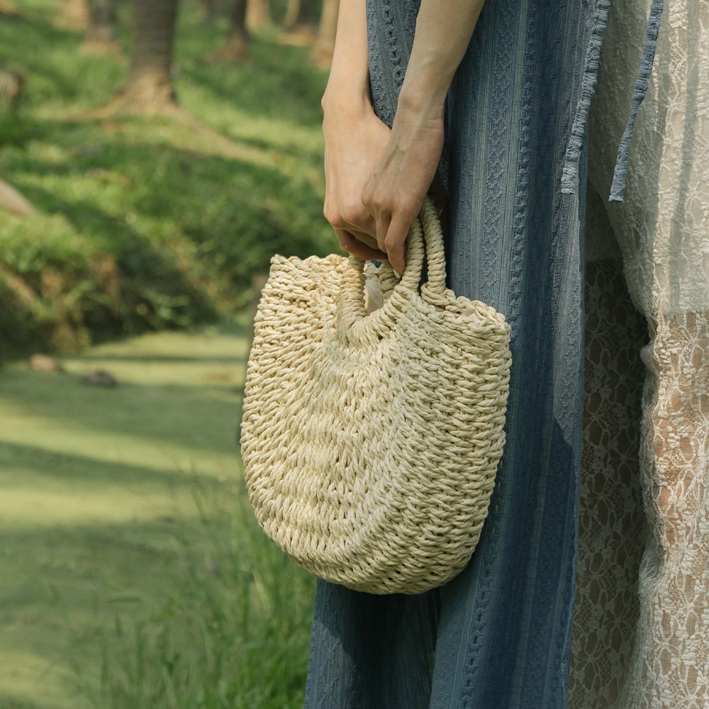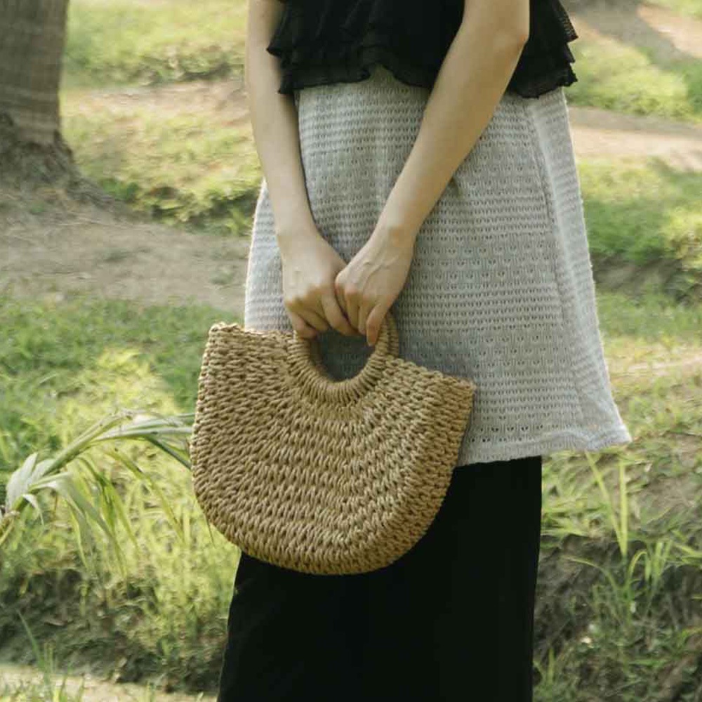 QUEENSHOP_ S 女裝 圓形提把造型藤編包 兩色售 現+預【06020158】杏|棕QUEENSHOP
