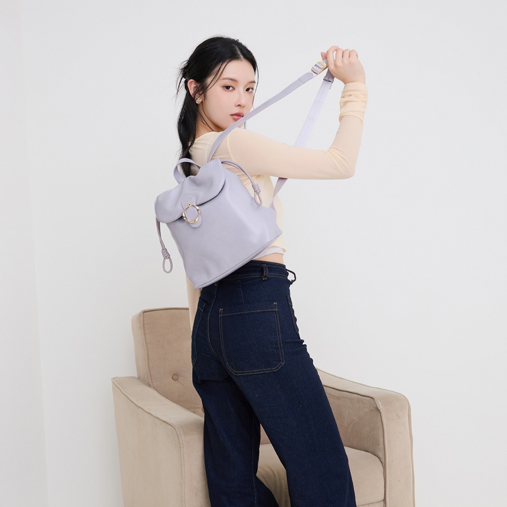 S’AIME 波紋五金束口掀蓋後背包黑色|淺灰|淺紫|深灰S’AIME 東京企劃官方旗艦店