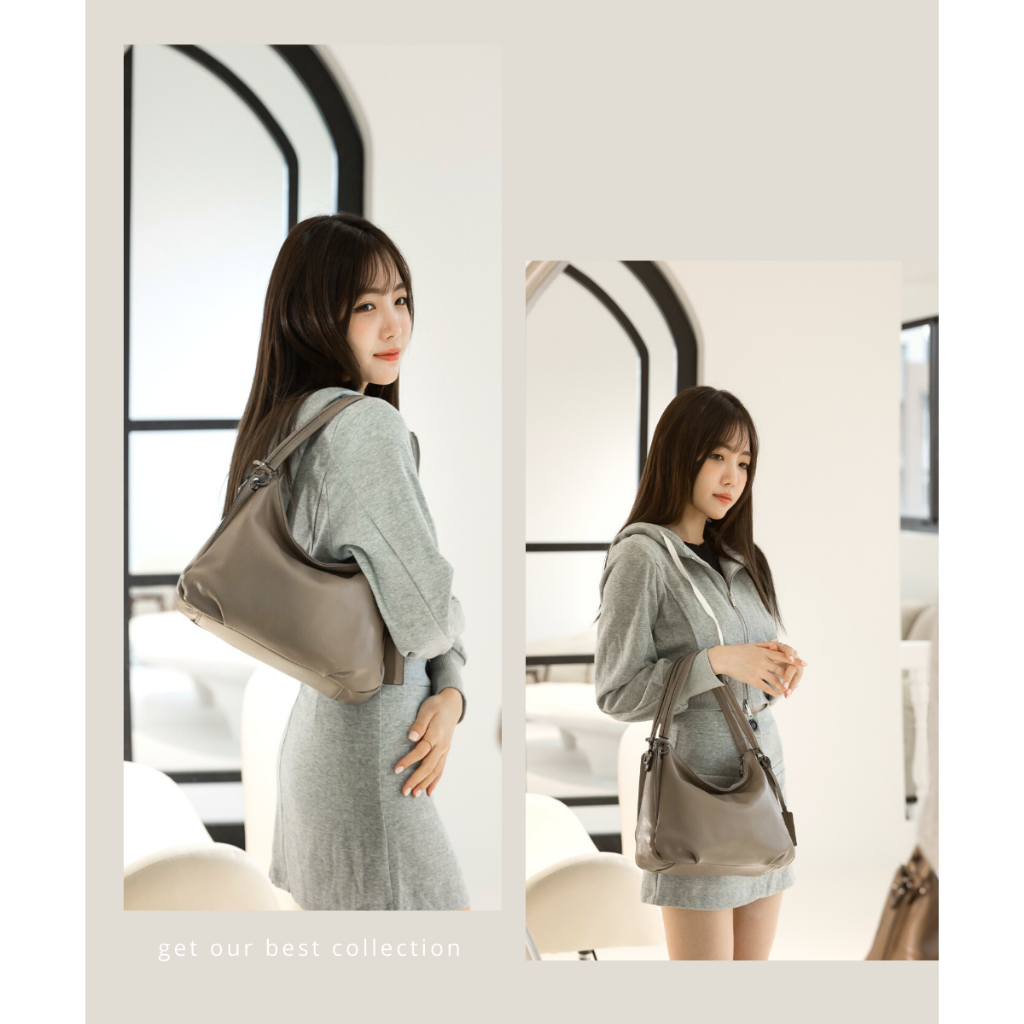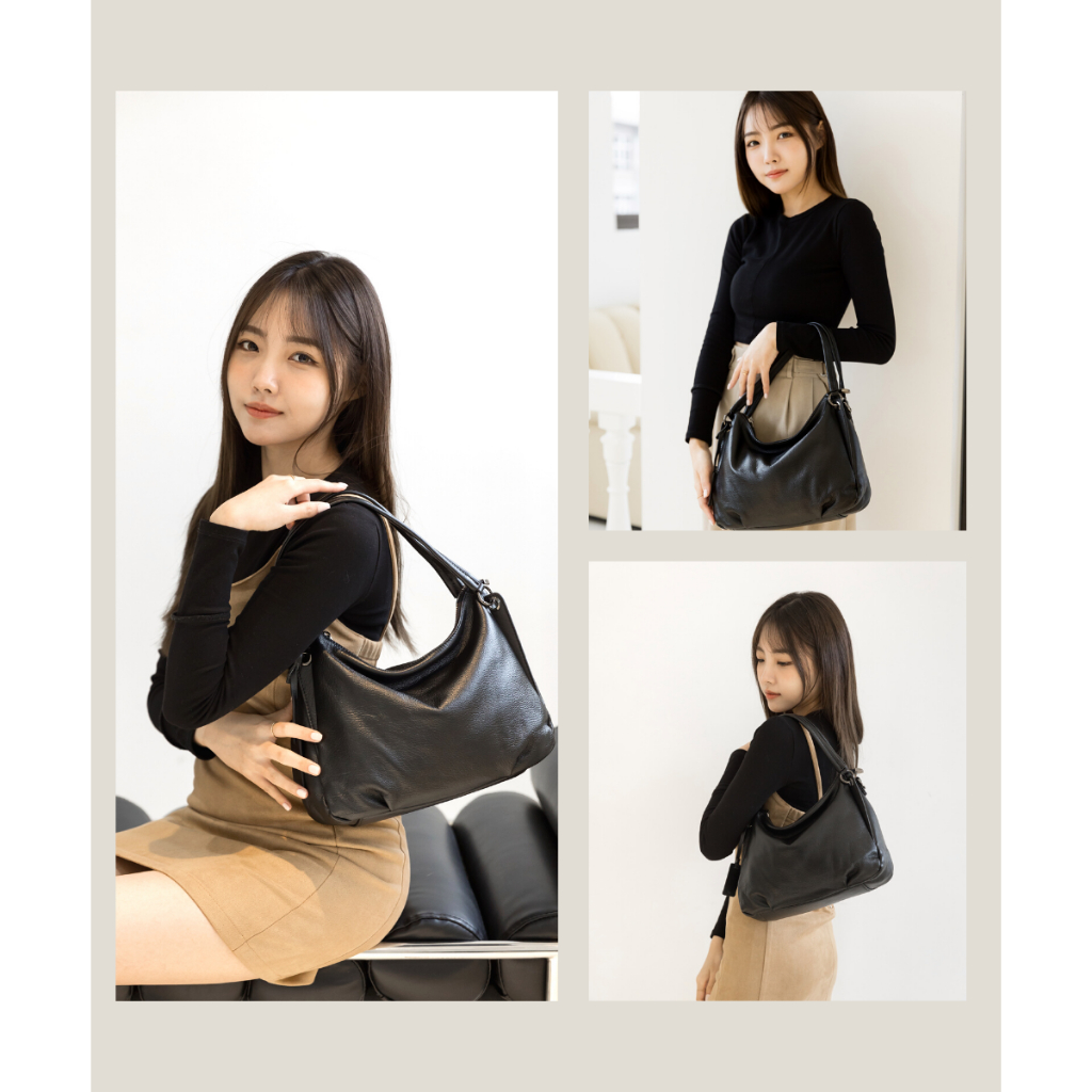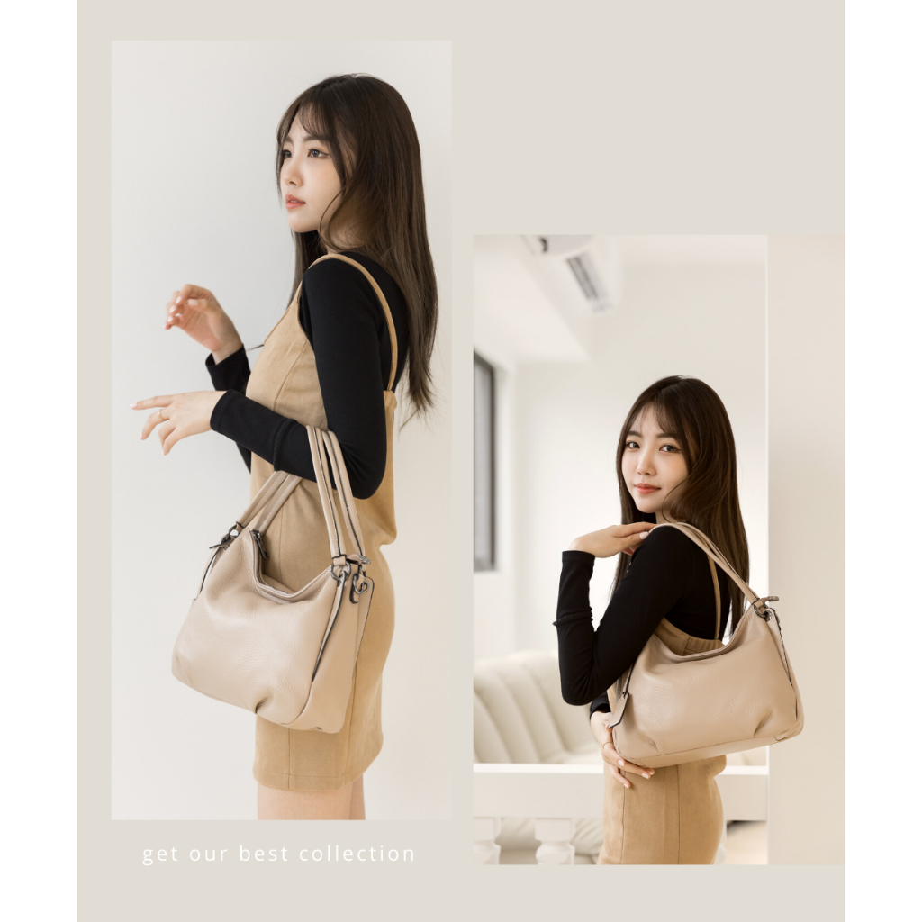 【MYMY】荔枝紋牛皮腋下包 ( 牛皮/手提/側背/斜背/多色任選/雙背帶/可放長夾 )奶茶棕|大象灰|南瓜橘|莫蘭迪綠|經典黑MYMY For Bag