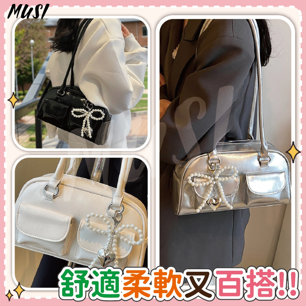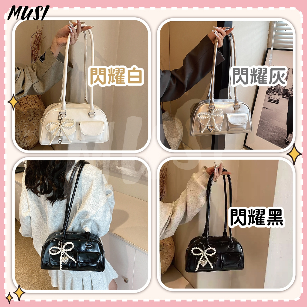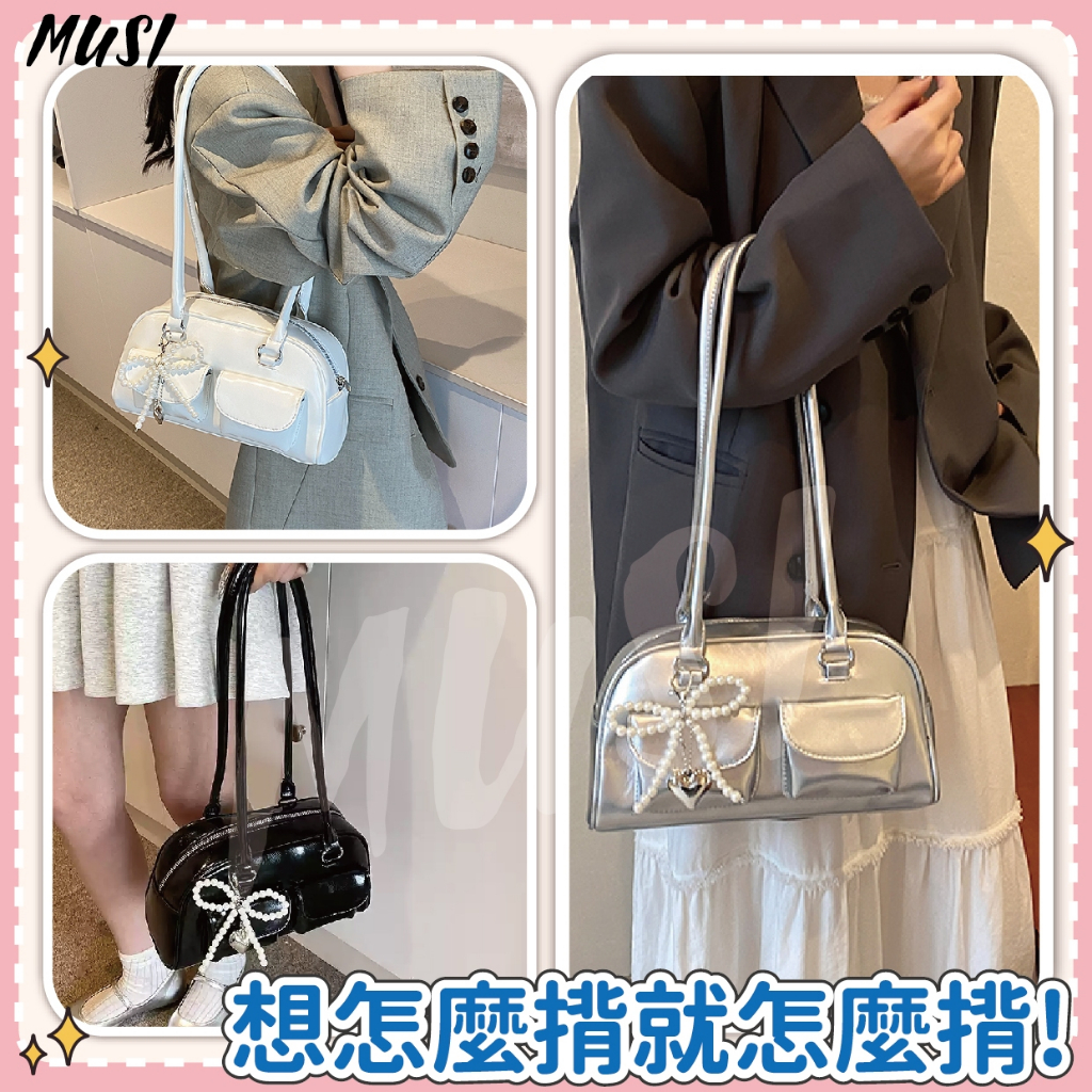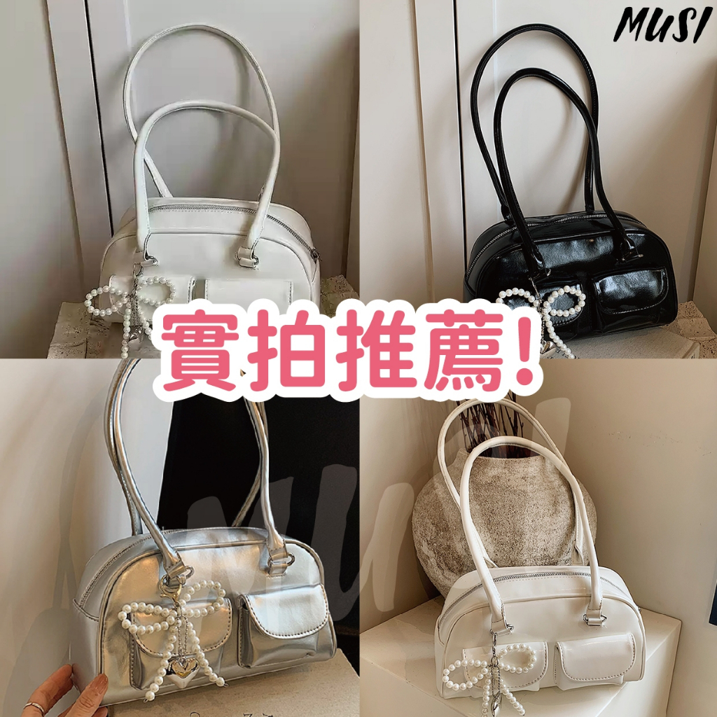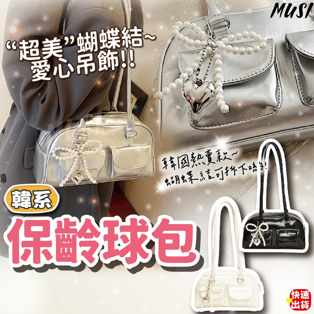 [隔日發貨]保齡球包 肩背包 韓系包包 韓國熱賣款 送珍珠蝴蝶結吊飾 質感包包 波士頓包 通勤包 女生包包韓系保齡球包-閃耀白 現貨隔天發|韓系保齡球包-閃耀銀 現貨隔天發|韓系保齡球包-閃耀黑 現貨隔天發MUSI 口罩&包包帽子 專賣
