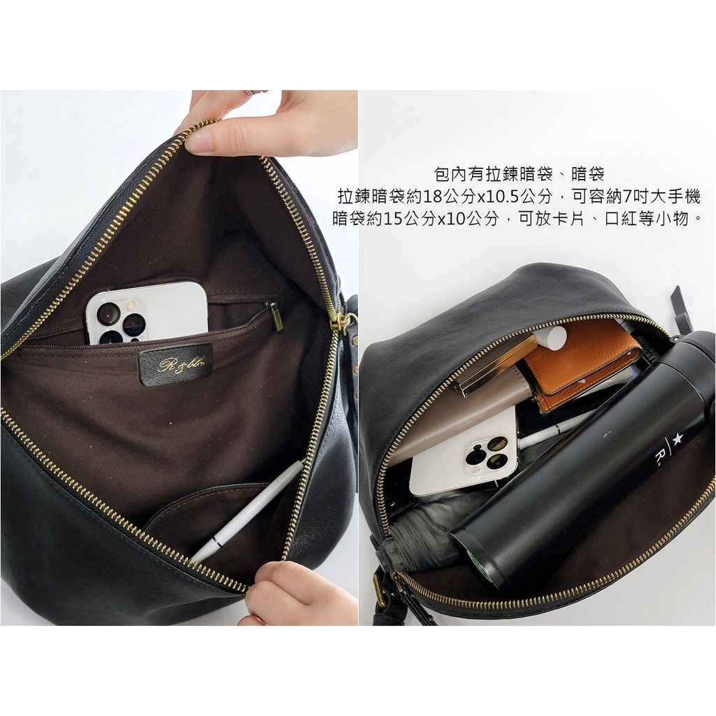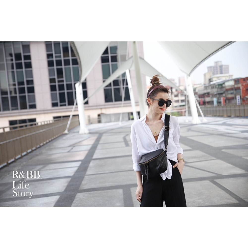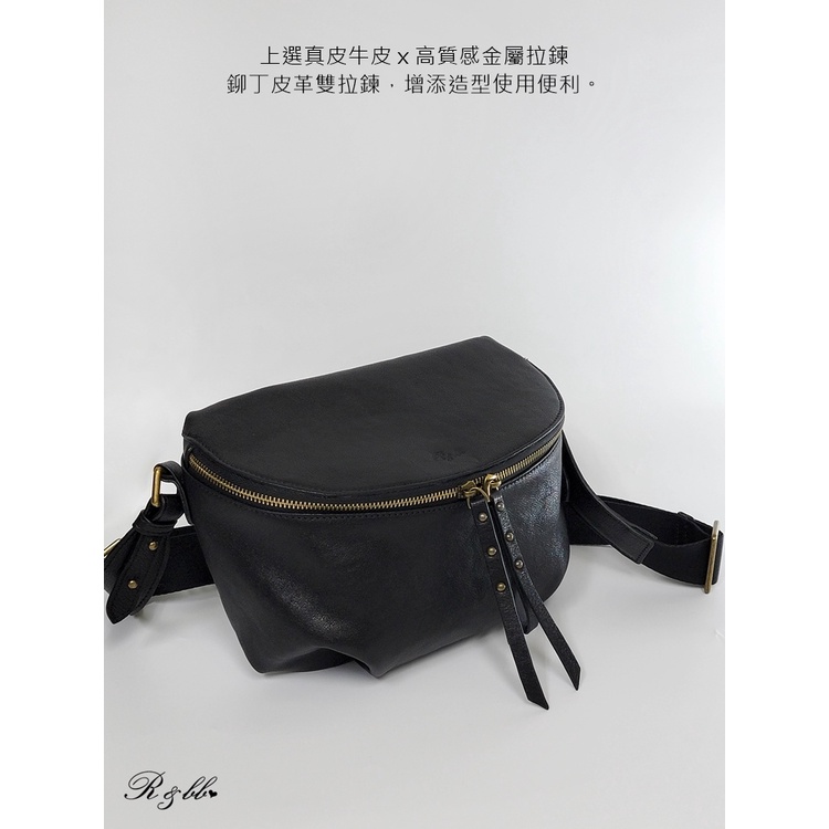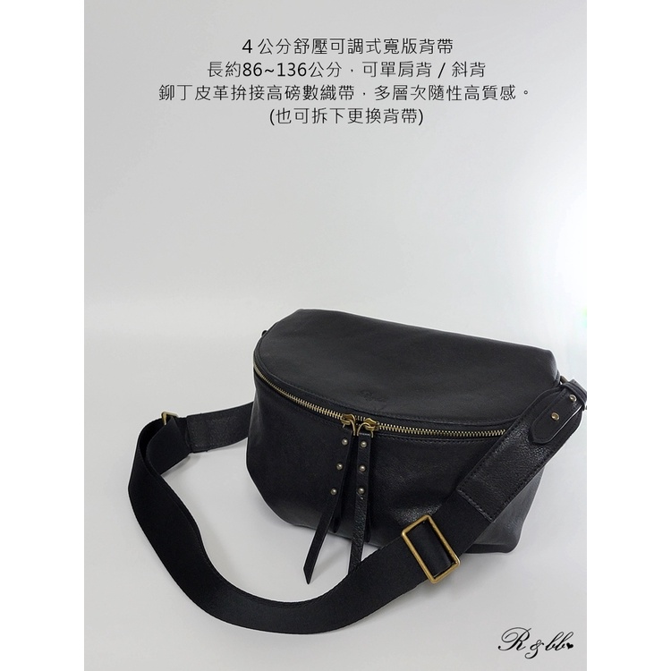 R&BB真皮牛皮包包-隨性百搭減壓寬背帶 大容量輕巧半月型馬鞍包-黑色黑色R&BB 真皮靴包工坊