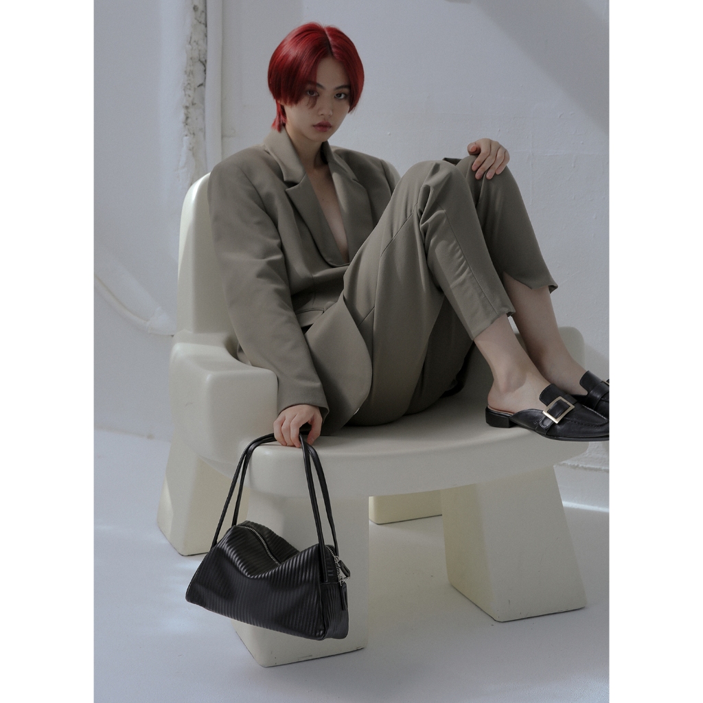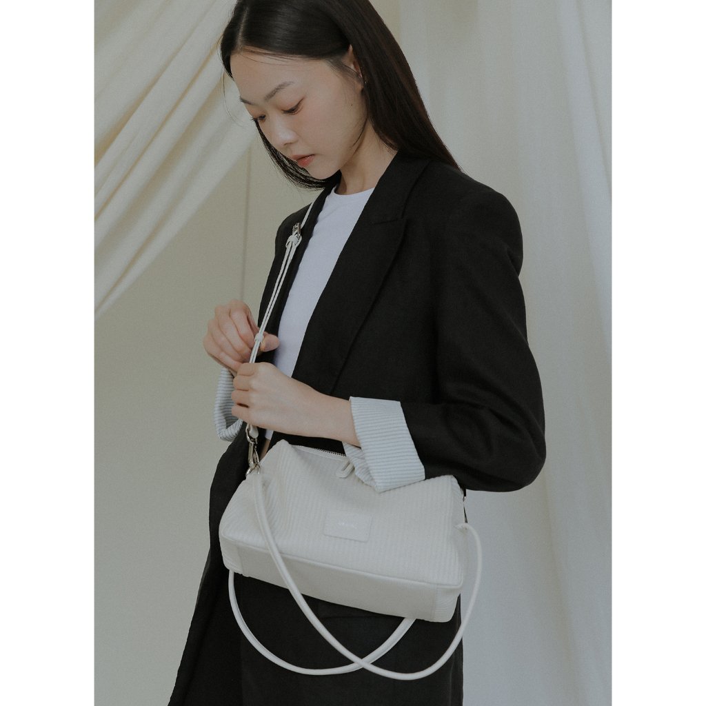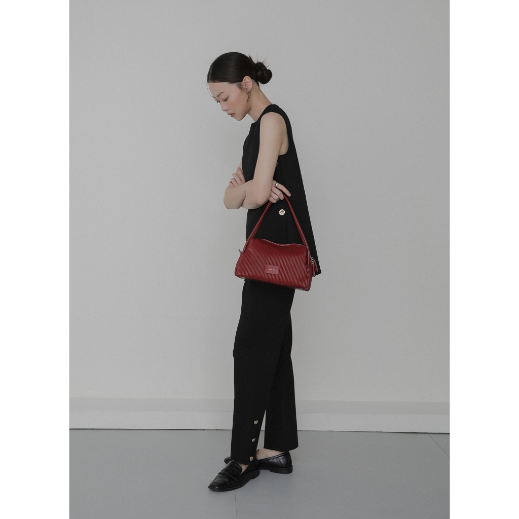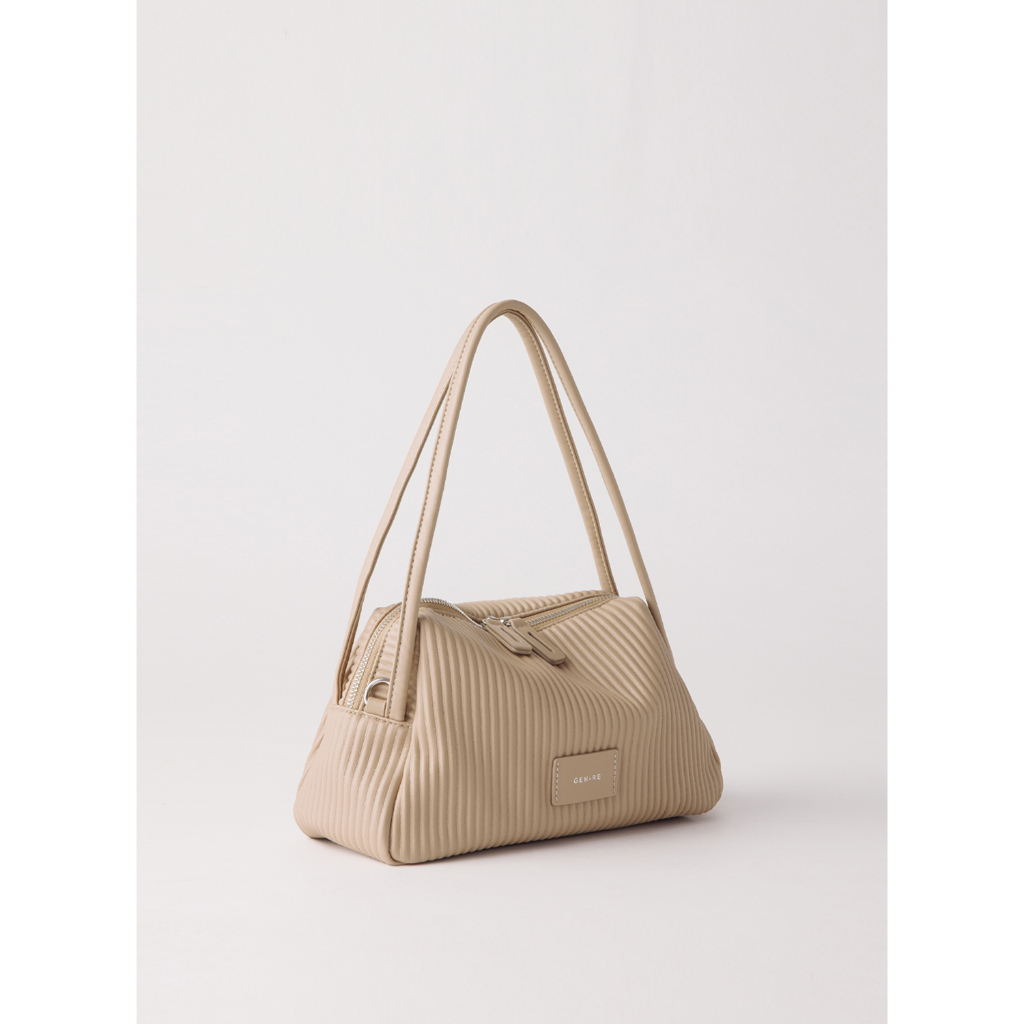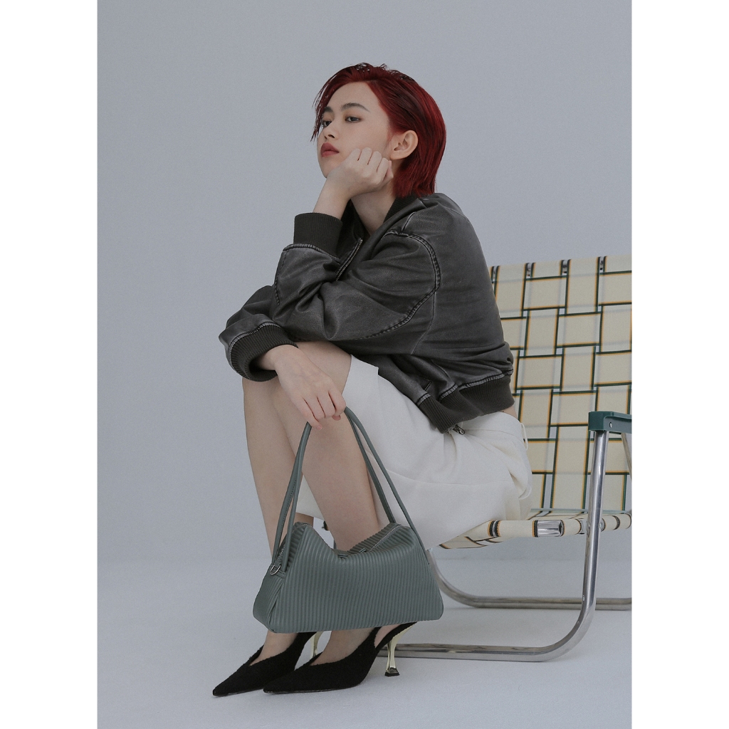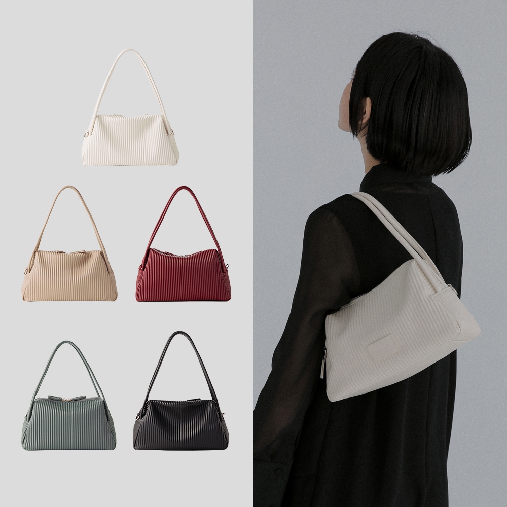 Genre | Pleat 無線制手提包 4色任選_可放 iPad Mini_純素皮革_附長背帶_肩背包生機綠|杏白|駝棕|絲絨紅|銀色PIXY官方旗艦店