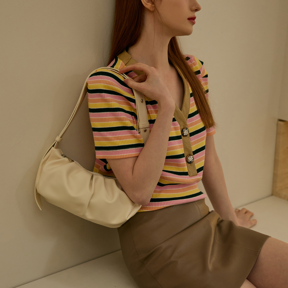 【ALICE MARTHA】Erin Mini 雲朵褶皺迷你肩背包 (12色可選)Butter|Dark Brown|Navy|Pearl Pink|Pearl Gold|Ash Gray|Coral Pink|Black|Ivory|Sliver|Light Tapue|Light GrayNoTag Select