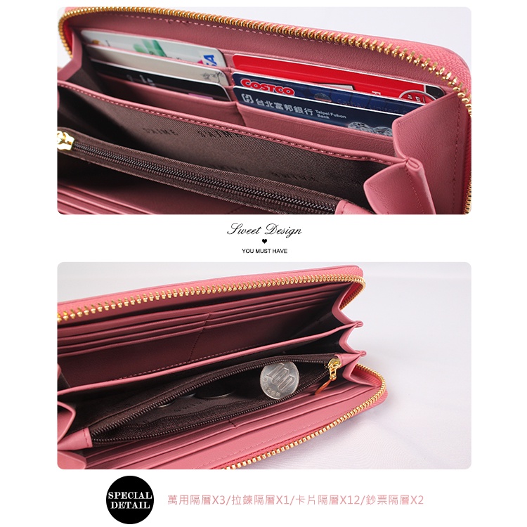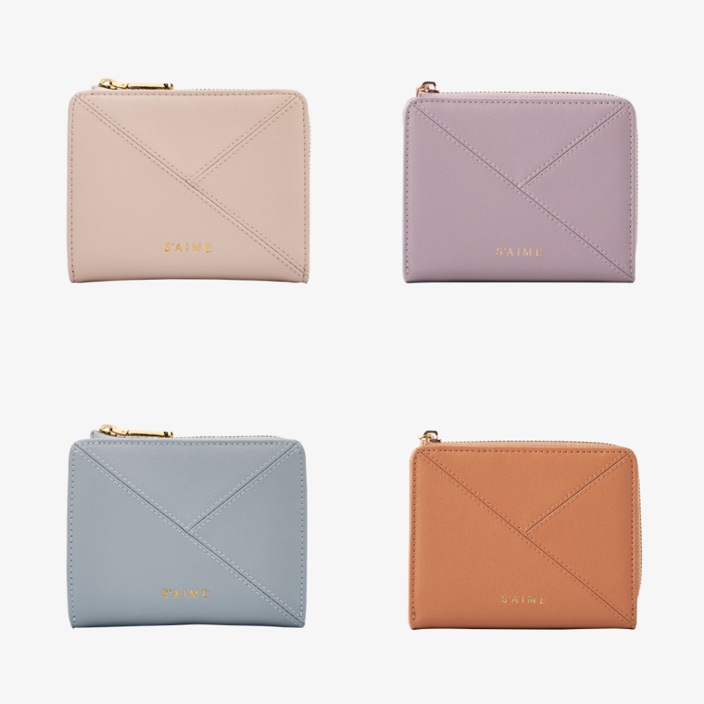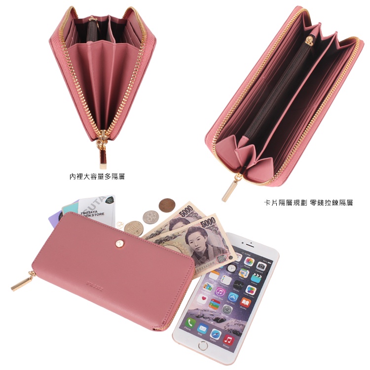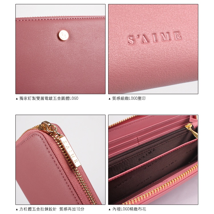 S’AIME 真皮經典拉鍊長夾杏色|粉駝|咖啡|深綠|深藍|酒紅|淺紫|黑色|藍灰Long WalletsS’AIME 東京企劃官方旗艦店