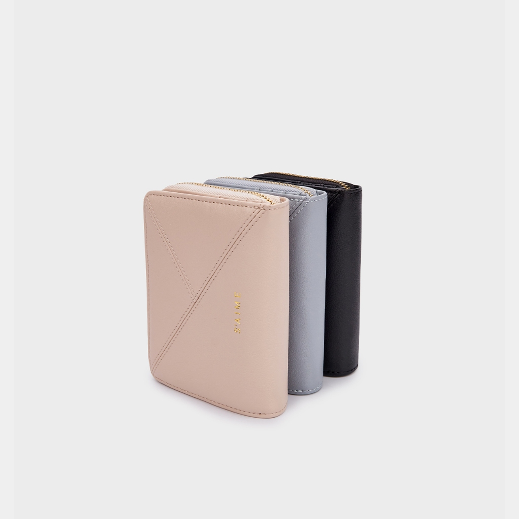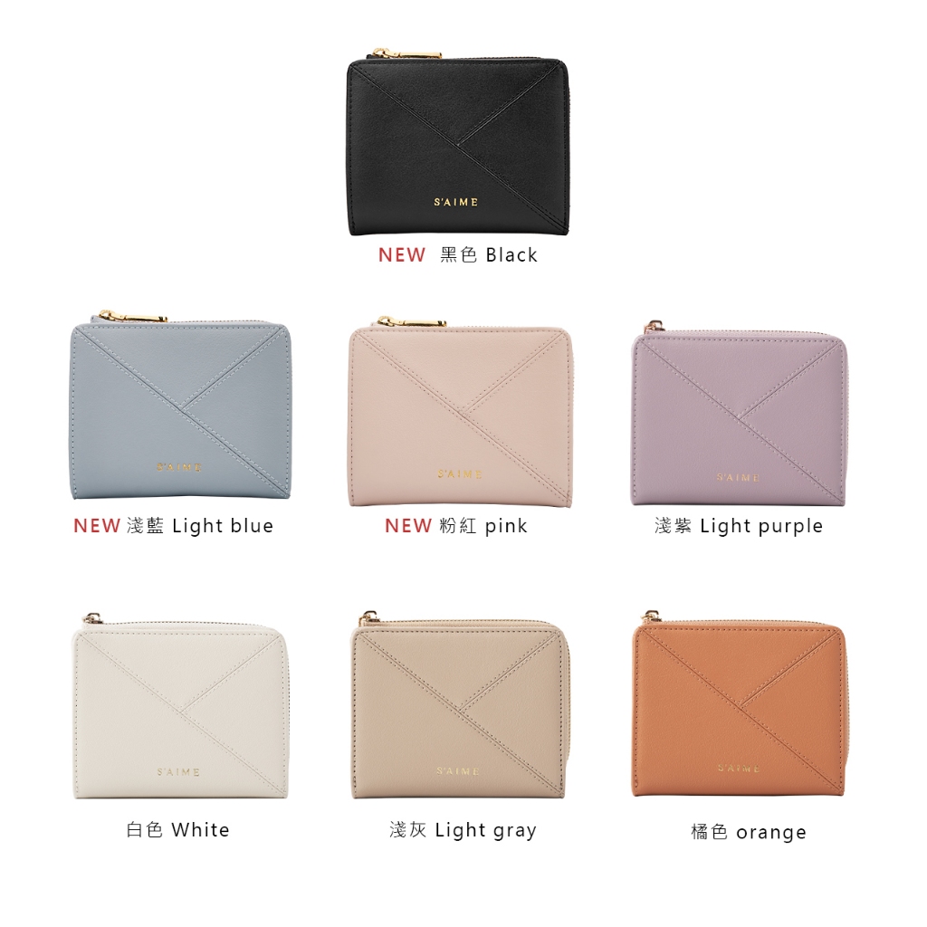 S’AIME 真皮拼接對折短夾橘色|淺灰|白色|淺紫|黑色|淺藍|粉色Bifold & Trifold WalletsS’AIME 東京企劃官方旗艦店