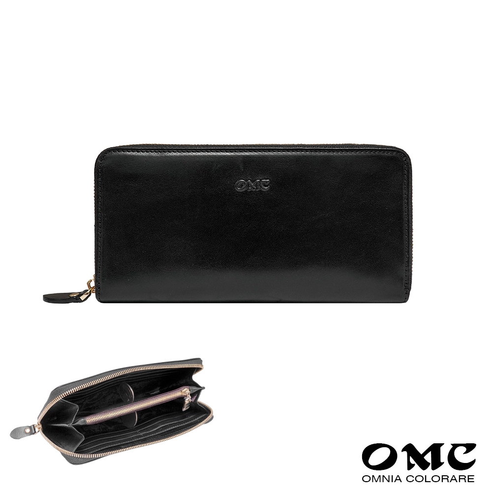 【OMC】微NG福利品-新品-原廠價3800-12卡1照植鞣革單拉鍊牛皮長夾-黑色