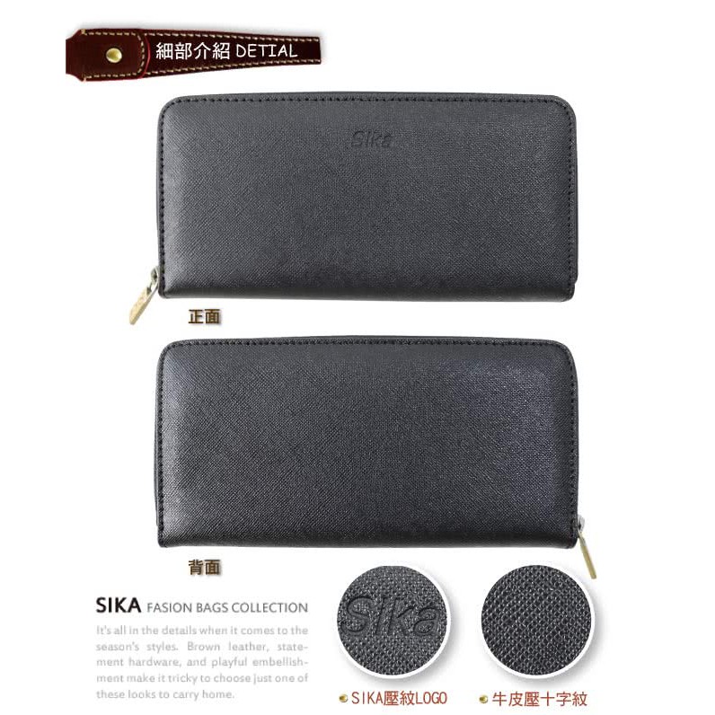 【蝦皮獨家】【Sika】【200筆五星好評】【台製】時尚牛皮拉鍊長夾(T8236質感黑)【全館免運】【高CP值】【蝦皮獨黑色牛皮壓十字紋|霧黑色素面牛皮Long WalletsSika -台灣手工包(官方旗艦店)