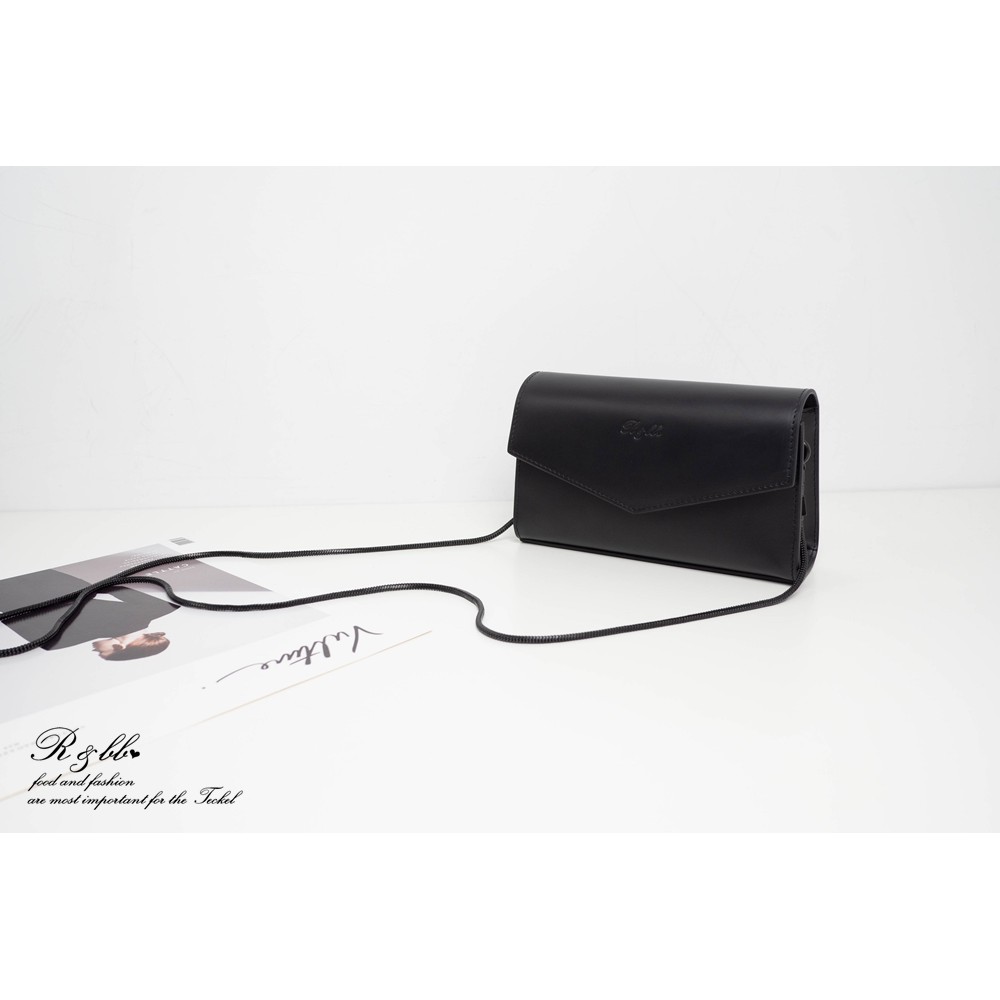 R&BB真皮牛皮包包-簡約時尚挺版隨身鏈帶包 肩背&斜背小方包-黑色黑色R&BB 真皮靴包工坊