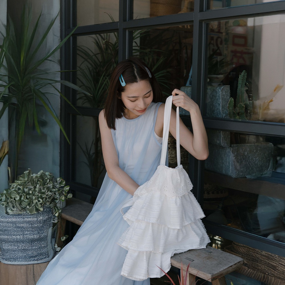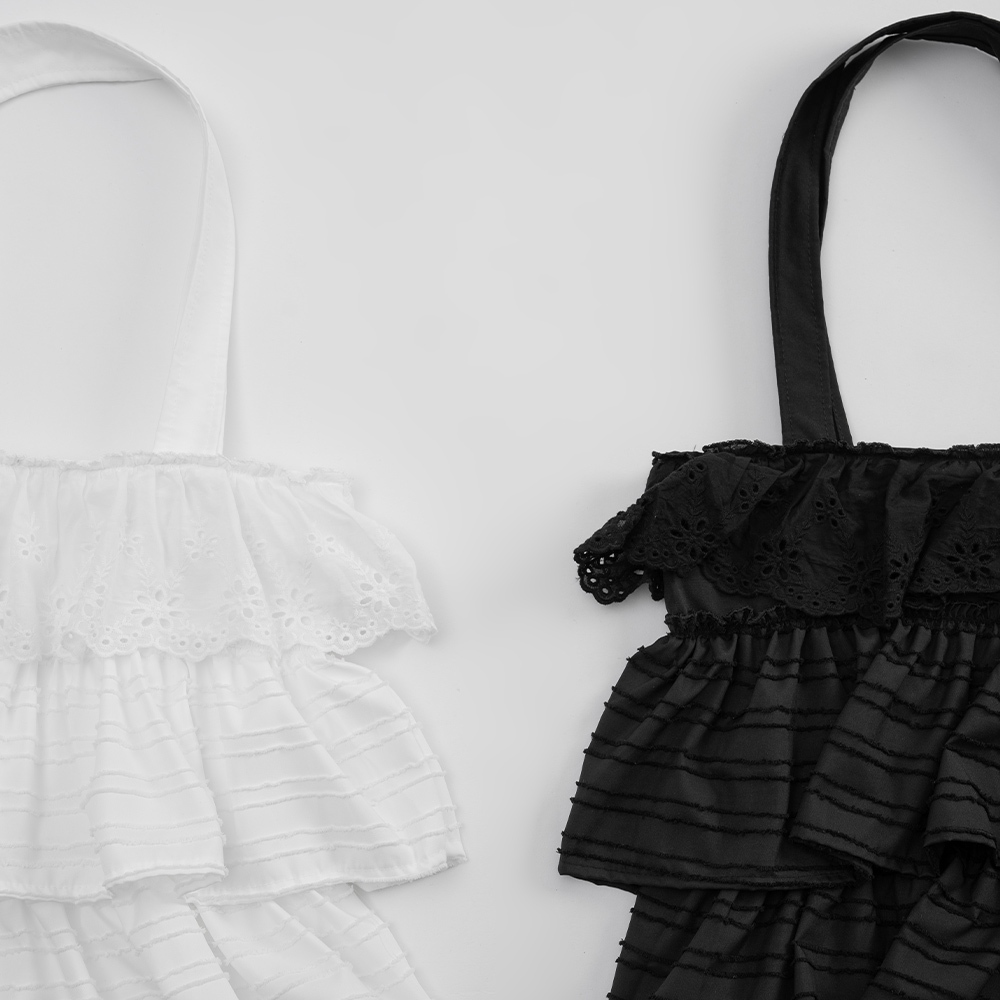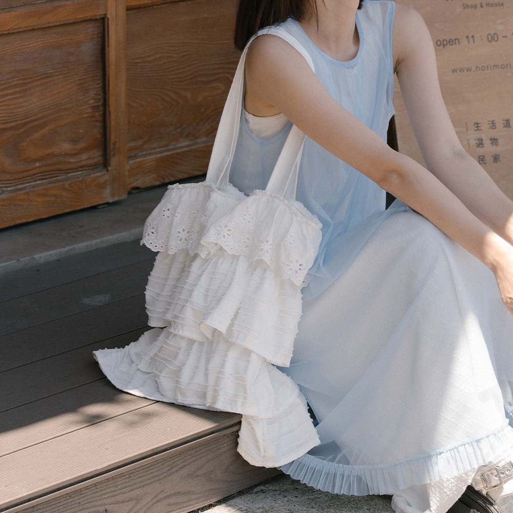 QUEENSHOP_ S 女裝 多層緹花蛋糕肩背包 兩色售 現+預 【06010500】黑|白QUEENSHOP