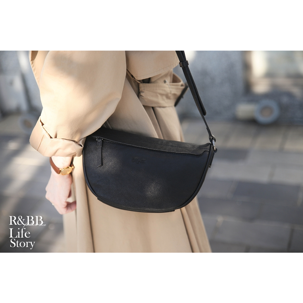 R&BB|Saddle Muse|真皮輕巧馬鞍包 隨性百搭斜背包-黑色黑色R&BB 真皮靴包工坊