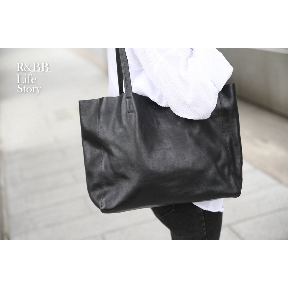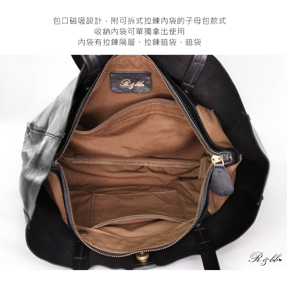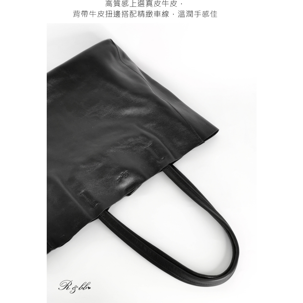 R&BB真皮牛皮包包-柔軟皮革高質感子母大方包 超大容量托特包-黑色黑色R&BB 真皮靴包工坊