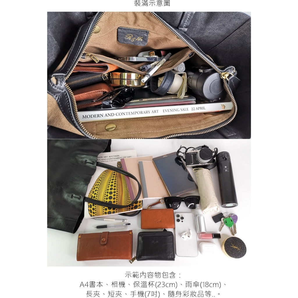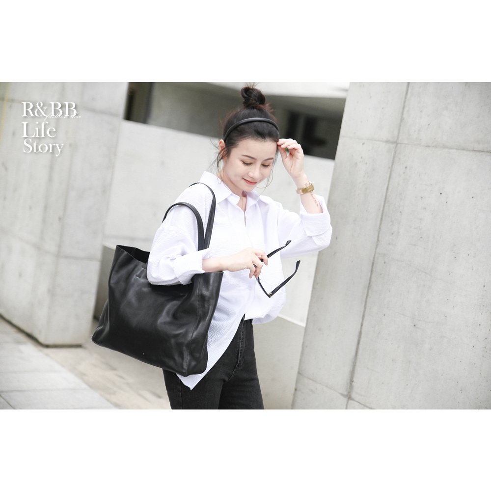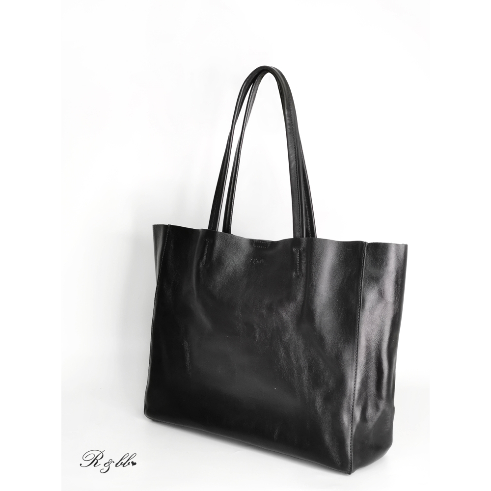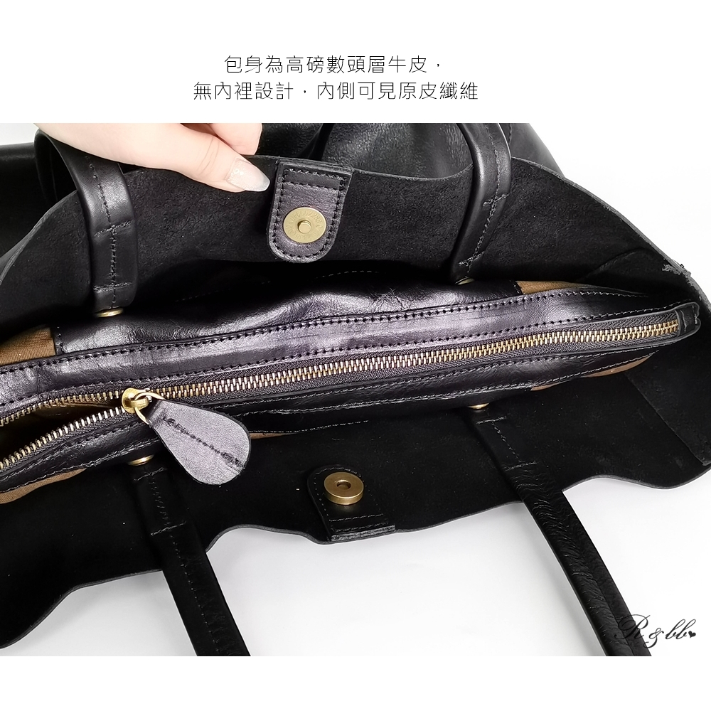 R&BB真皮牛皮包包-柔軟皮革高質感子母大方包 超大容量托特包-黑色黑色R&BB 真皮靴包工坊