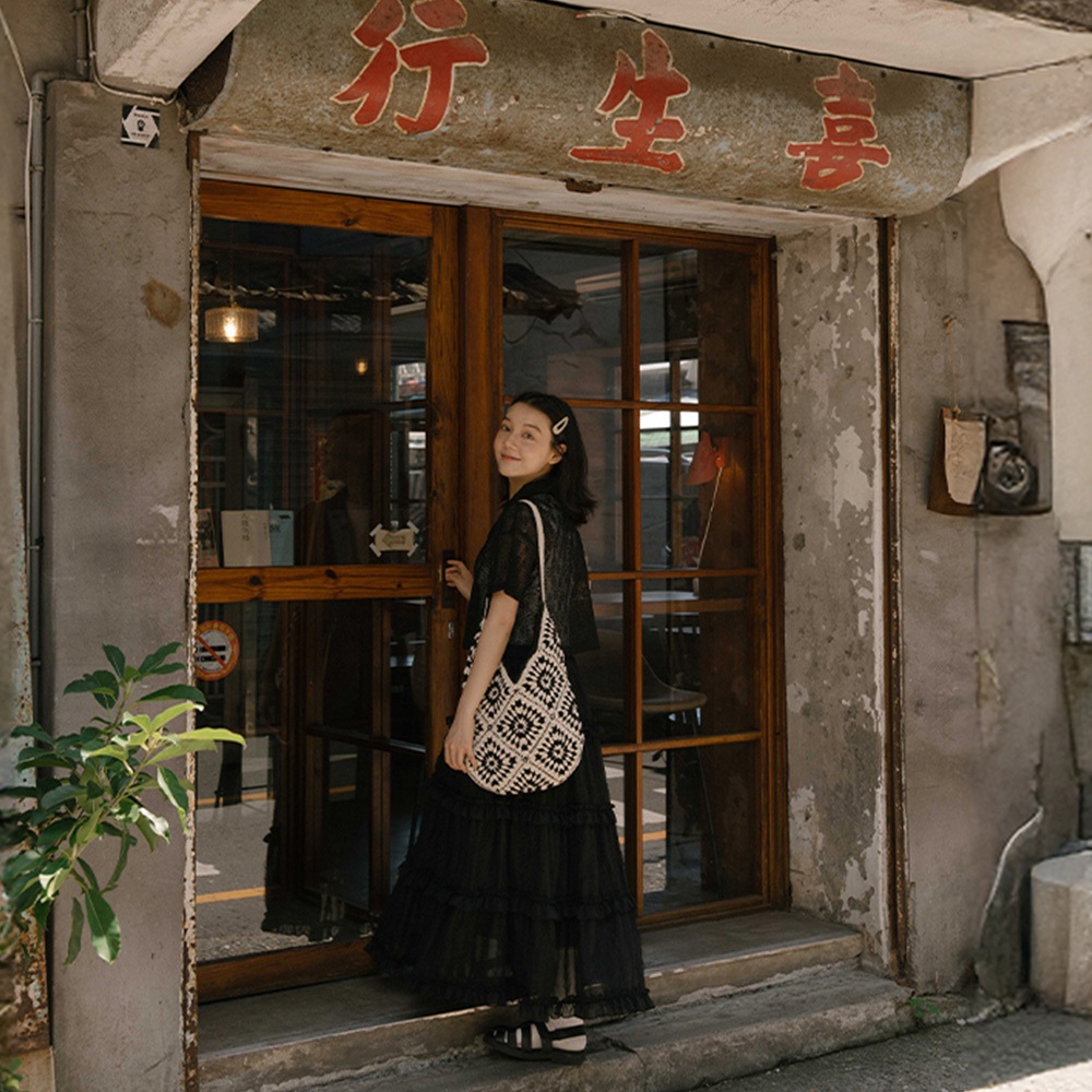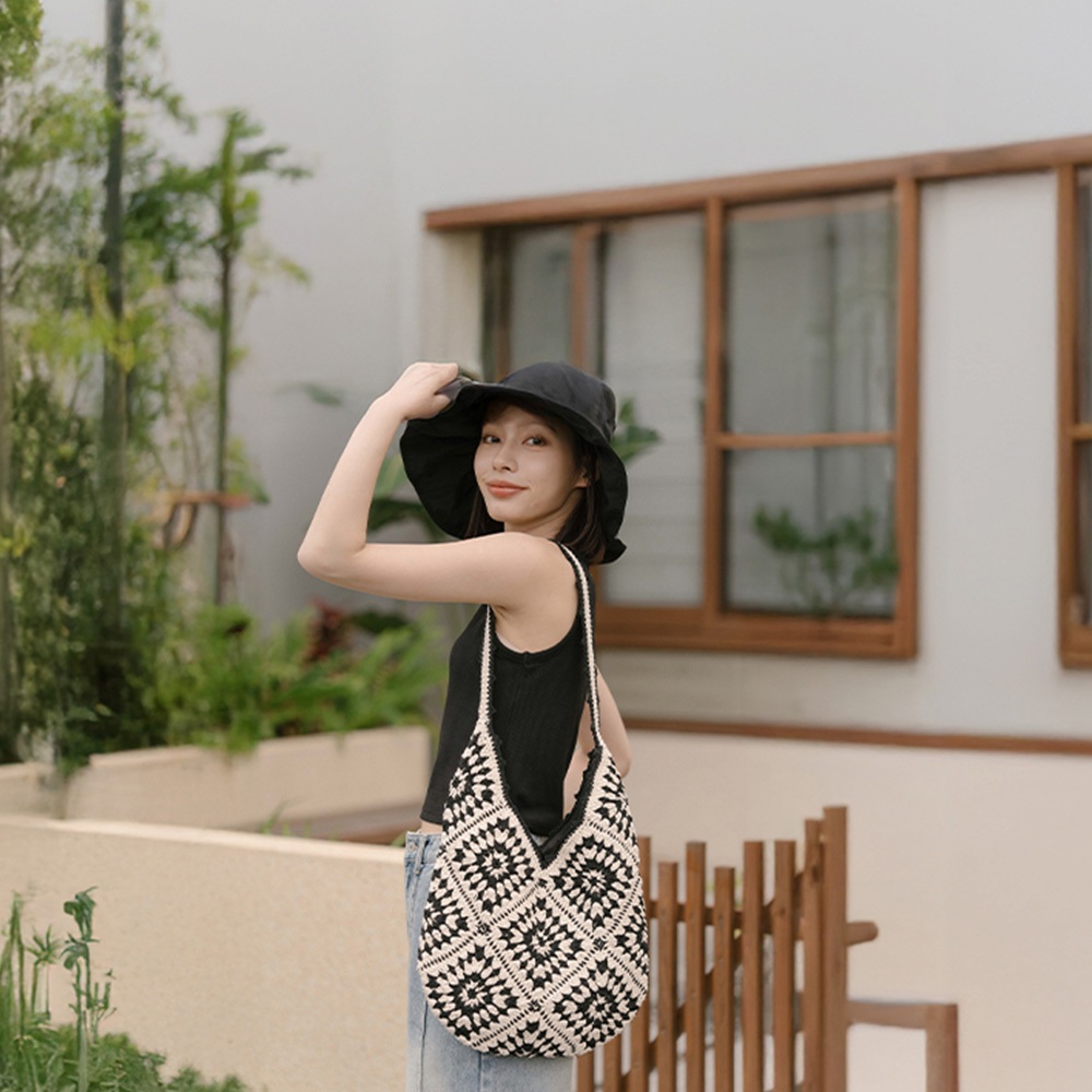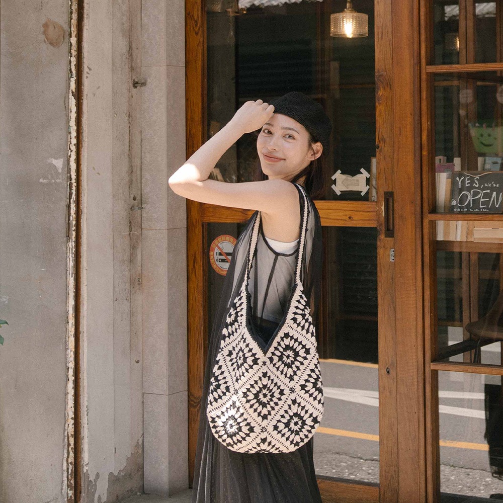 QUEENSHOP_ S 女裝 黑白撞色圖騰編織肩背包 現+預 【06010497】依賣場QUEENSHOP