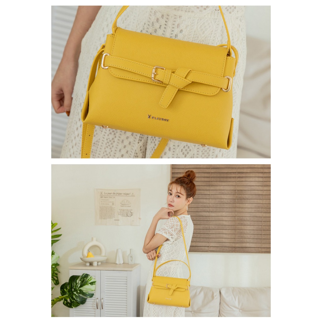 PLAYBOY – 翻蓋斜背包 純色chic系列 – 四色可選黑色|粉色|黃色|咖色PLAYBOY包包 官方旗艦館