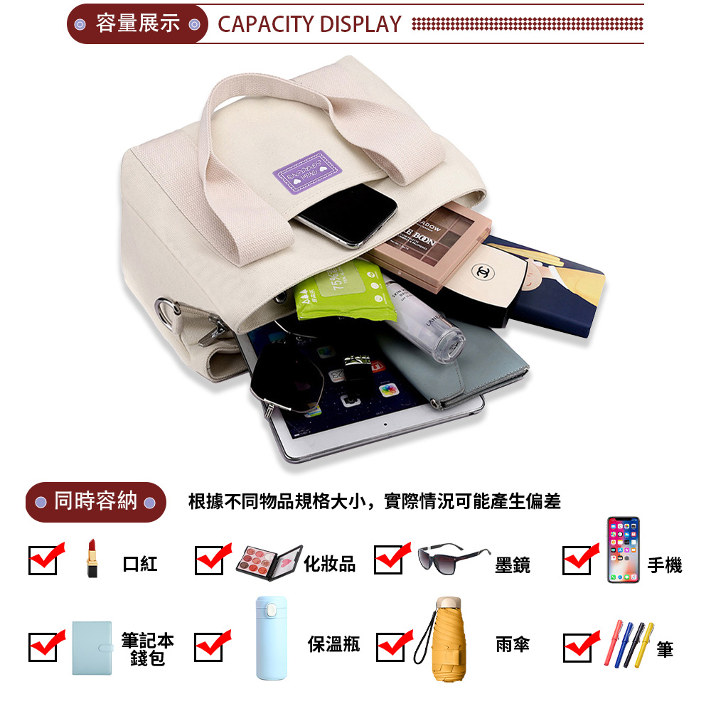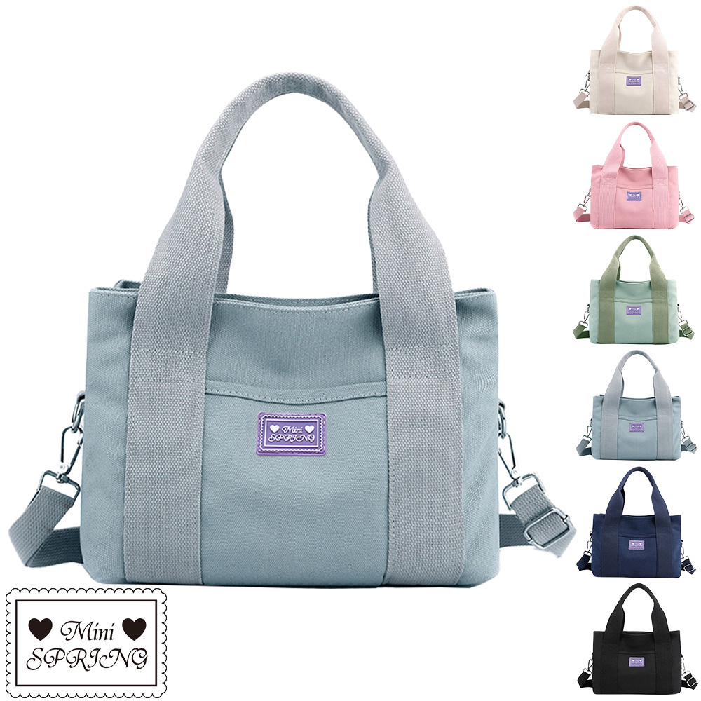 mini spring-日式手提斜背帆布包 三層手提斜背帆布包-多色粉紅色|湖水綠|藏青色|經典黑|灰藍色|米白色SPRING包包