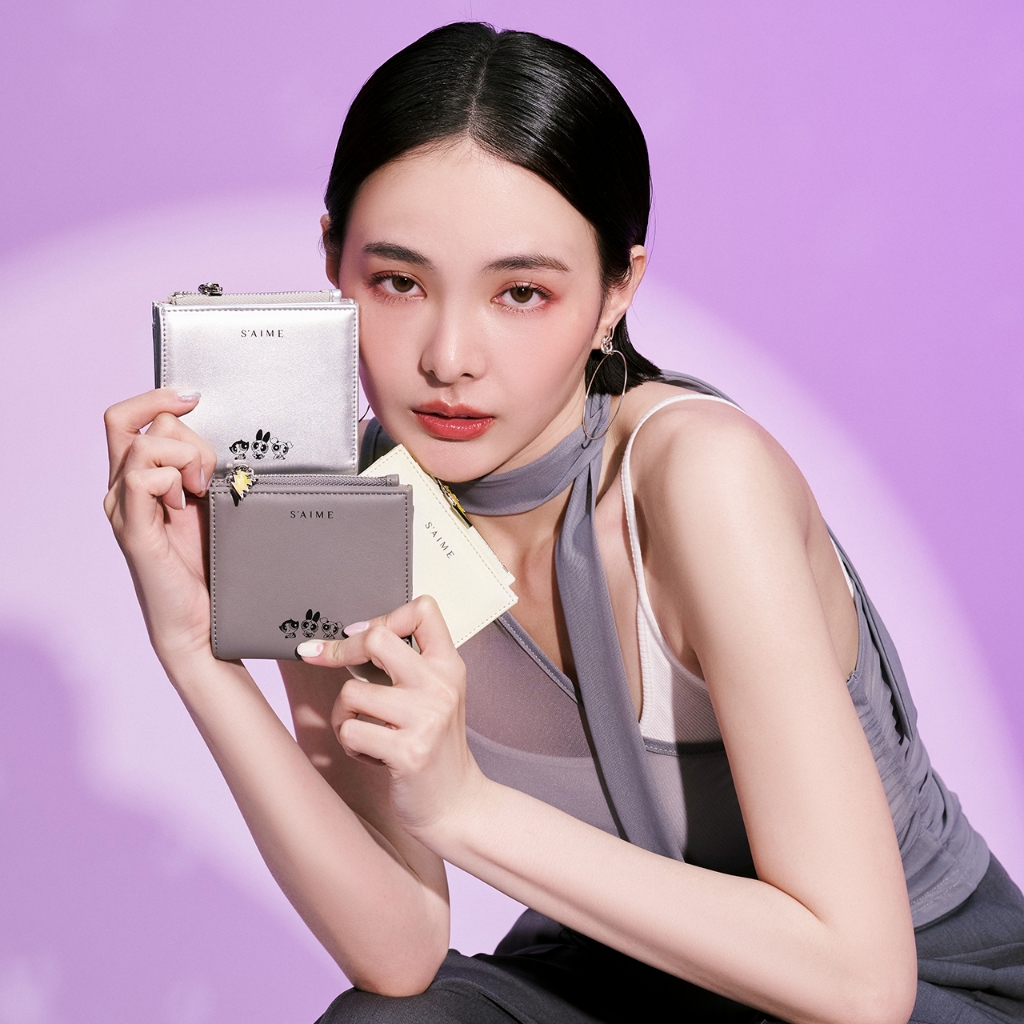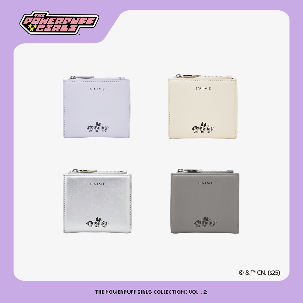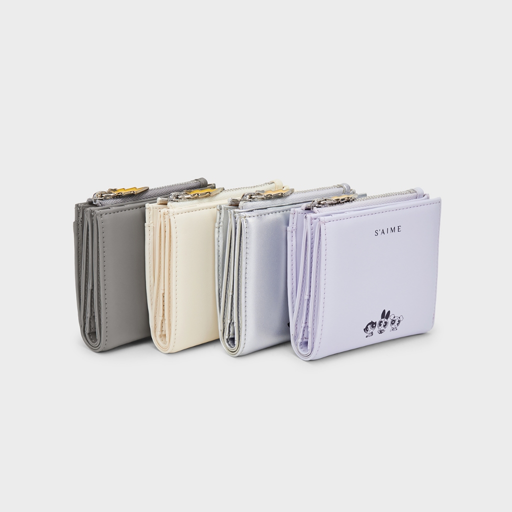 S’AIME 飛天小女警輕薄對折短夾白色|深灰|銀色|淺紫Bifold & Trifold WalletsS’AIME 東京企劃官方旗艦店