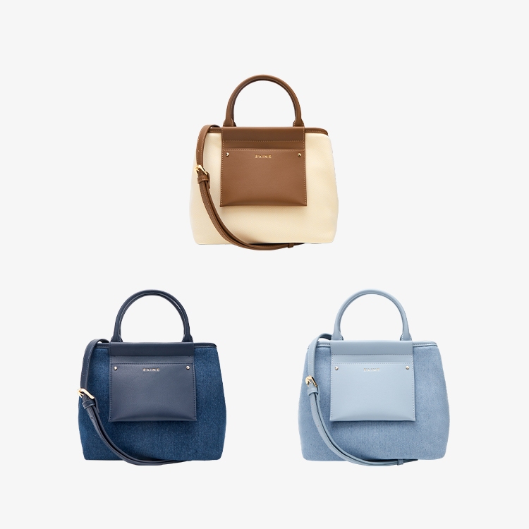 S’AIME 日系口袋丹寧斜背方包深藍|淺藍|咖啡S’AIME 東京企劃官方旗艦店