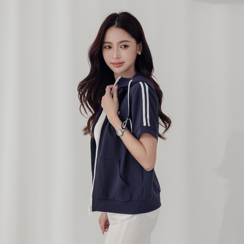 niceioi 運動少女風撞色織帶羅馬布外套 女裝深藍,S|深藍,M|深藍,L|深藍,XLOthersniceioi 官方旗艦店
