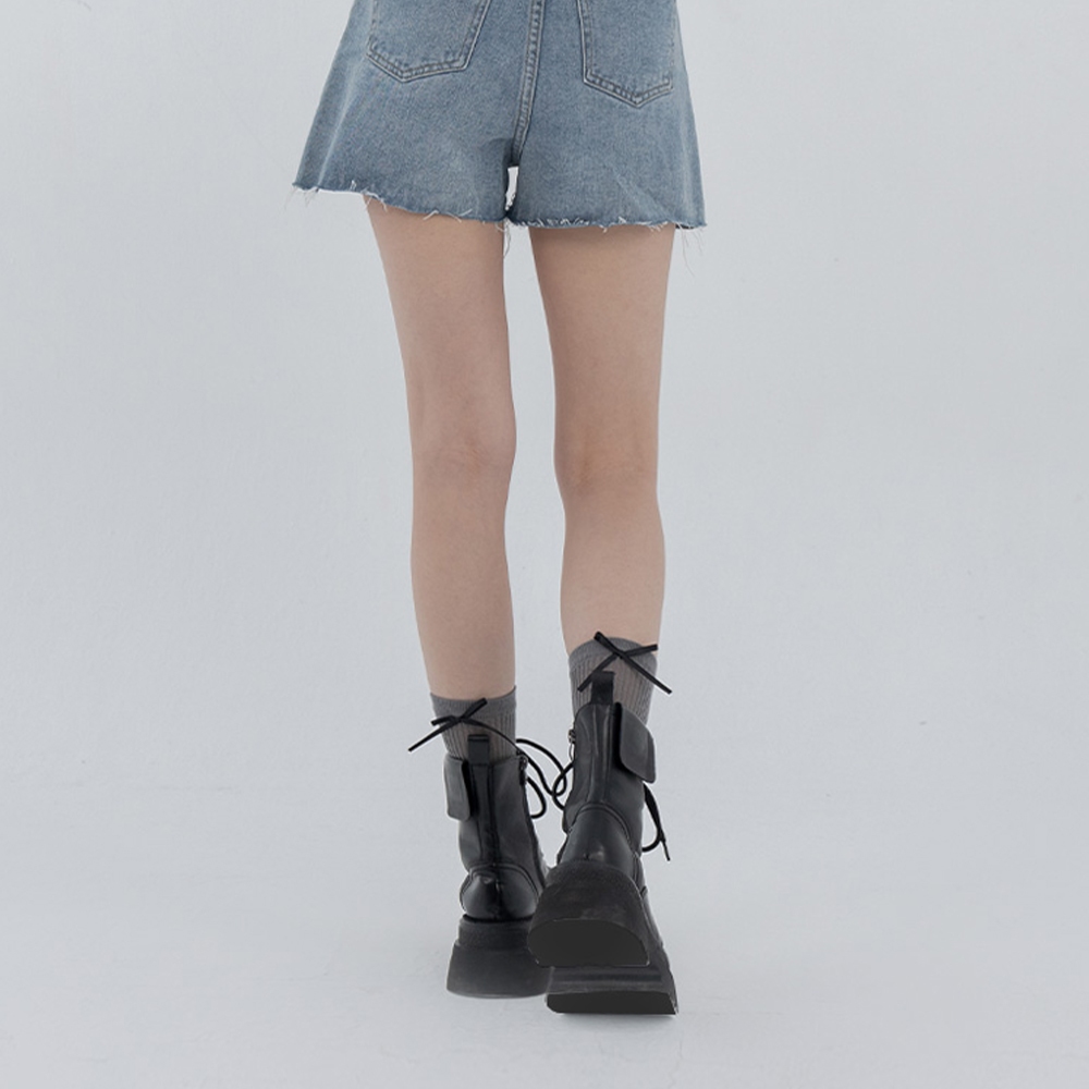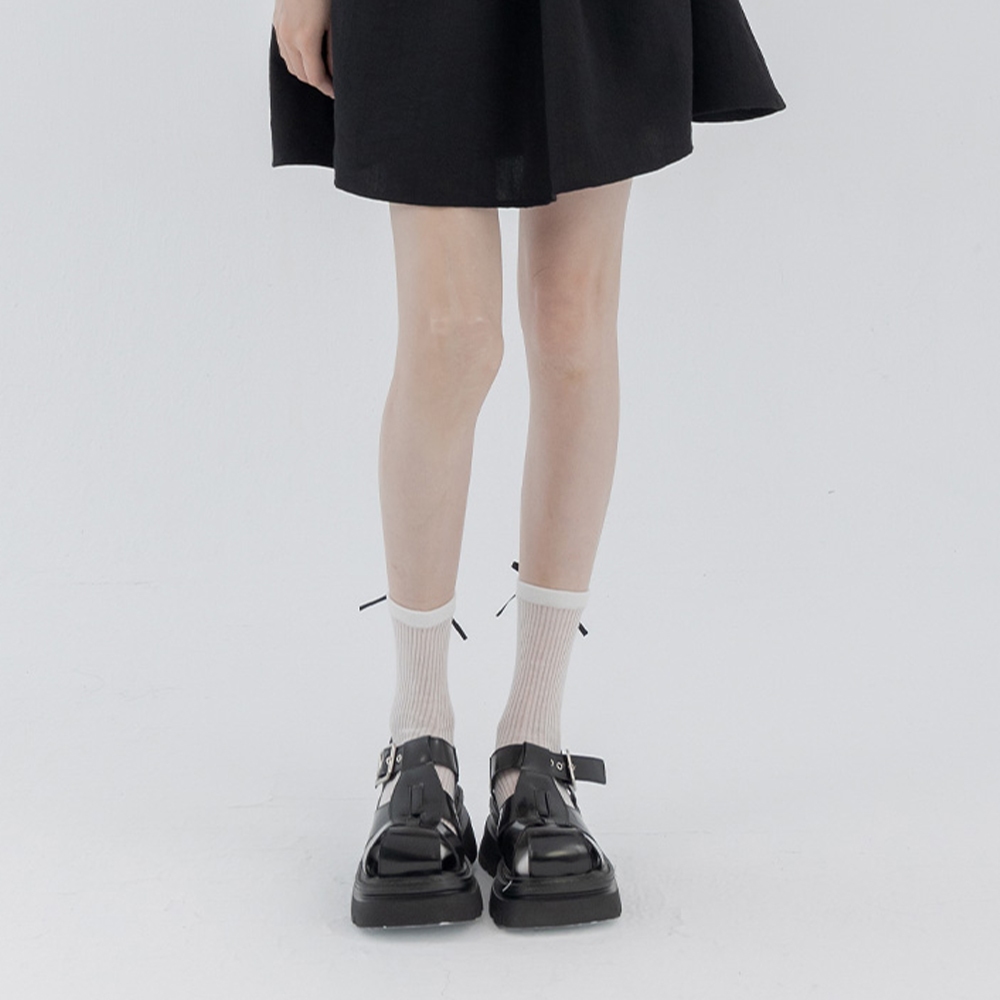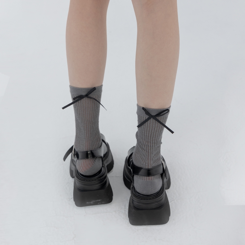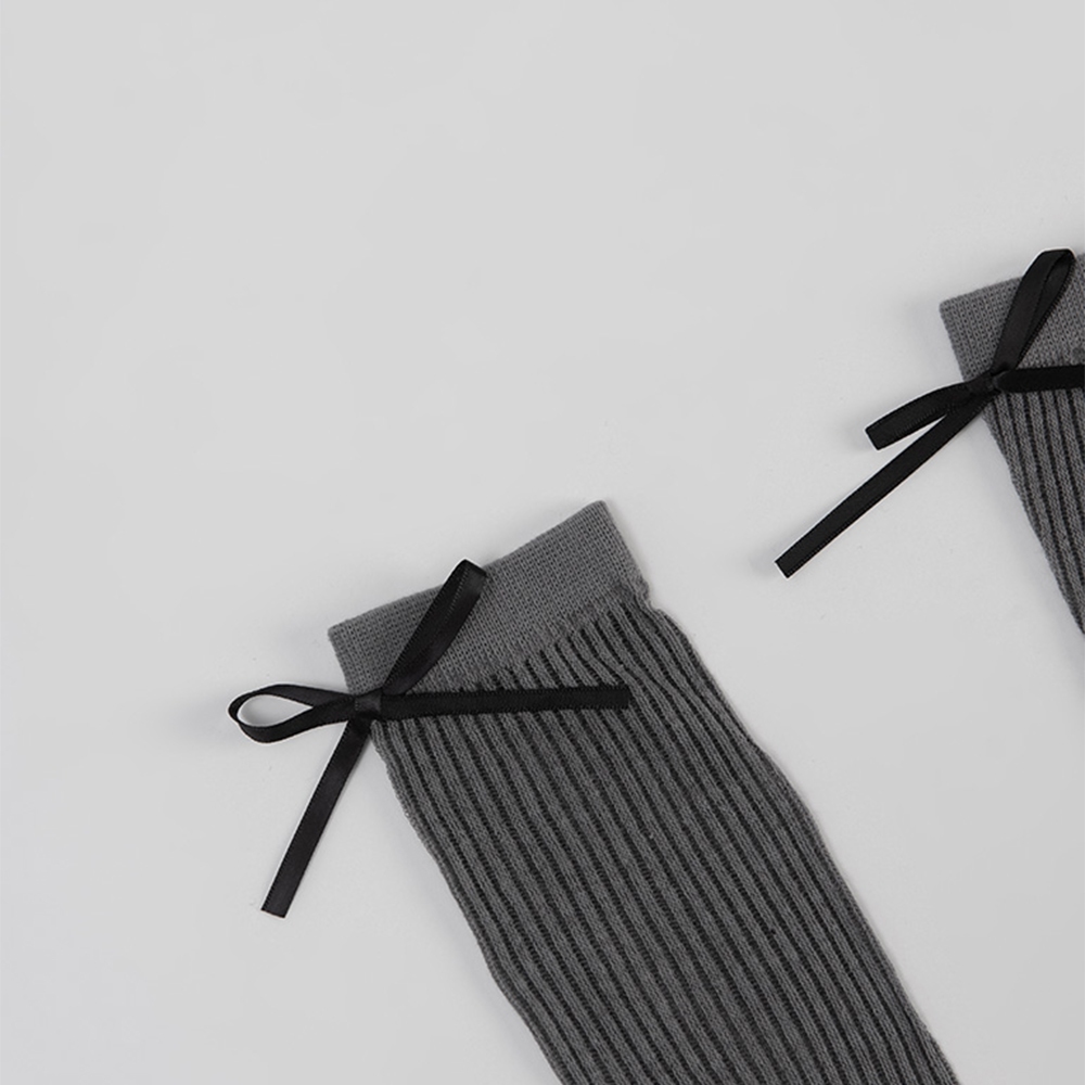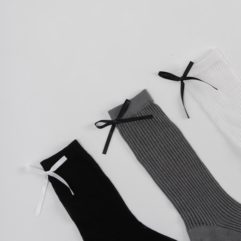 QUEENSHOP_ S 女裝 後蝴蝶結綁帶造型中筒襪 三色售 現+預 【07110554】黑|灰|白SocksQUEENSHOP