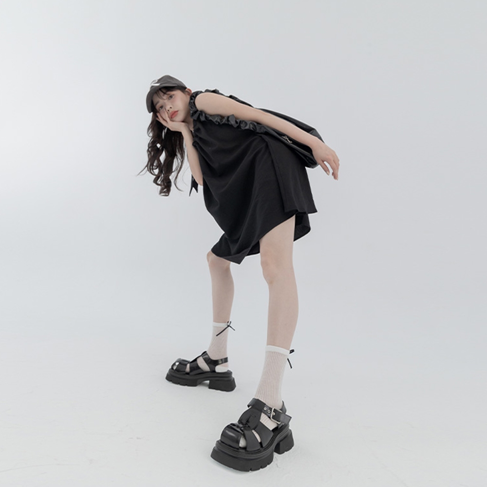 niceioi【特惠】優雅抓褶排釦拼接洋裝 女裝黑,S|黑,M|黑,L|黑,XLniceioi 官方旗艦店
