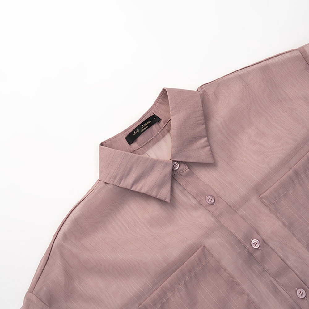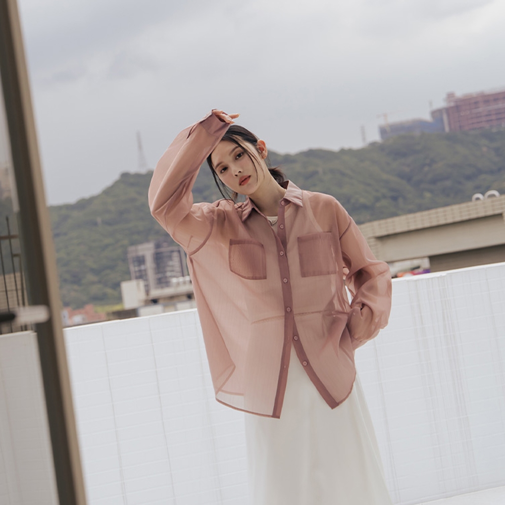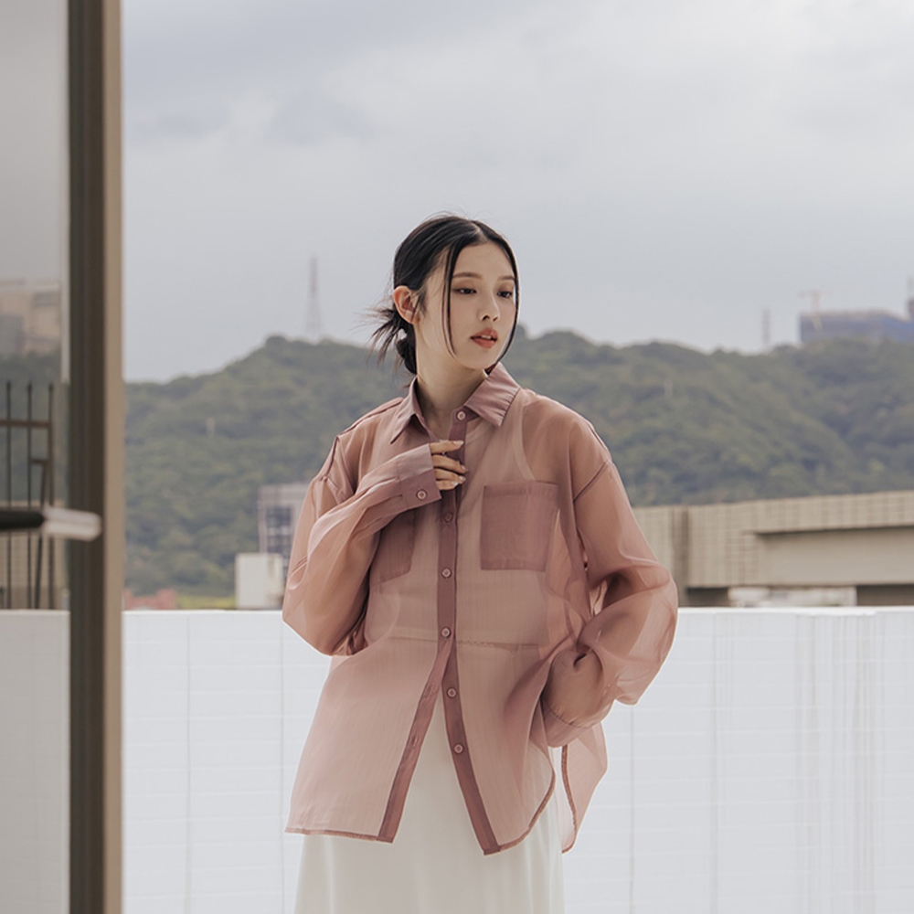 QUEENSHOP_ S 女裝 長袖 微光澤條紋透膚寬版襯衫-粉 現+預 【01025575】粉Shirts & BlousesQUEENSHOP