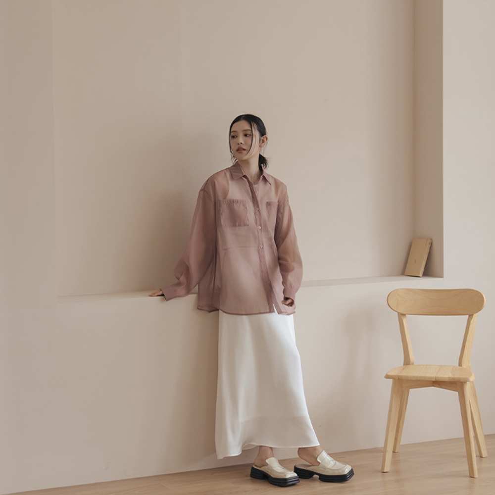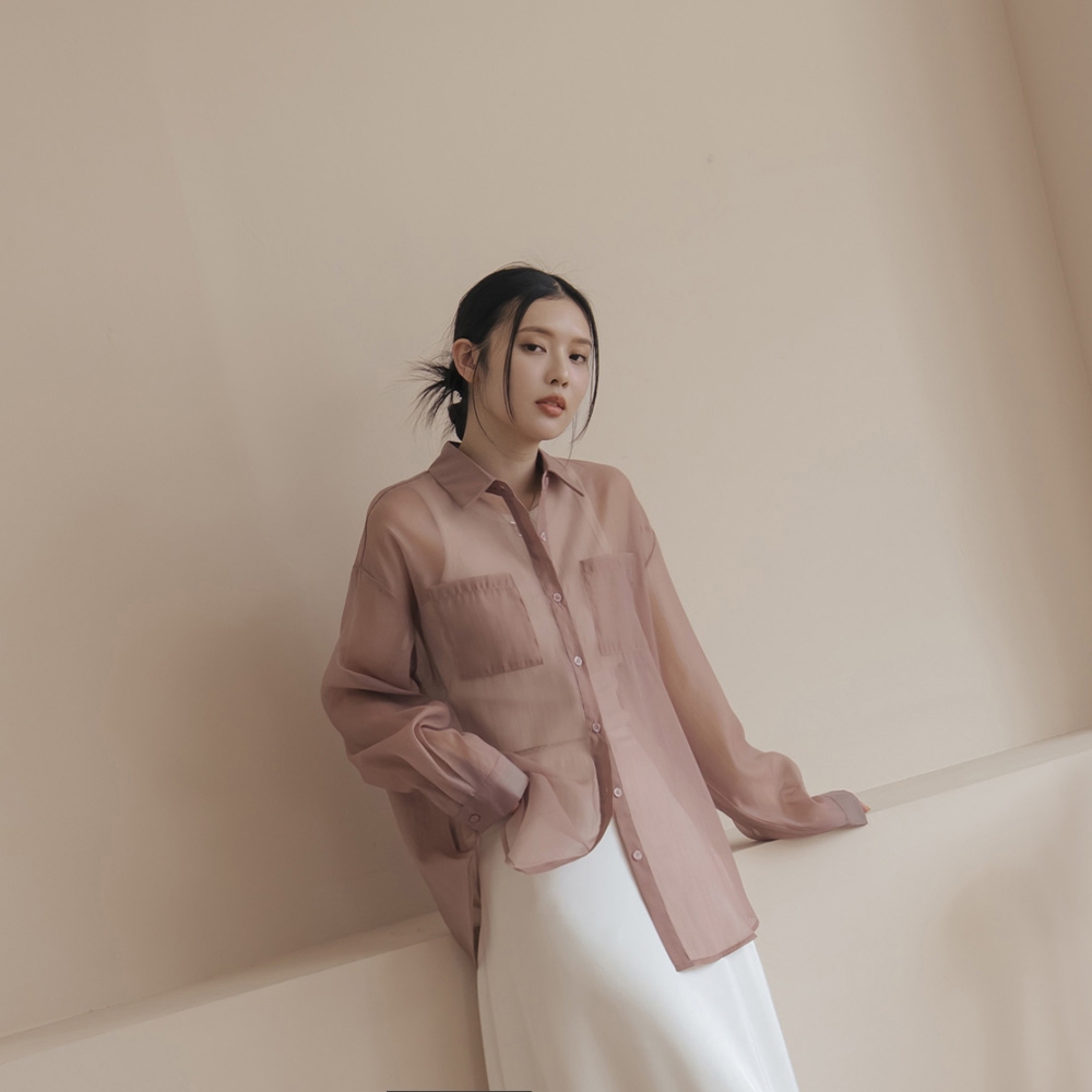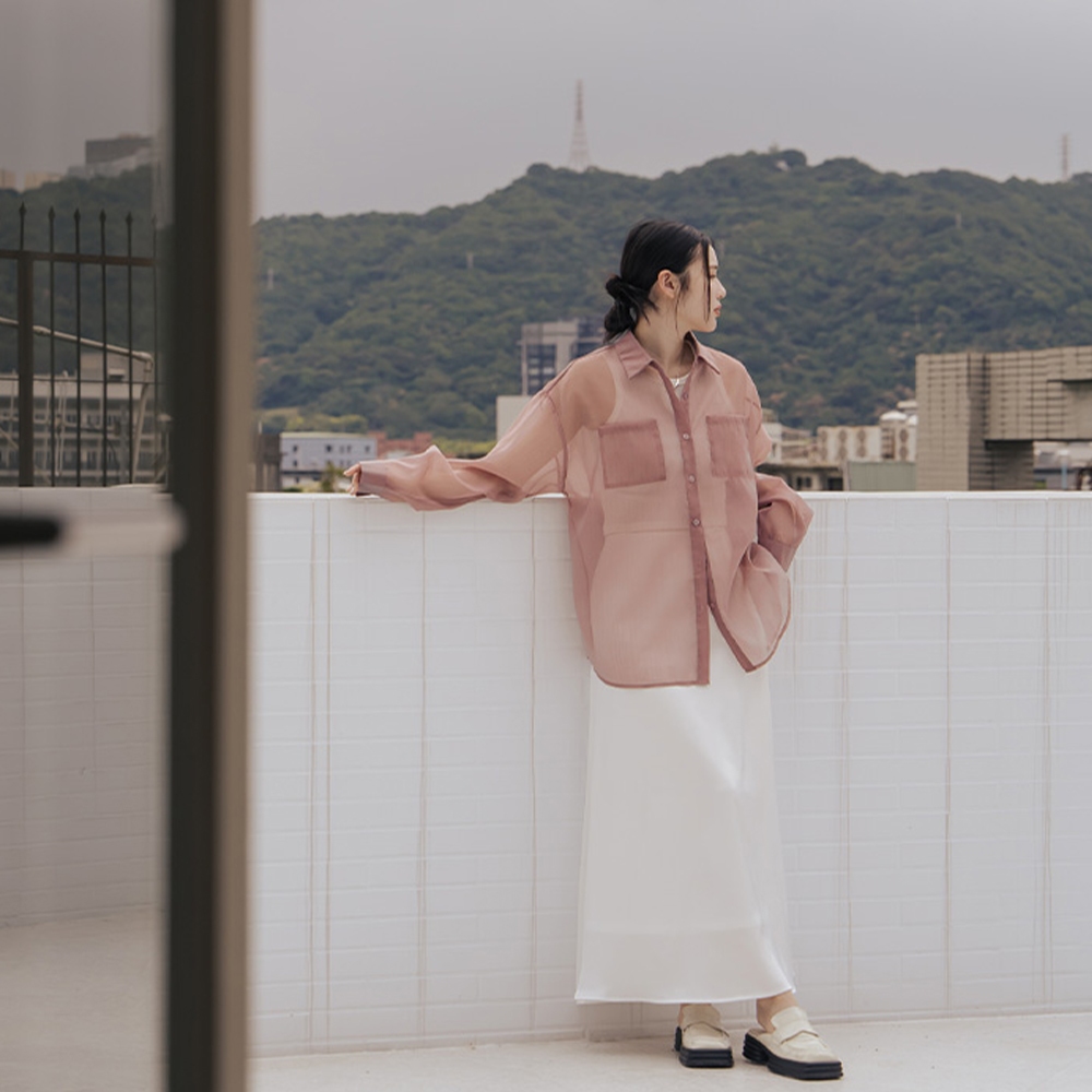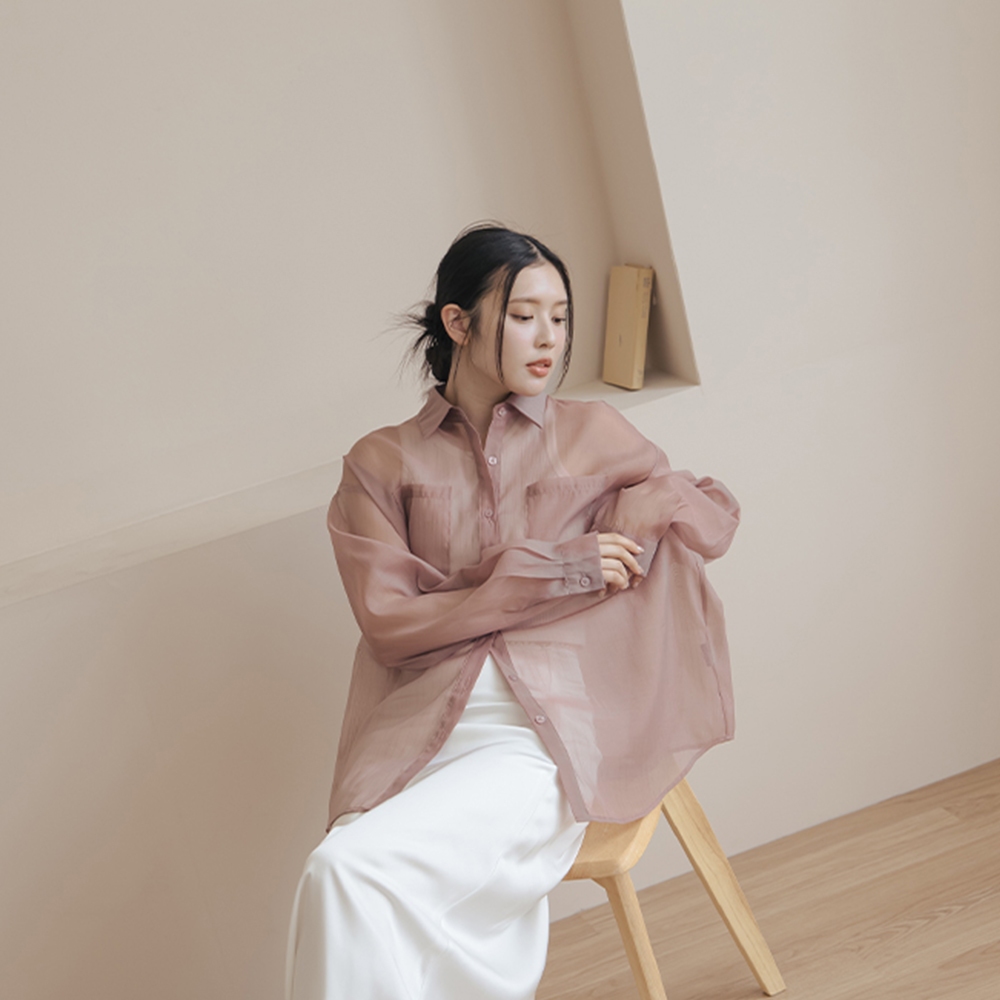 QUEENSHOP_ S 女裝 長袖 微光澤條紋透膚寬版襯衫-粉 現+預 【01025575】粉Shirts & BlousesQUEENSHOP