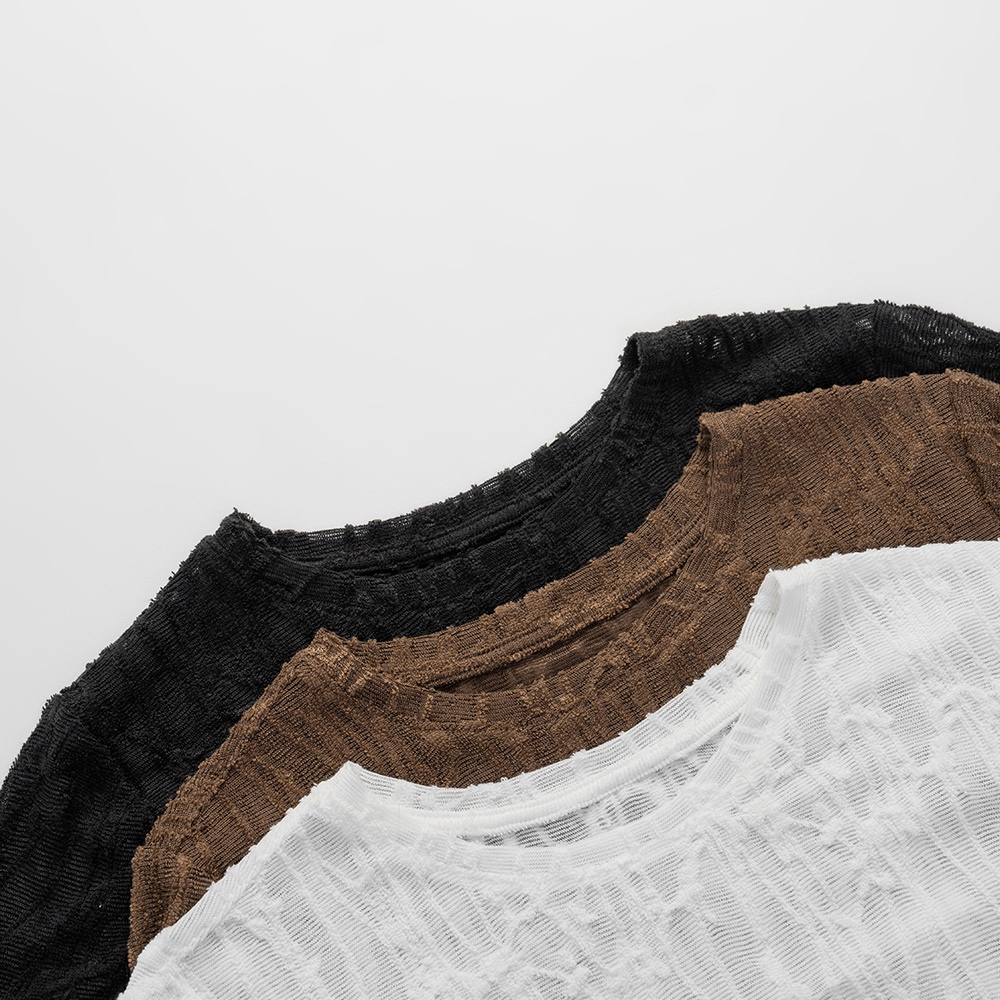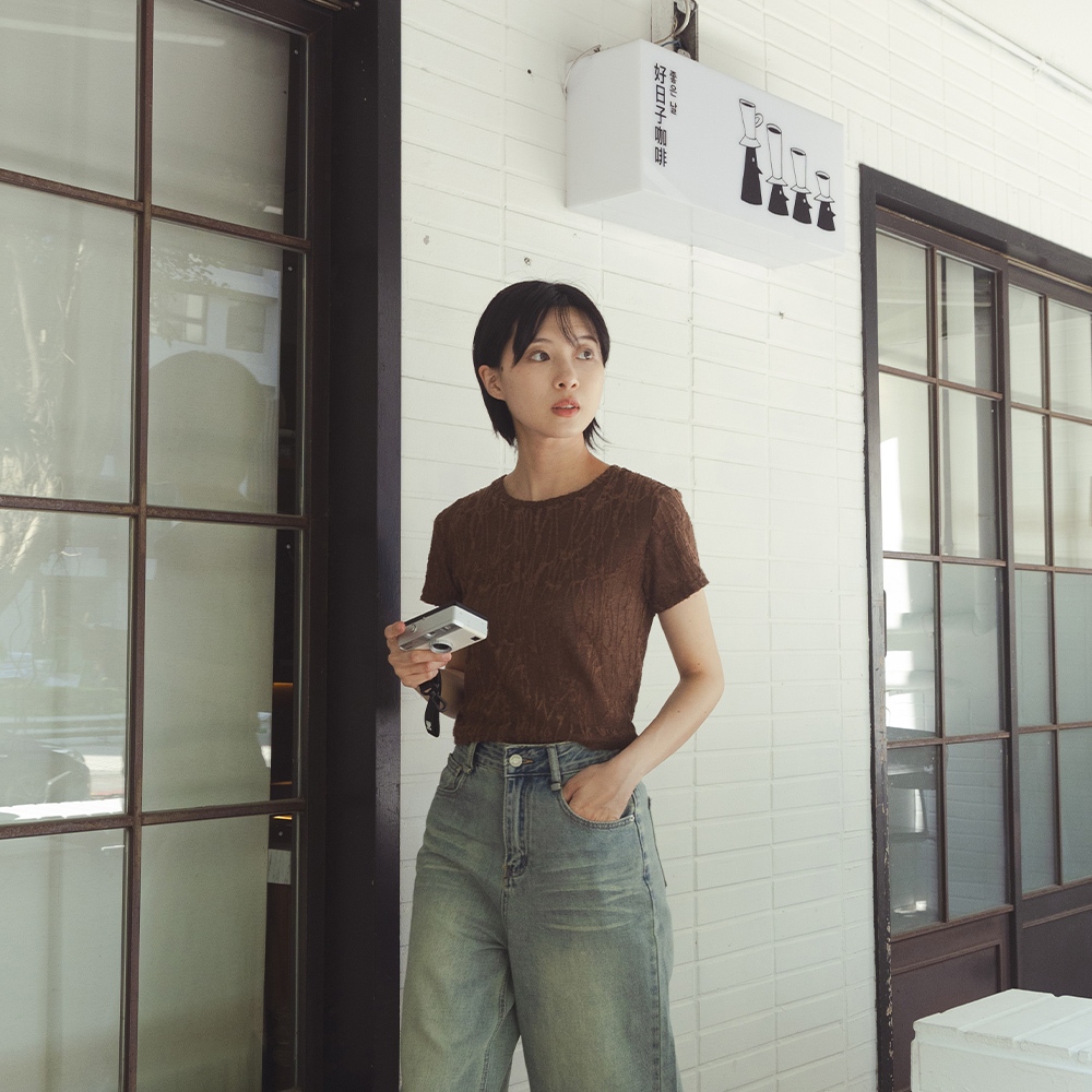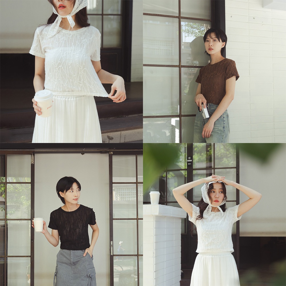 QUEENSHOP_ S 女裝 立體毛感緹花透膚短袖上衣 三色售 現+預 【01098844】黑|白|咖啡OthersQUEENSHOP