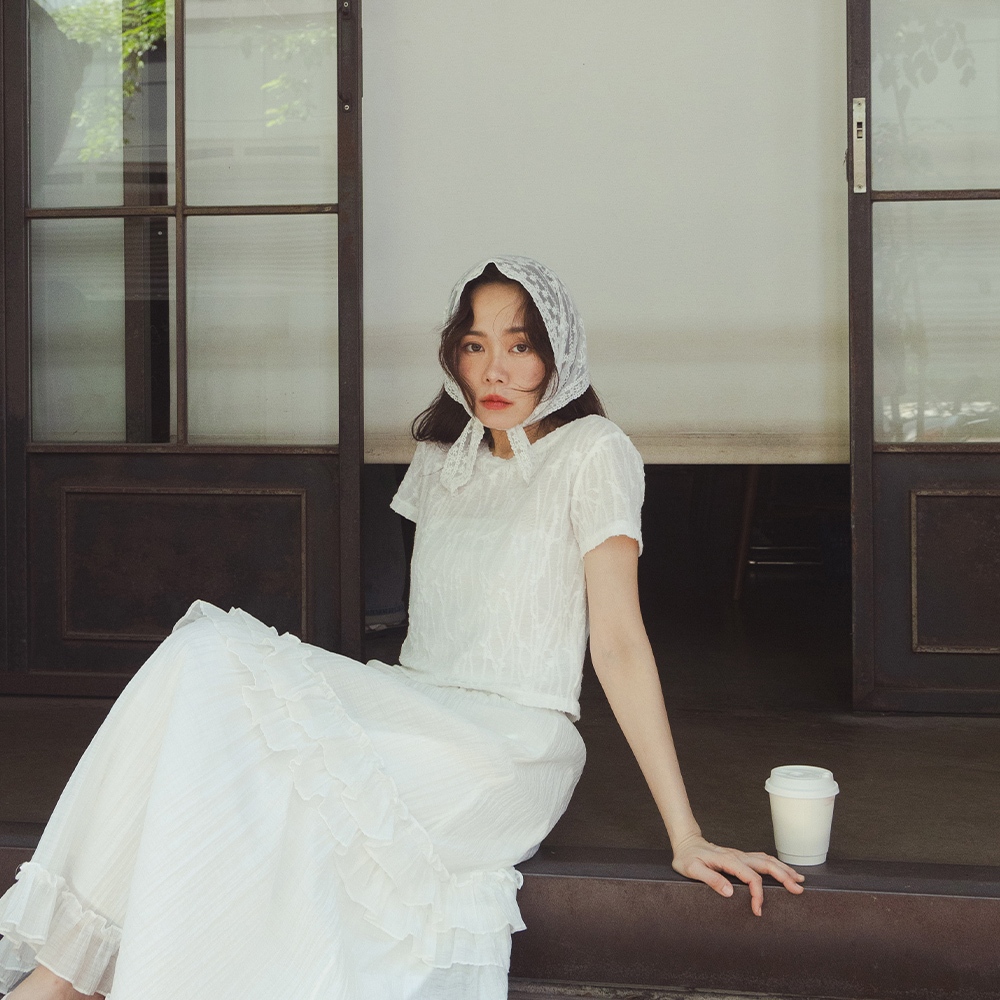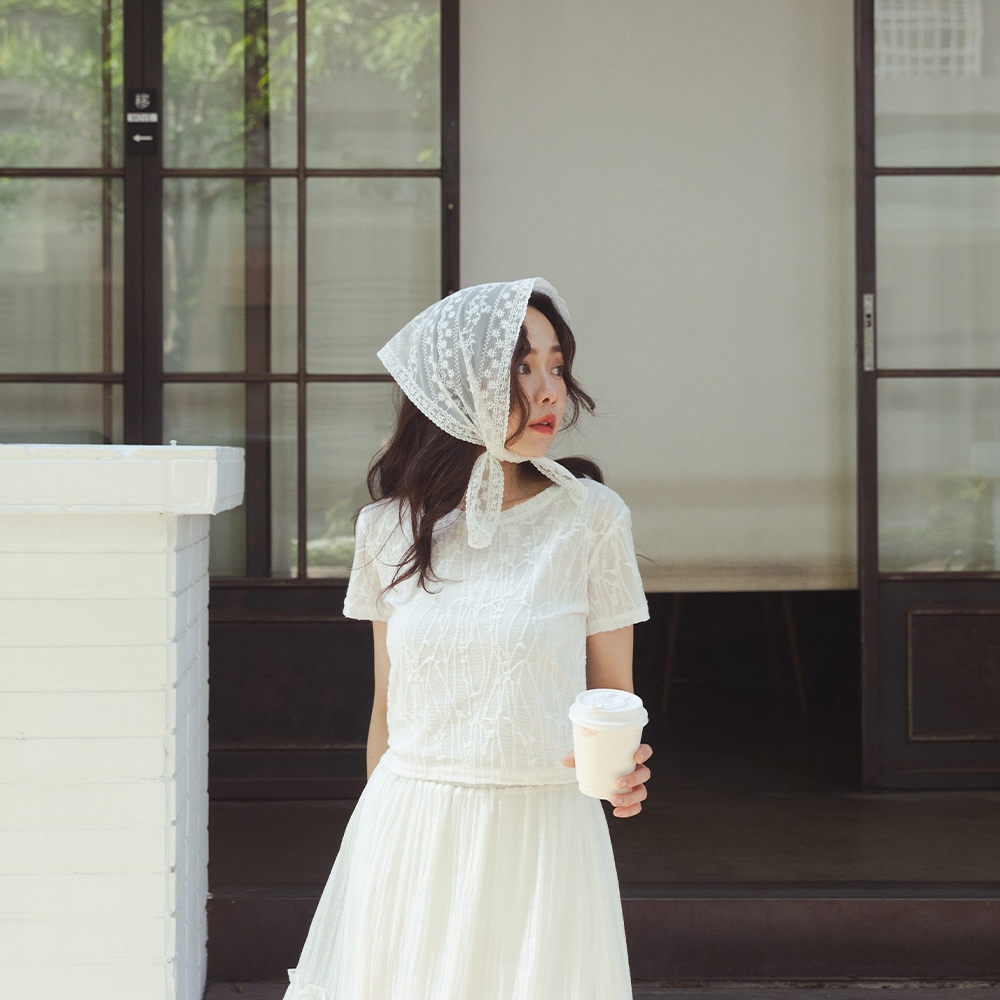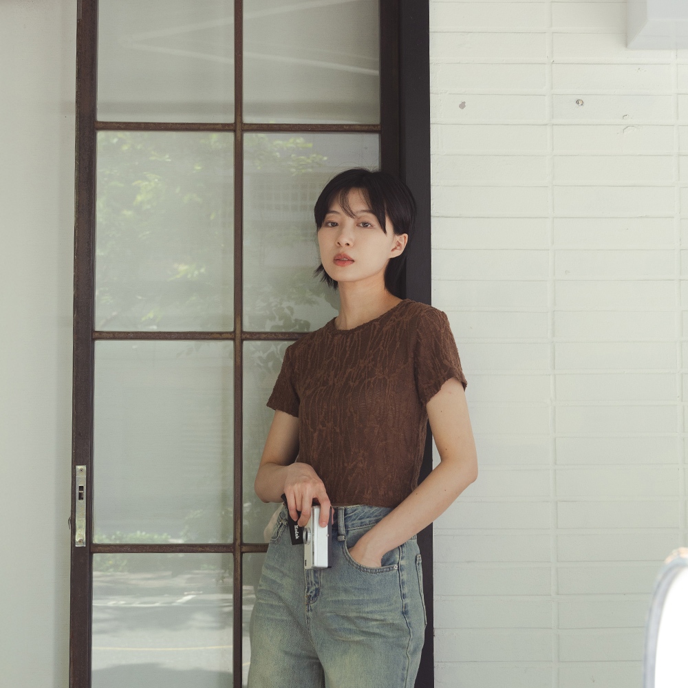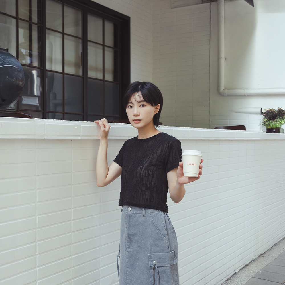 QUEENSHOP_ S 女裝 立體毛感緹花透膚短袖上衣 三色售 現+預 【01098844】黑|白|咖啡OthersQUEENSHOP