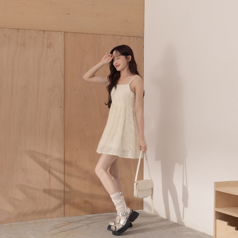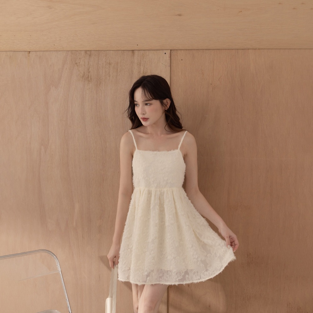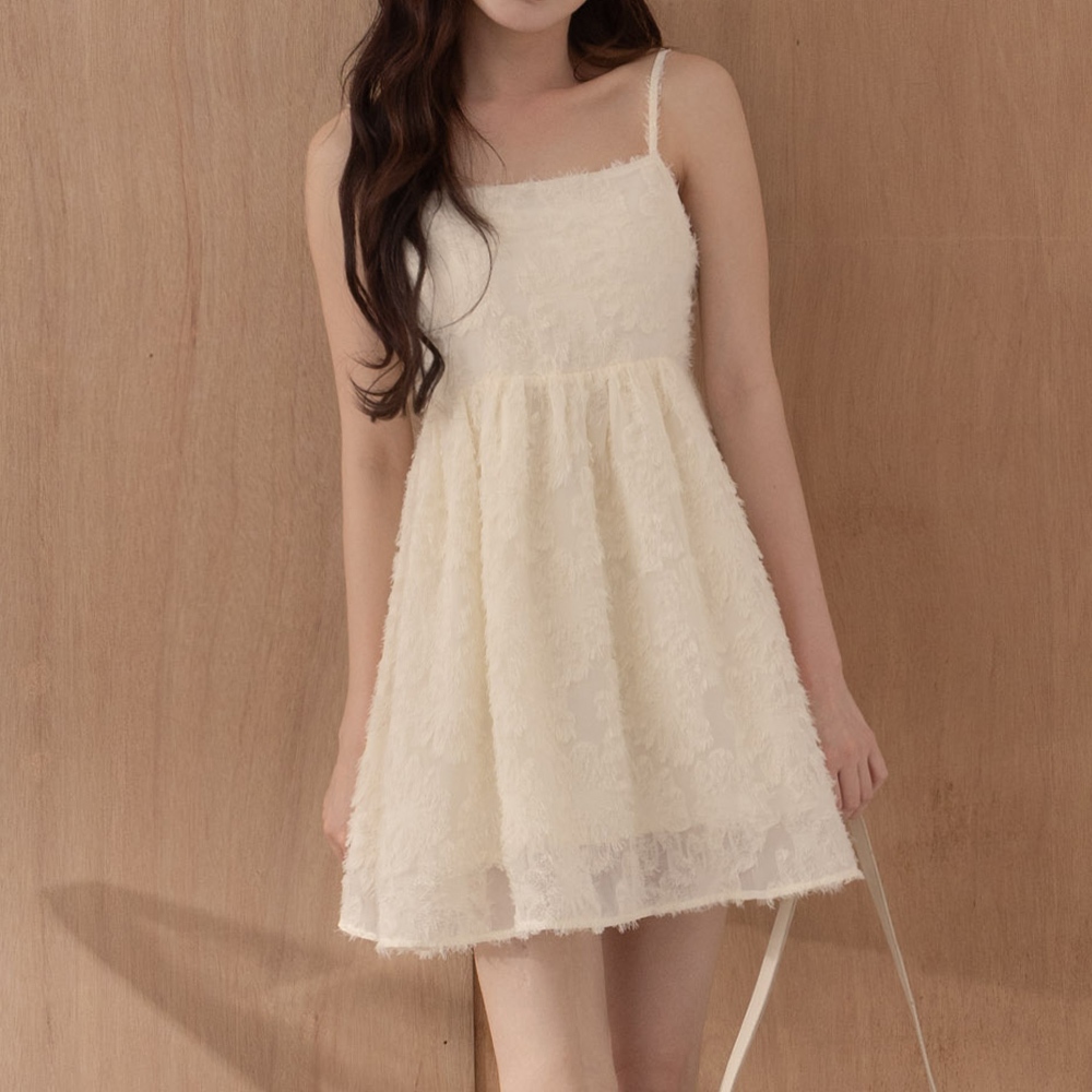 QUEENSHOP_ S 女裝 羽毛緹花後鏤空綁帶短洋裝 兩色售 現+預 【01086979】黑|杏QUEENSHOP