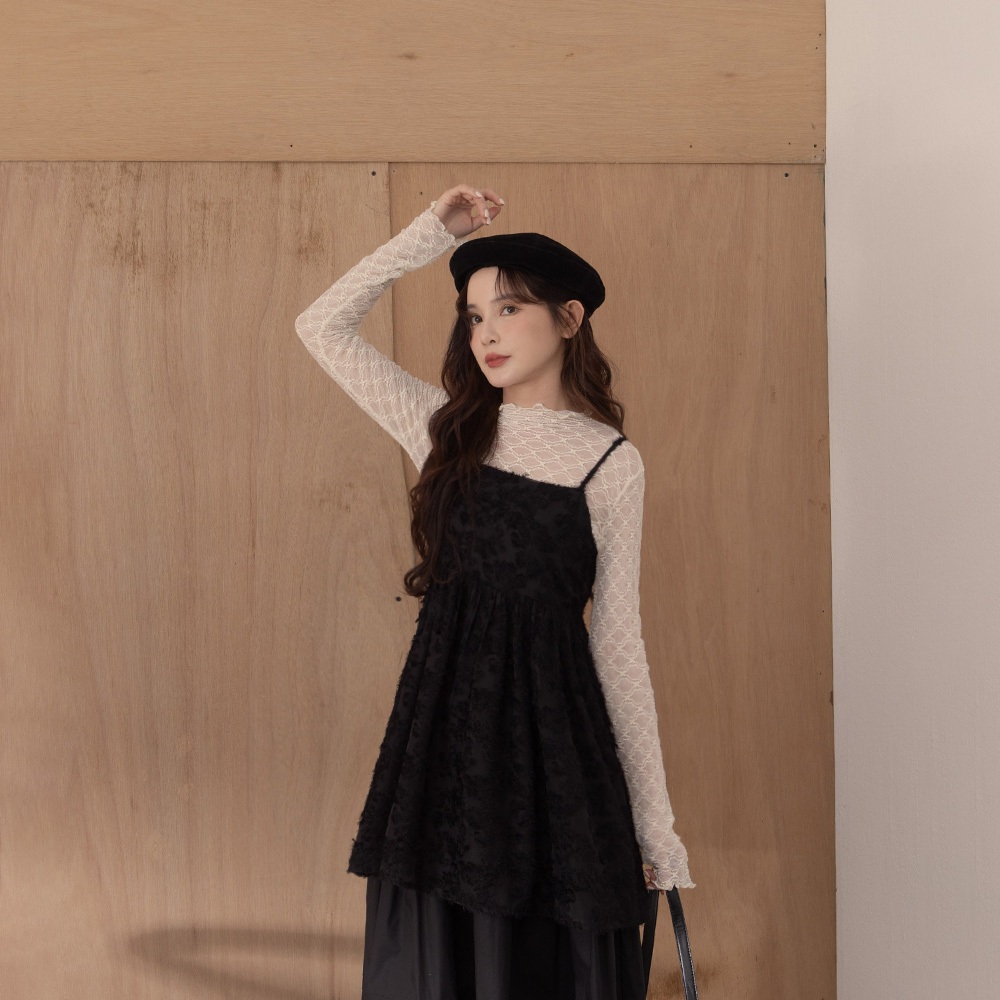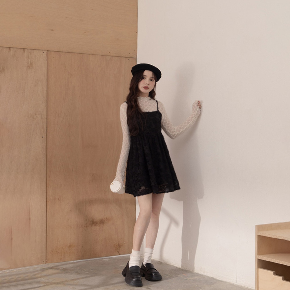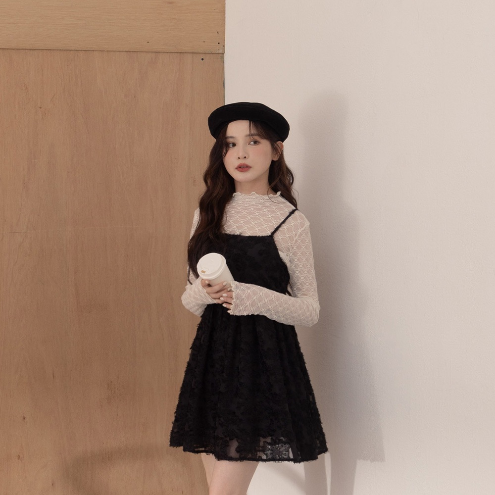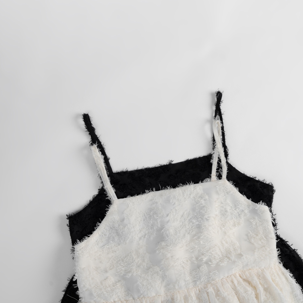 QUEENSHOP_ S 女裝 羽毛緹花後鏤空綁帶短洋裝 兩色售 現+預 【01086979】黑|杏QUEENSHOP