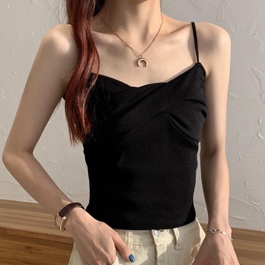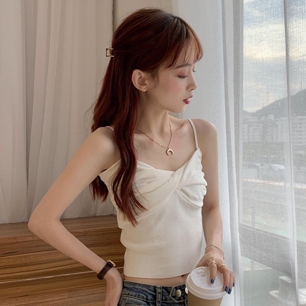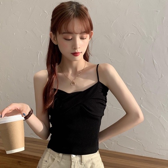 【ohi】多色可選吊帶 背心 針織背心女 針織骨折吊帶 小可愛背心少女設計感外穿內搭打底衫潮(GS3011)白色|黑色|黃色|酒紅|藍色|粉紅|杏色Tanks & CamisolesOHI衣著