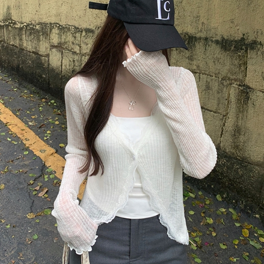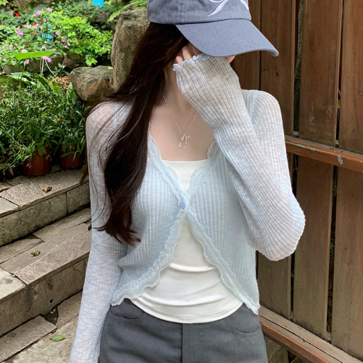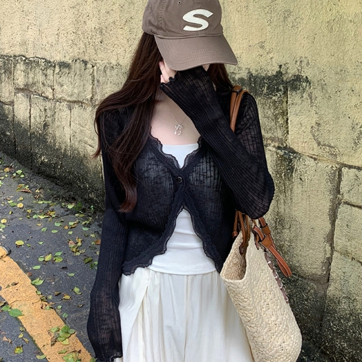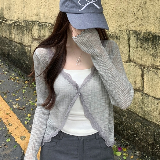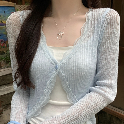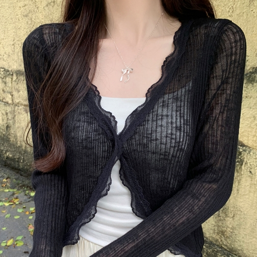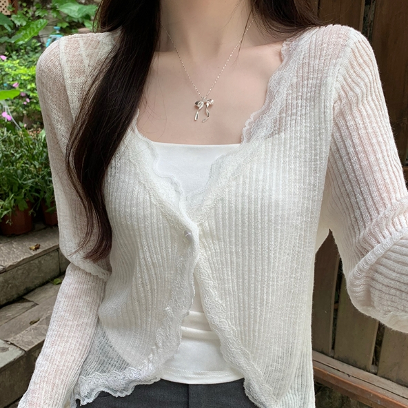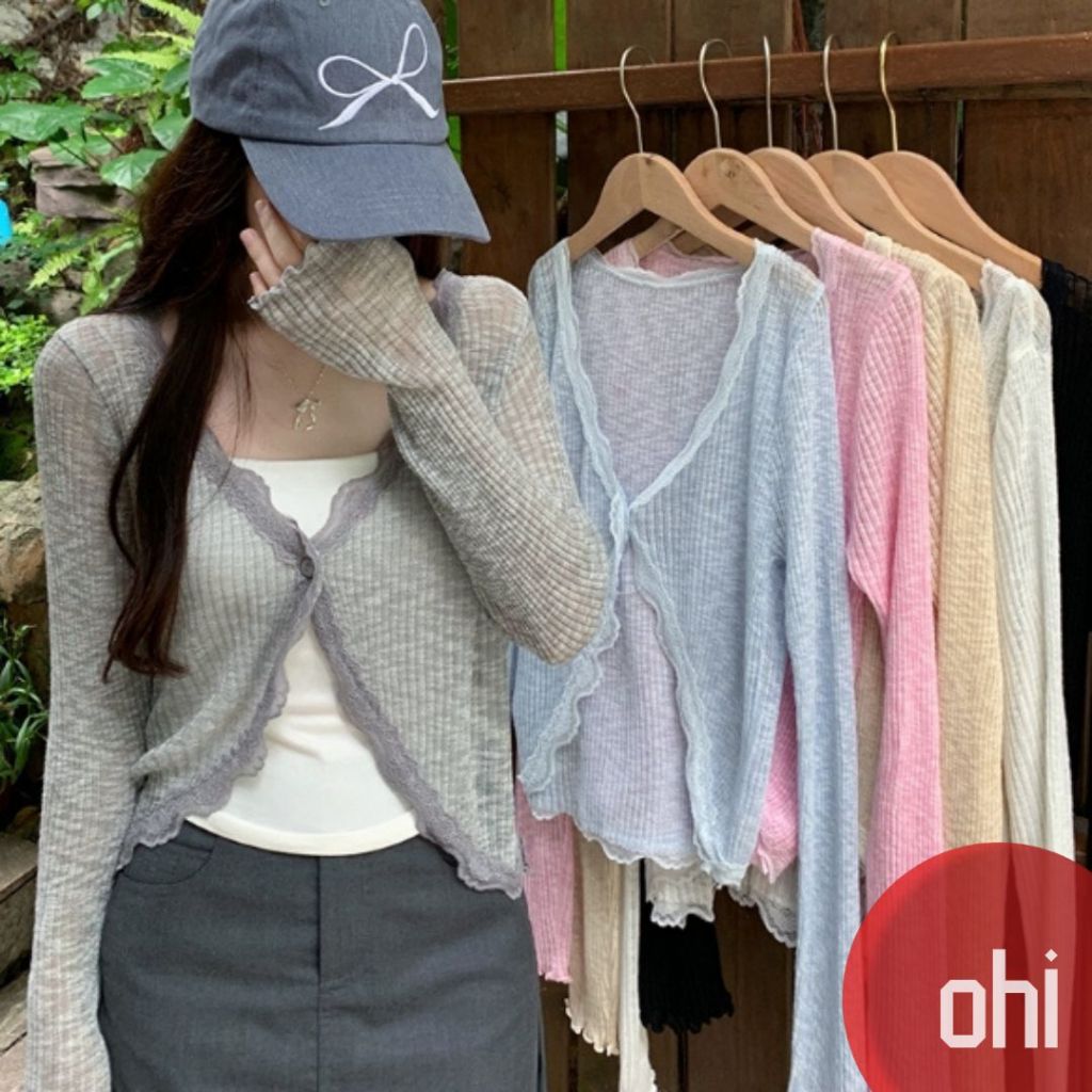 【ohi】蕾絲花邊V領防曬針織開衫 薄款外搭上衣 罩衫 防曬衫 外套 小外套 開衫外套 女上衣 女裝 GWD5656灰色,均碼-F(40-65KG可穿)|藍色,均碼-F(40-65KG可穿)|粉色,均碼-F(40-65KG可穿)|杏色,均碼-F(40-65KG可穿)|白色,均碼-F(40-65KG可穿)|黑色,均碼-F(40-65KG可穿)OthersOHI衣著