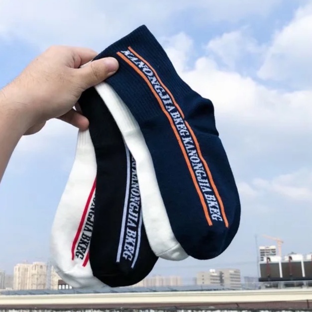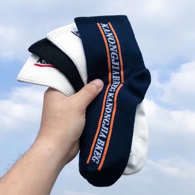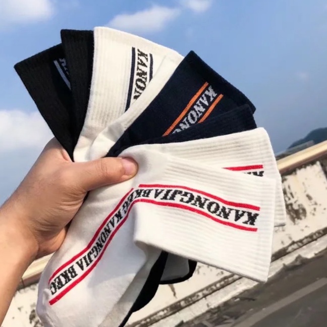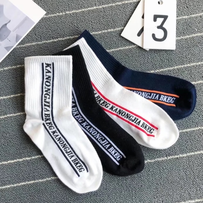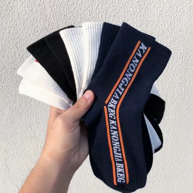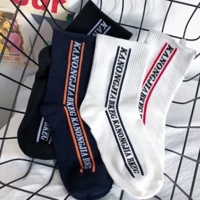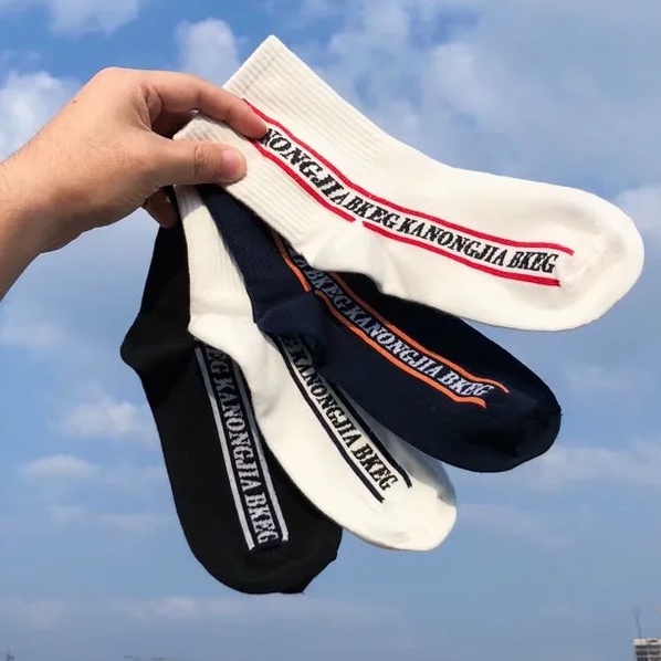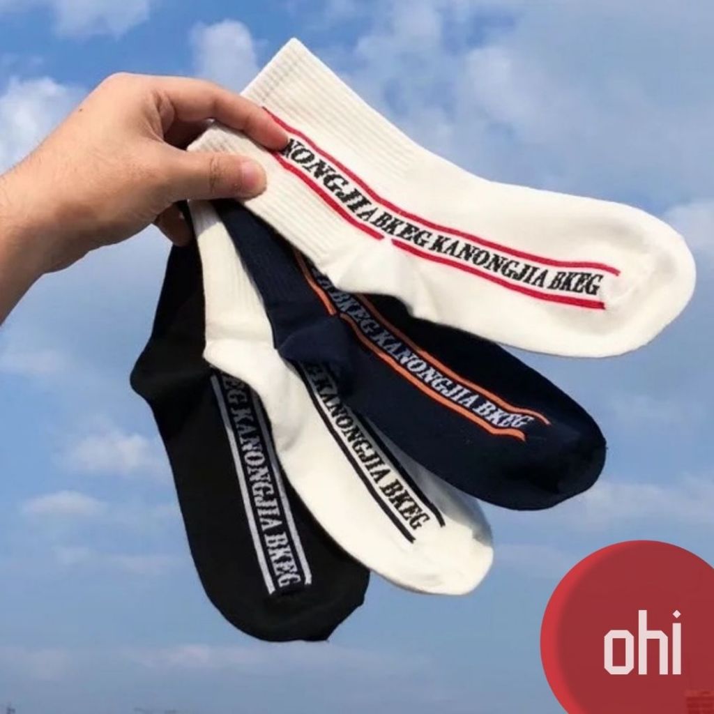 【ohi】黑白襪子 男女情侶運動襪 ins嘻哈個性時尚棉中筒襪男女(WWW11)白紅|深藍|黑色|白黑SocksOHI衣著