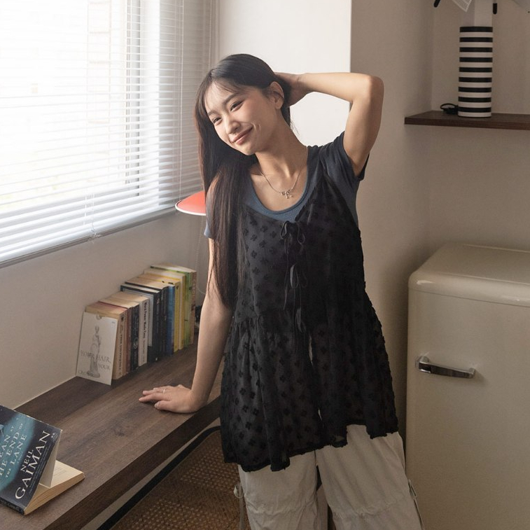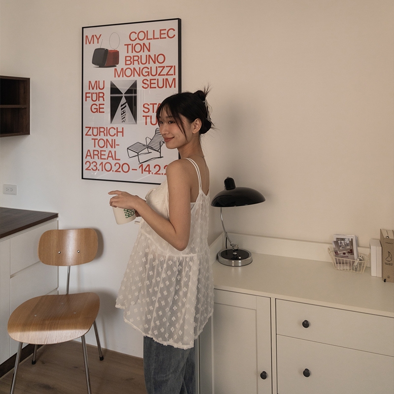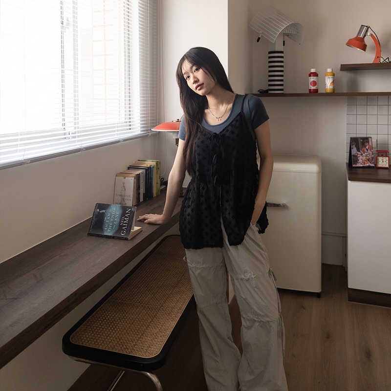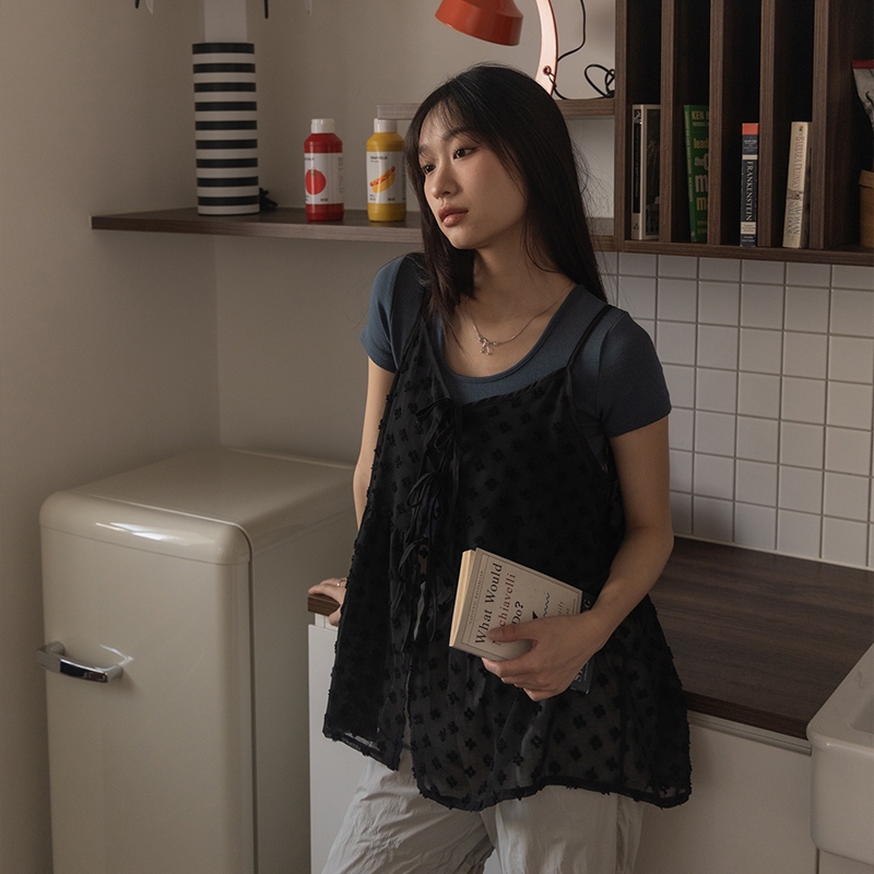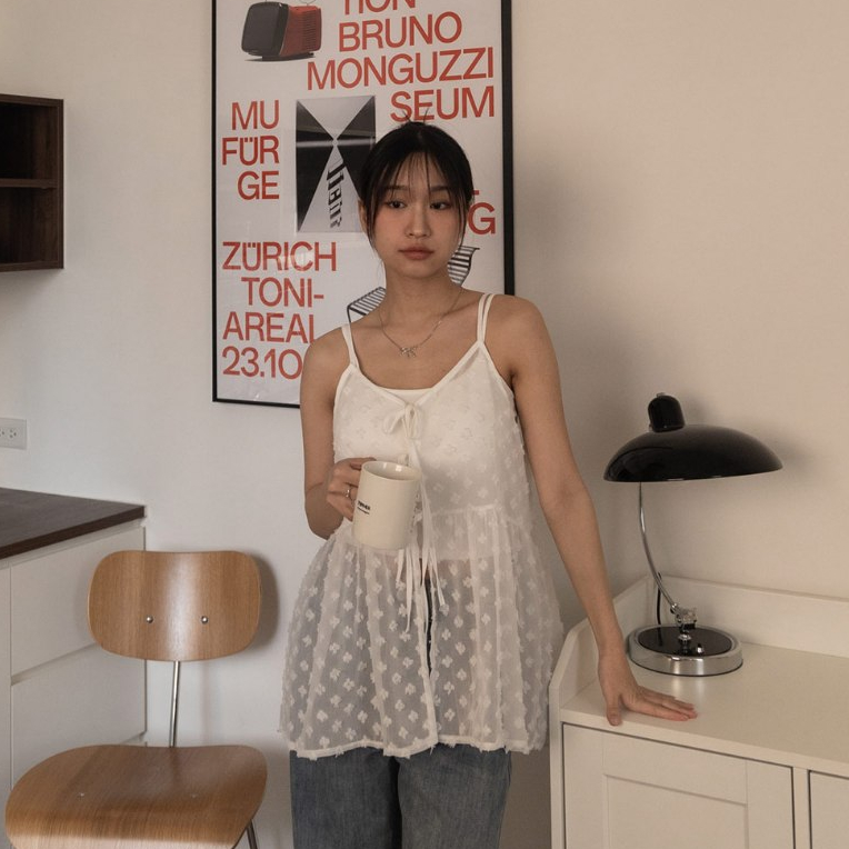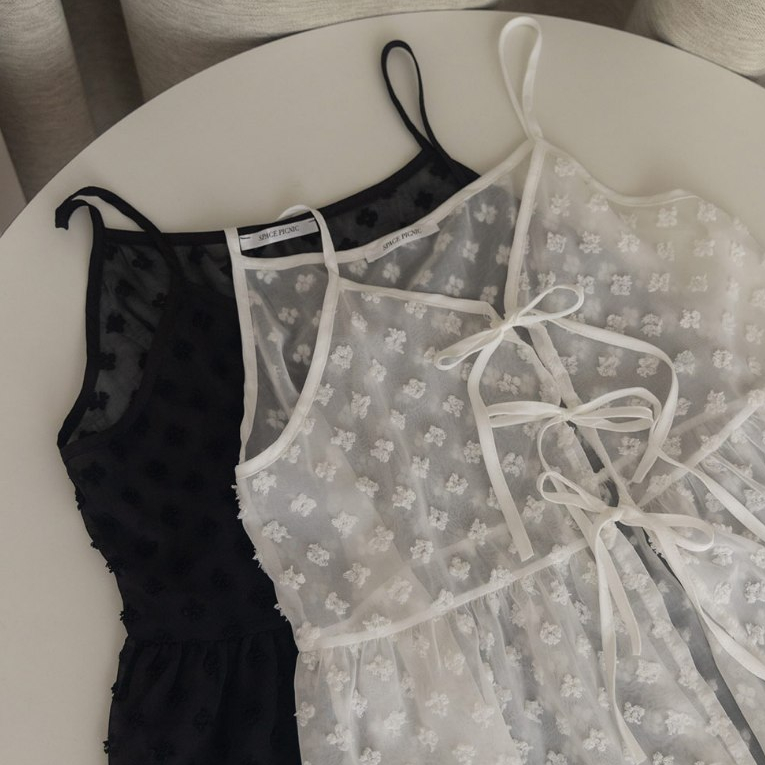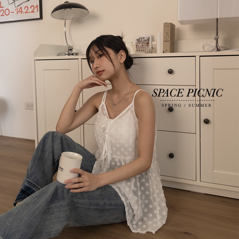 Space Picnic|提花綁帶透膚細肩背心-2色【C24031097】白|黑Tanks & CamisolesSpace Picnic