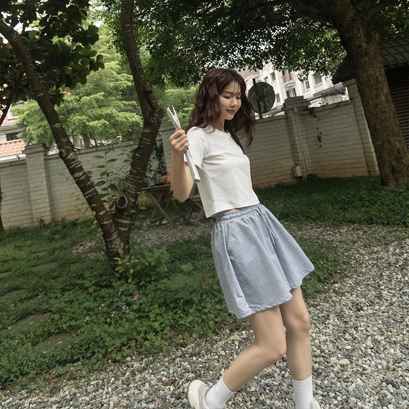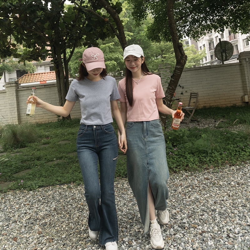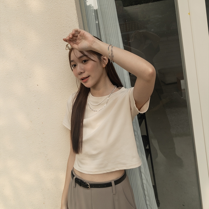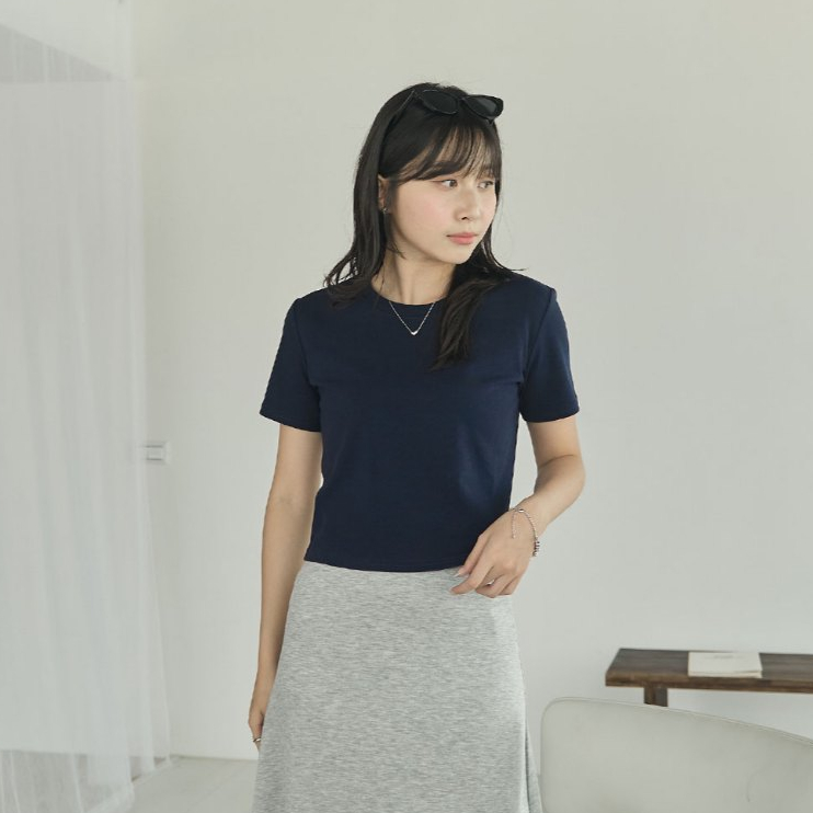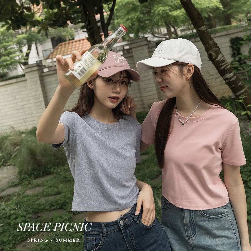 Space Picnic|純色圓領短版Tee-8色【C24031004】杏|藍|橘|花灰|粉|白|黑|丈青T-shirtsSpace Picnic