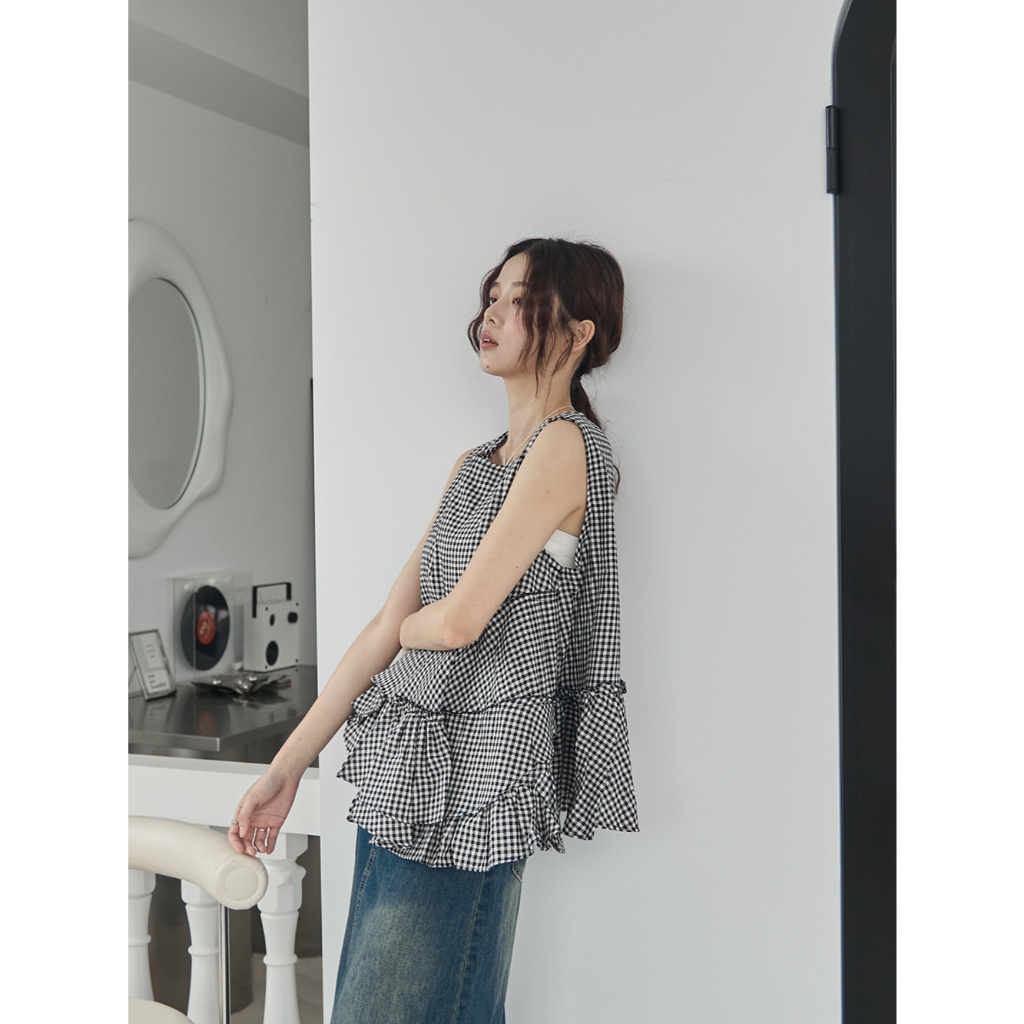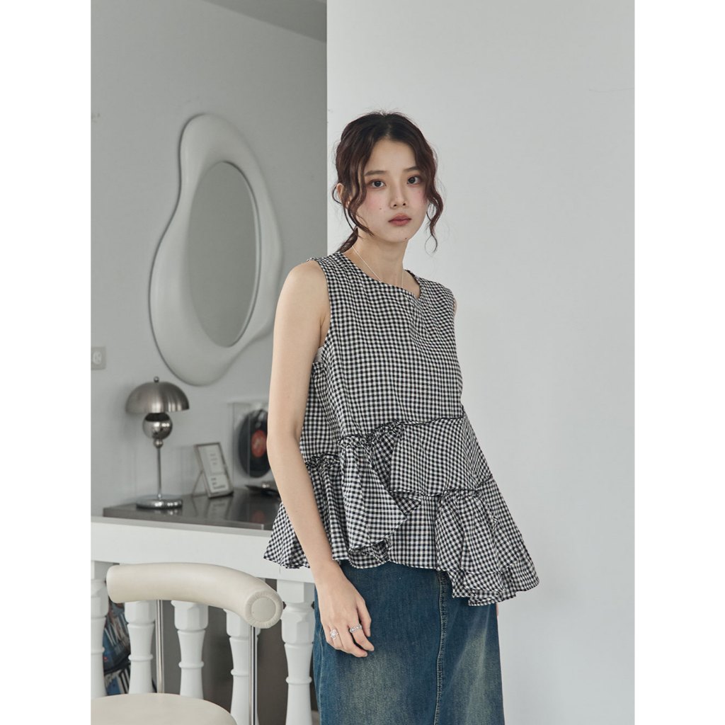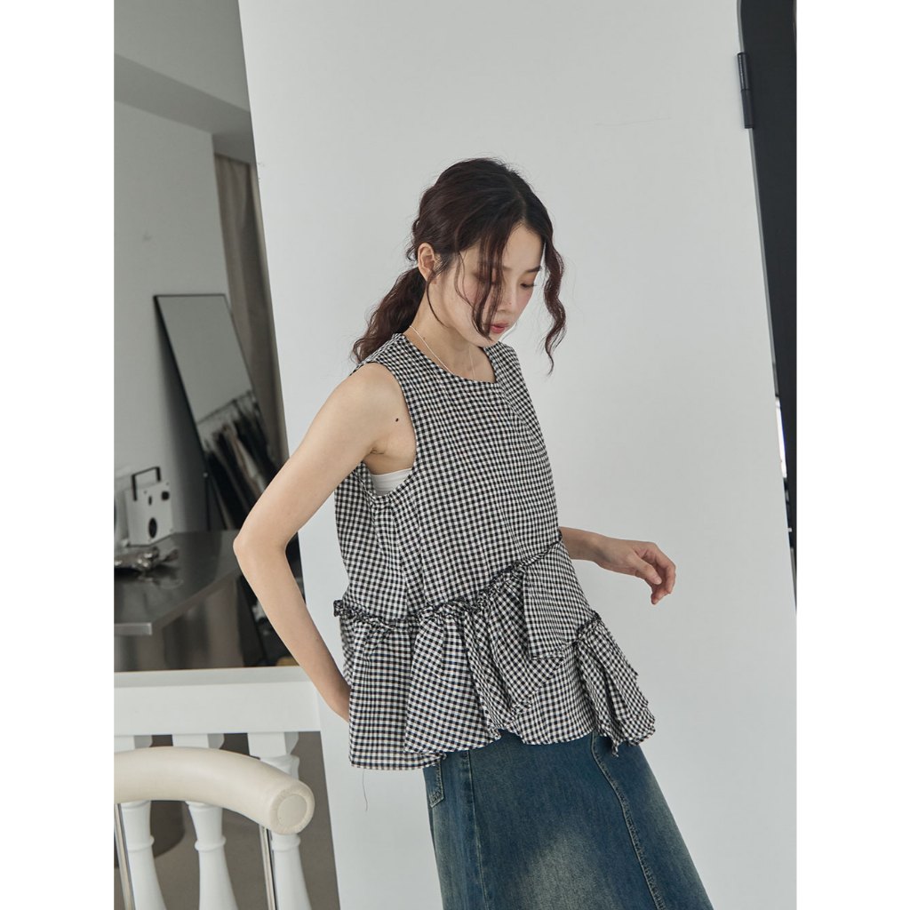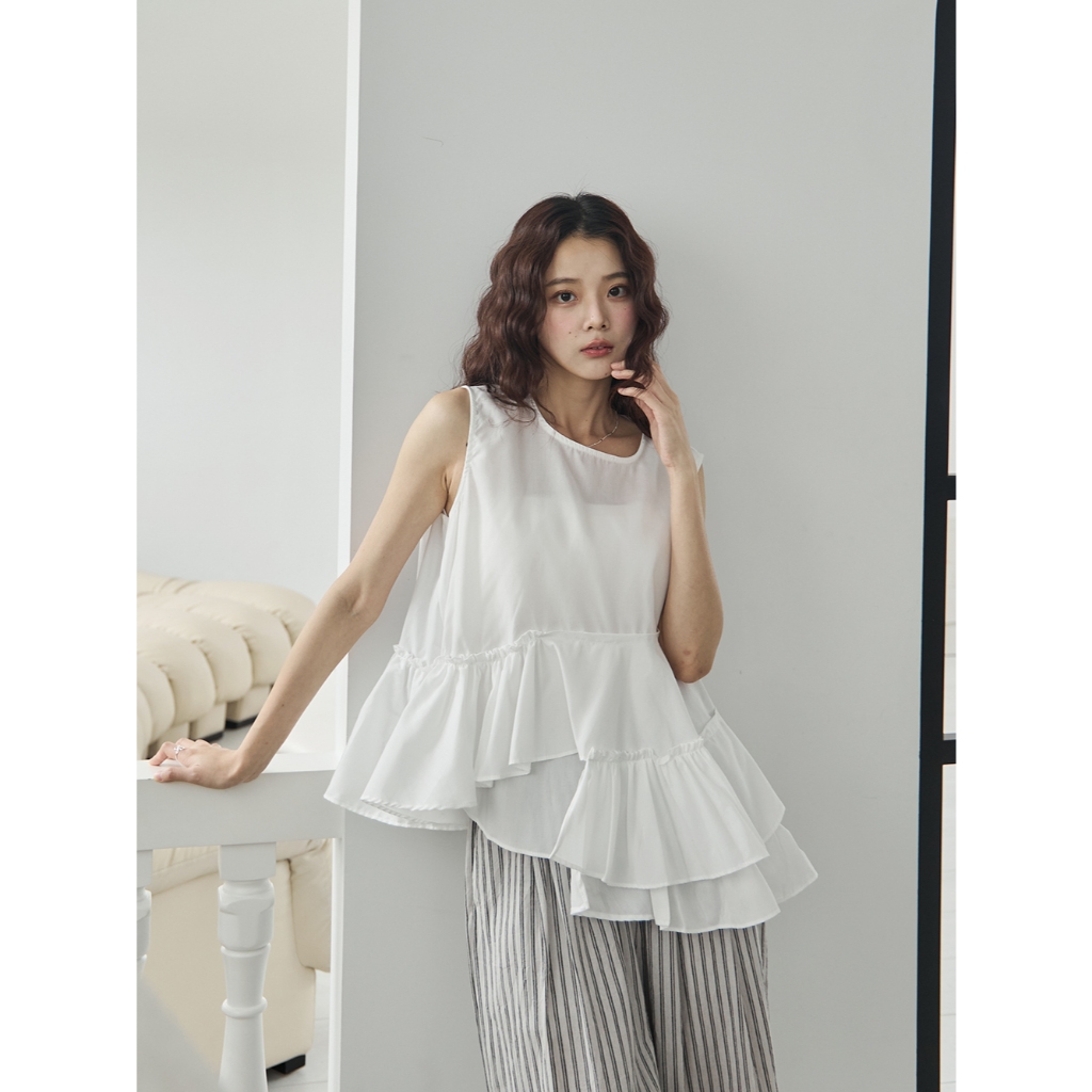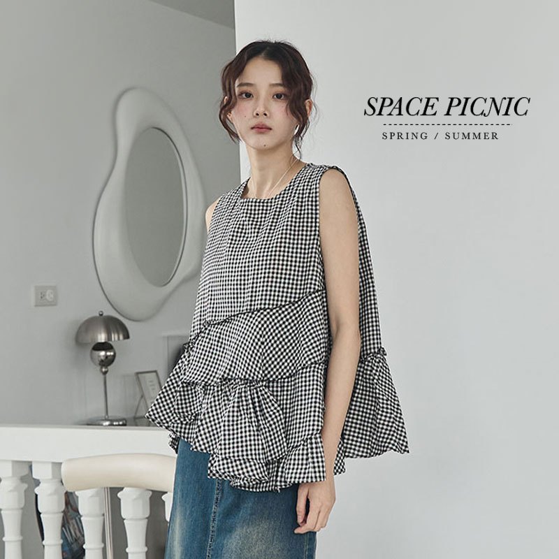 Space Picnic|不對稱荷葉雪紡背心-2色【2506275】白|格紋OthersSpace Picnic