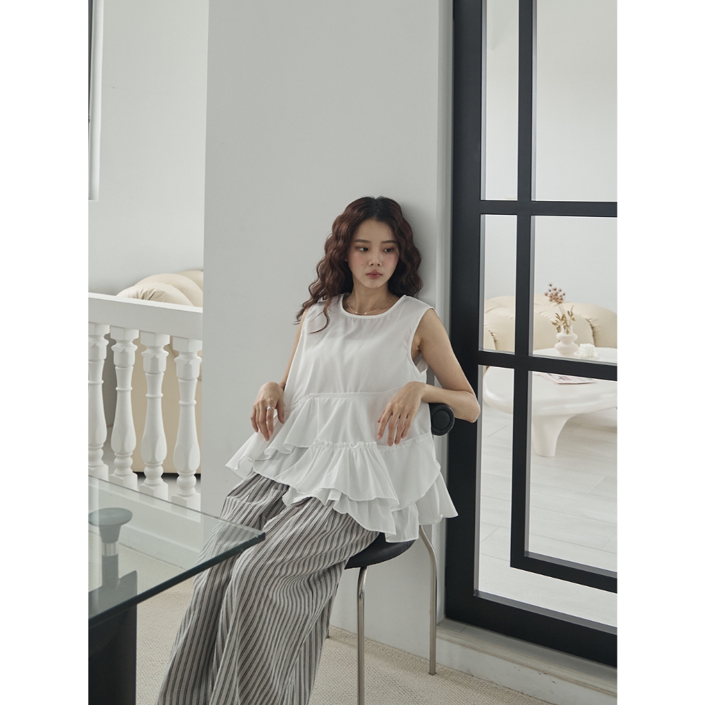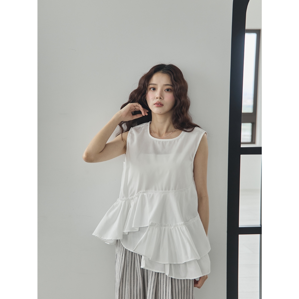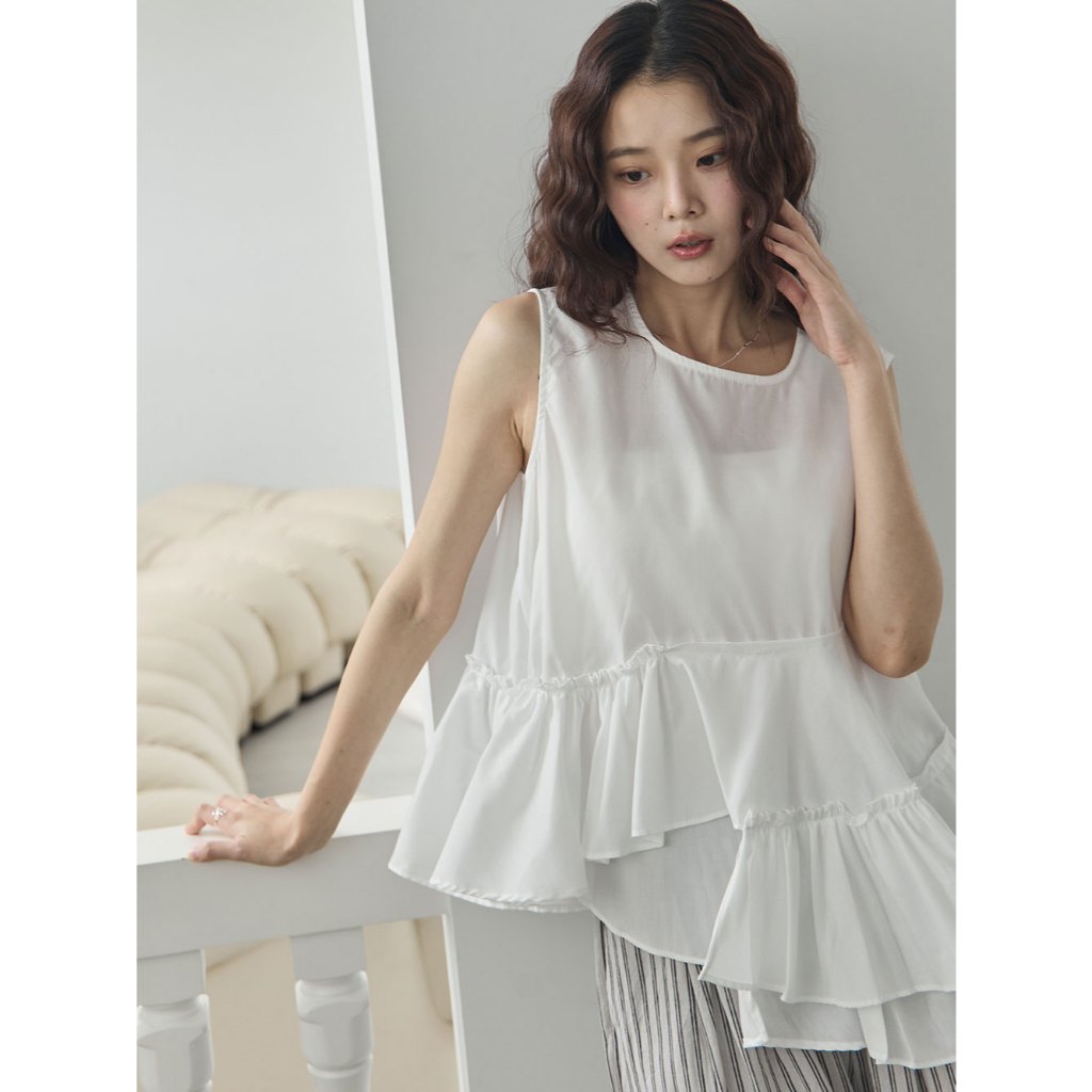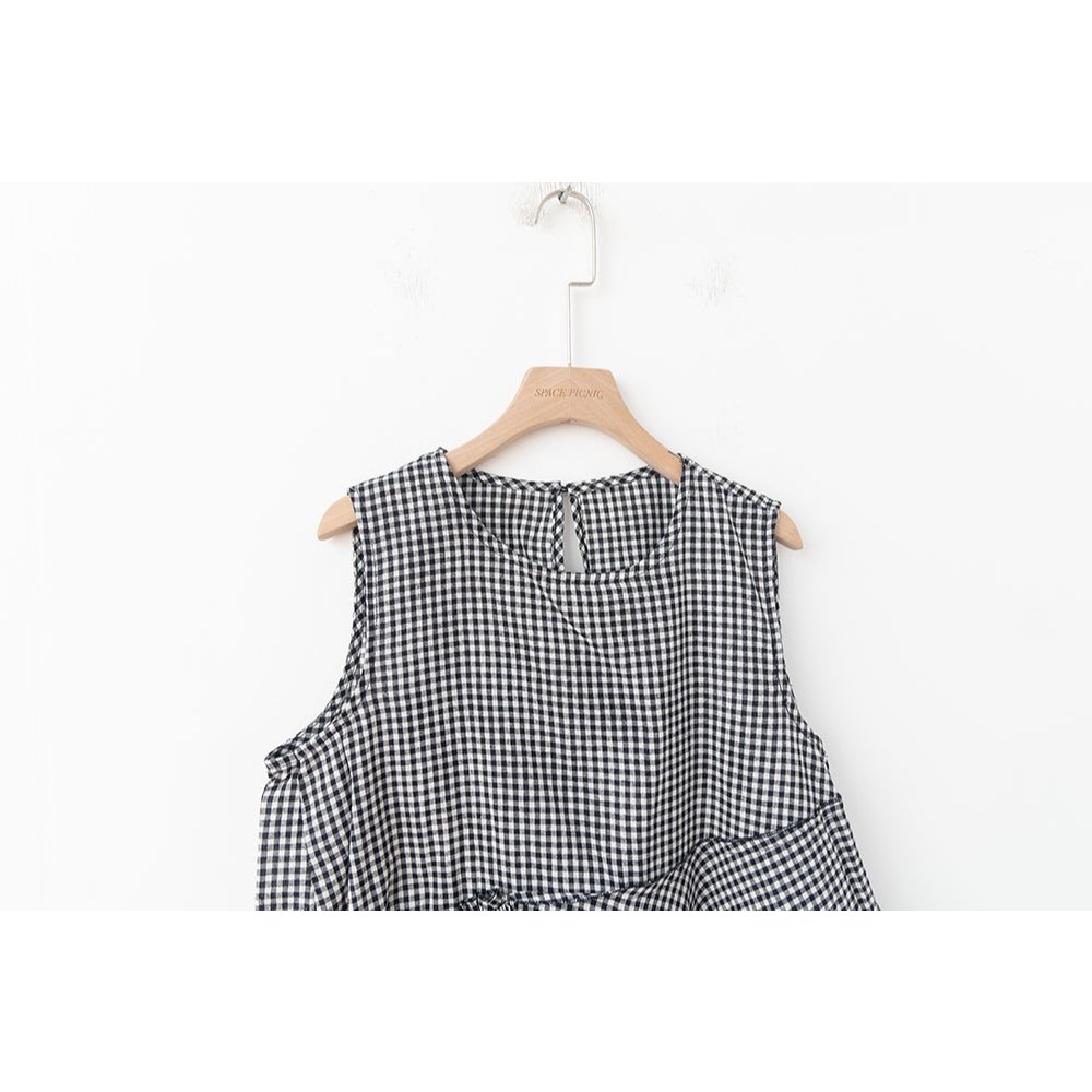 Space Picnic|不對稱荷葉雪紡背心-2色【2506275】白|格紋OthersSpace Picnic