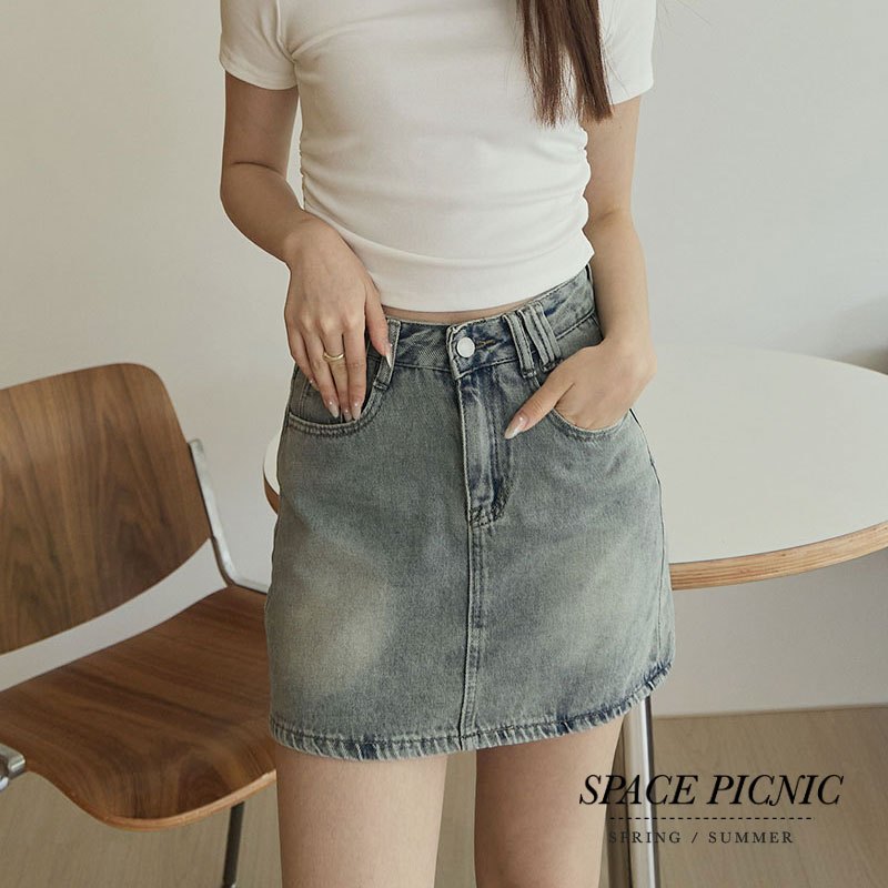 Space Picnic|復古牛仔短褲裙-2色【C24071046】淺藍,S|淺藍,M|淺藍,L|淺藍,XL|灰藍,S|灰藍,M|灰藍,L|灰藍,XLSkortsSpace Picnic