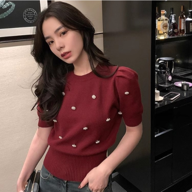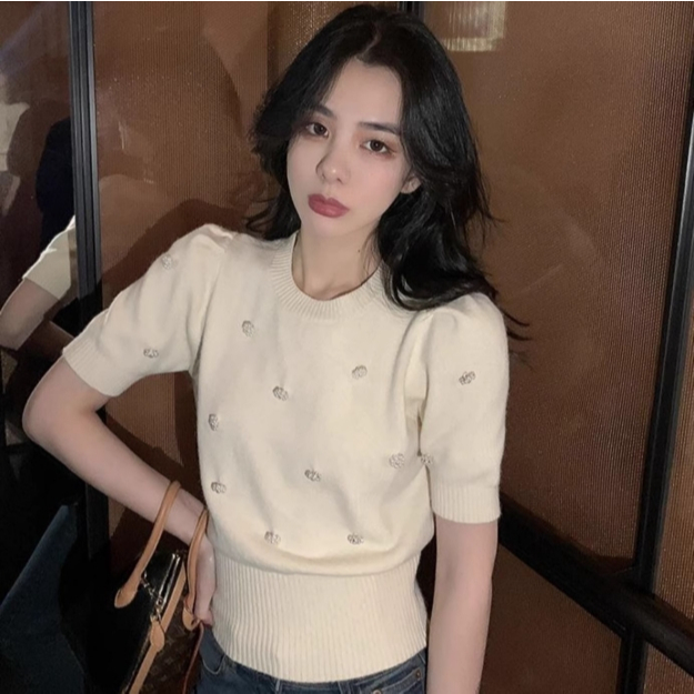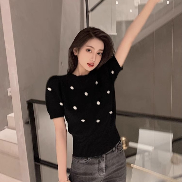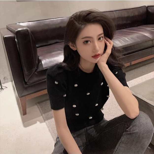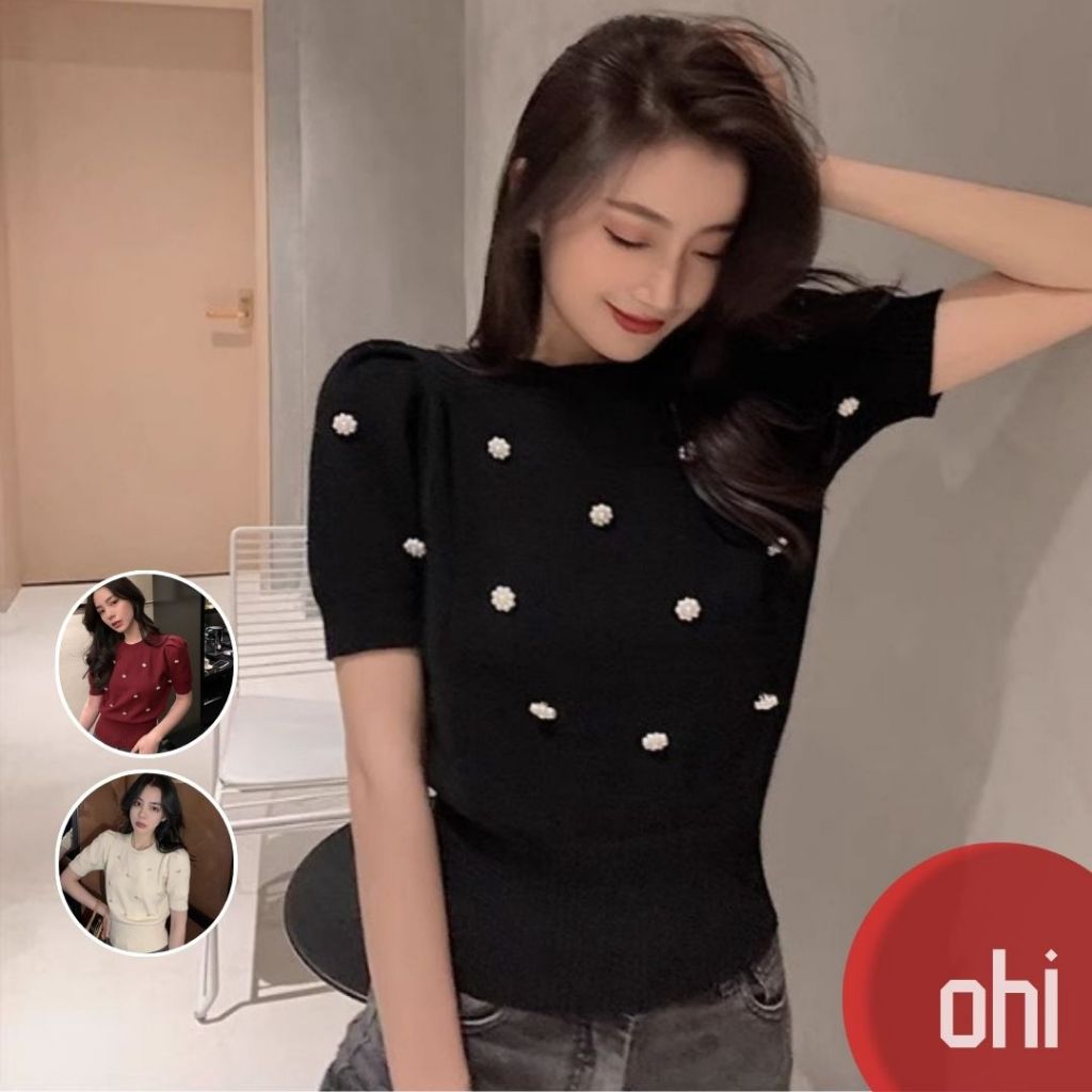 【ohi】冰絲針織衫 時尚洋氣短款上衣 女生上衣 針織上衣 女裝 顯瘦上衣 韓版上衣 GWD6667白色,F碼(40-65KG可穿)|黑色,F碼(40-65KG可穿)|紅色,F碼(40-65KG可穿)OthersOHI衣著