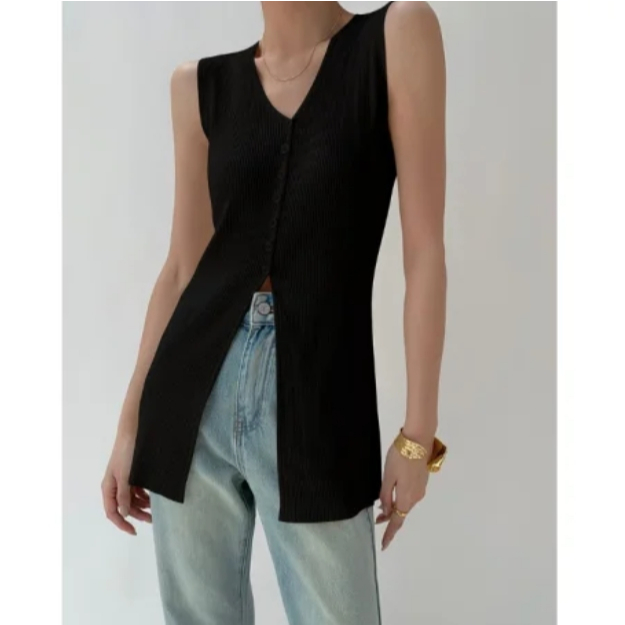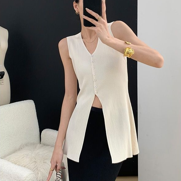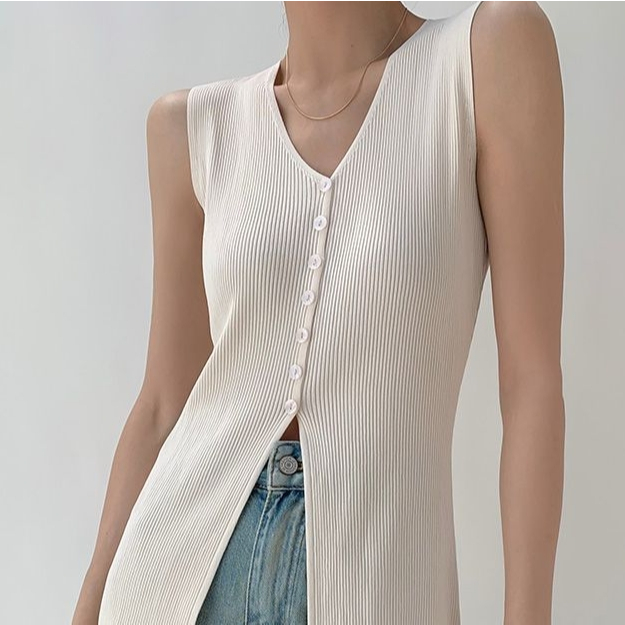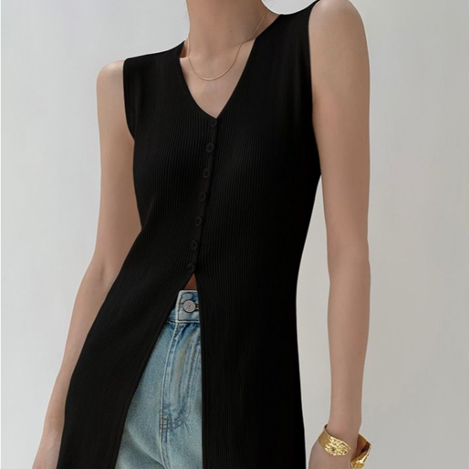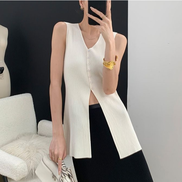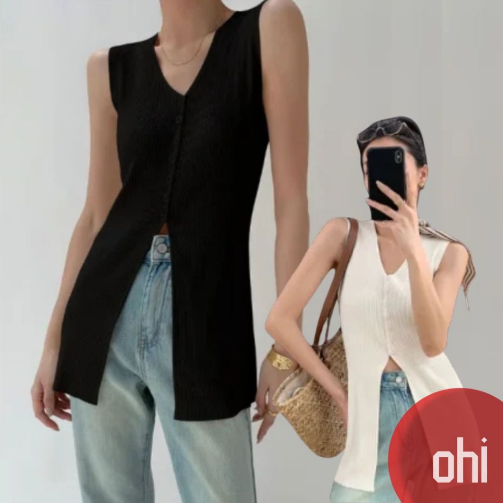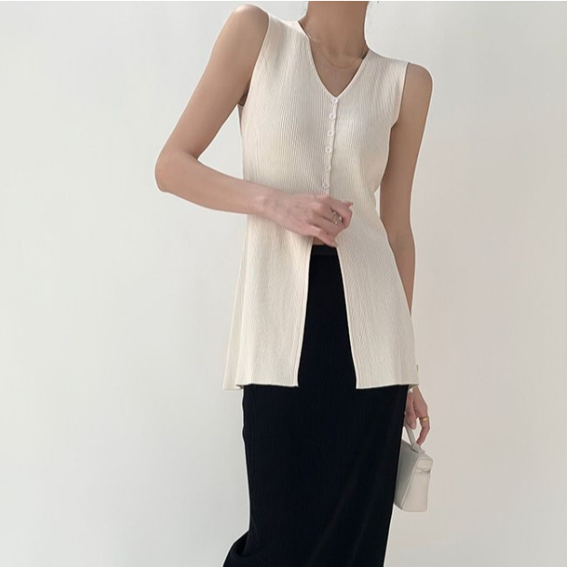 【ohi】法式V領無袖開衫背心 針織開衫 罩衫 外套 小外套 開衫外套 女上衣 女裝 GWHD77黑色,F碼(均碼40-55KG可穿)|白色,F碼(均碼40-55KG可穿)VestsOHI衣著