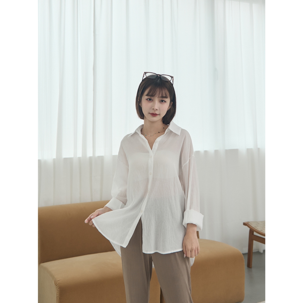 Space Picnic|輕薄微透肌長袖襯衫-4色【2505219】白|綠|藍|杏Shirts & BlousesSpace Picnic