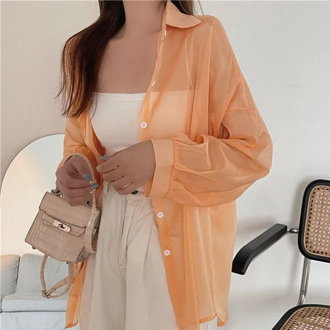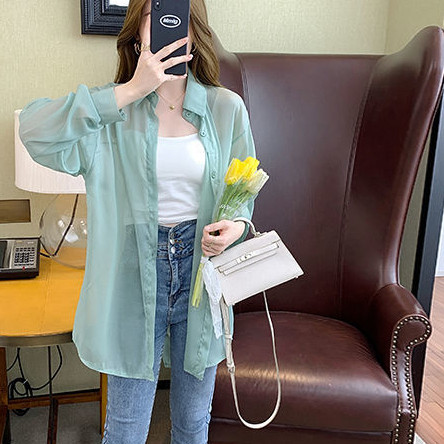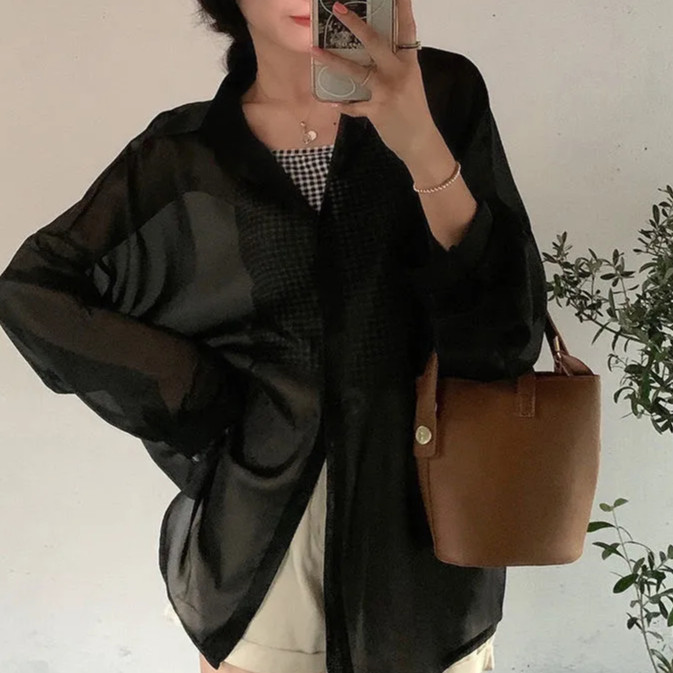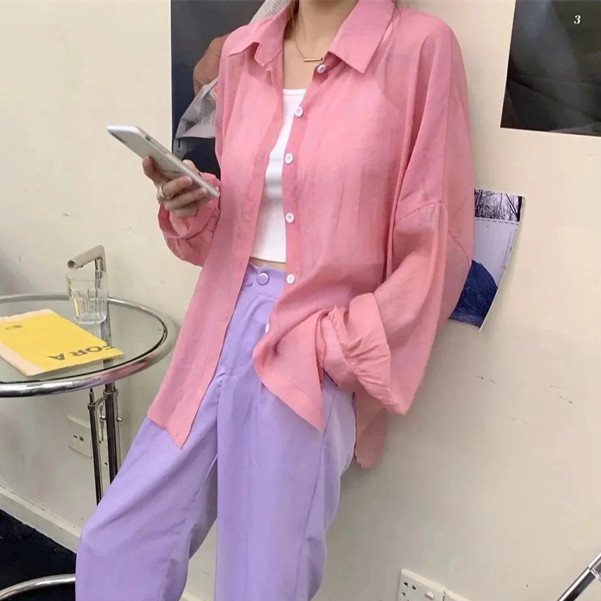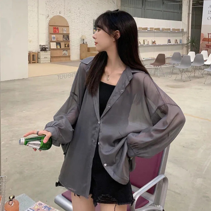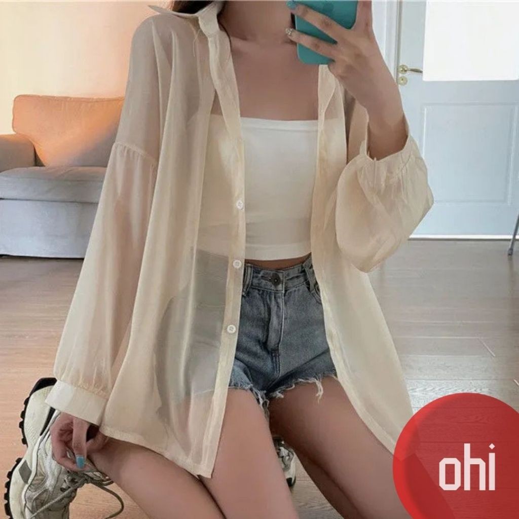 【ohi】韓版寬鬆男友風防曬絲滑墜感長袖襯衫 薄外套 長袖上衣 外套 女裝 衣服 寬鬆上衣 素色 GSH342黑色|淺藍|青色|桔紅|白色|灰色|粉紅|淺紫|杏色Shirts & BlousesOHI衣著