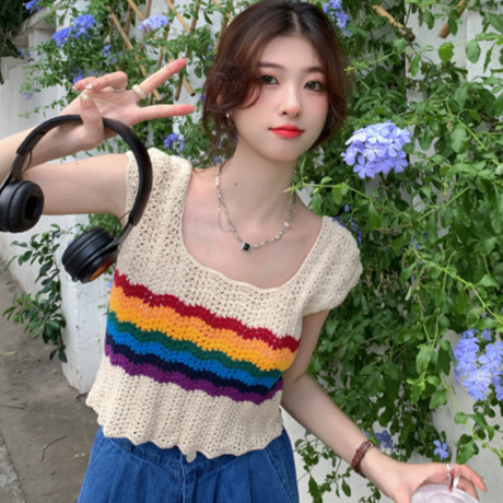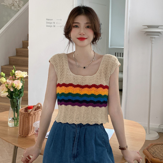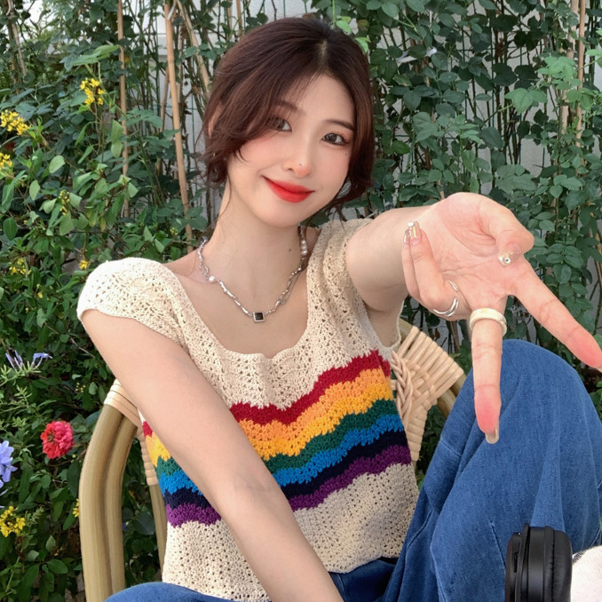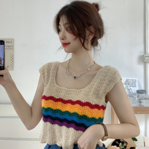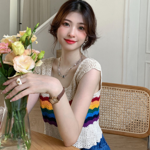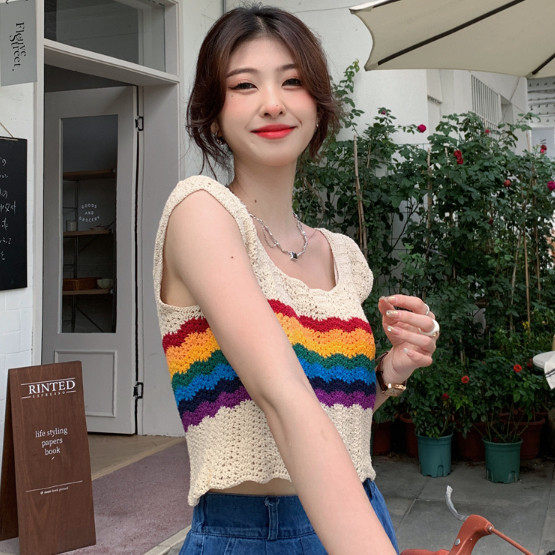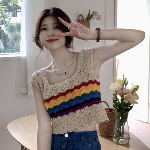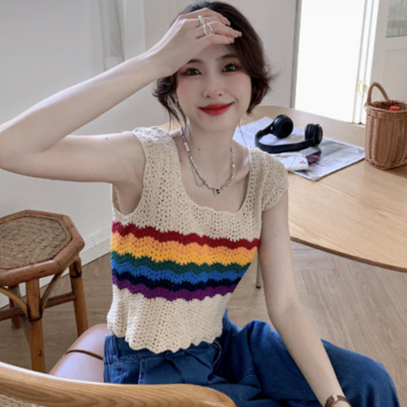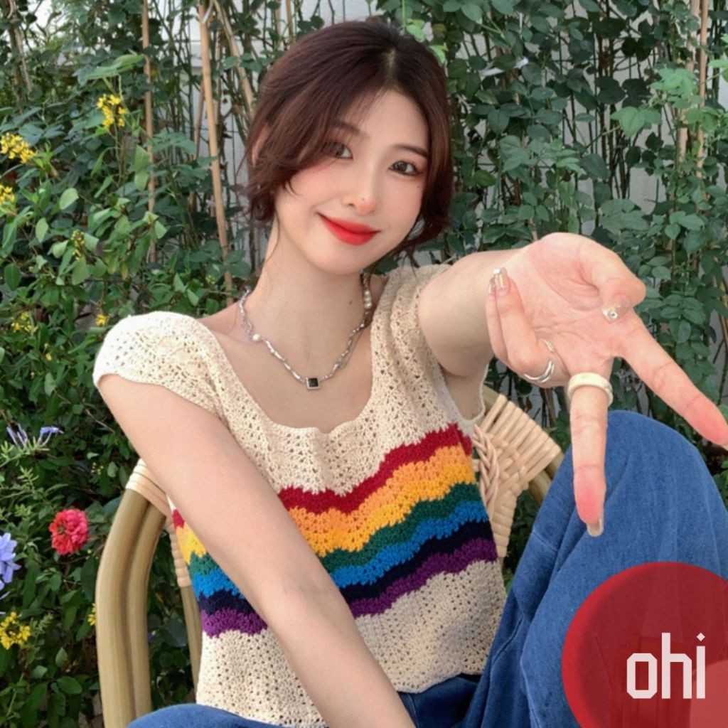 【ohi】彩虹條紋針織吊帶背心女修身外穿 無袖上衣上衣 小可愛 女裝 背心女 衣服GWD3291彩虹條紋,均碼 40-60kgTube TopsOHI衣著