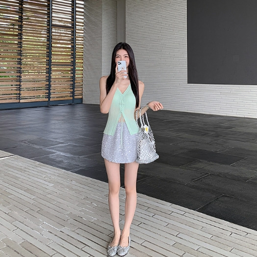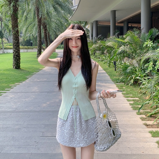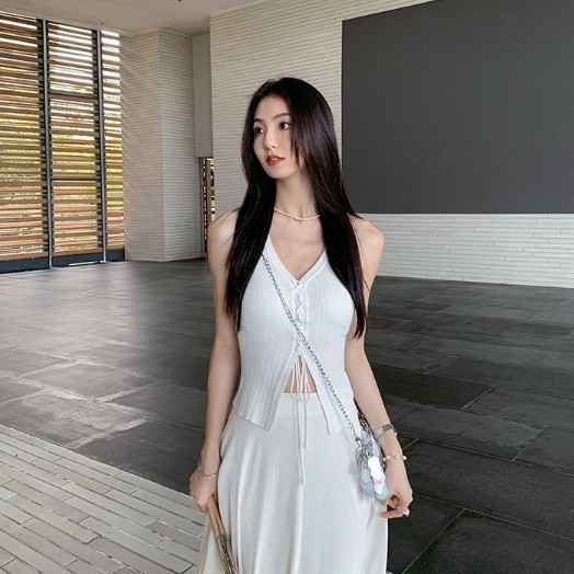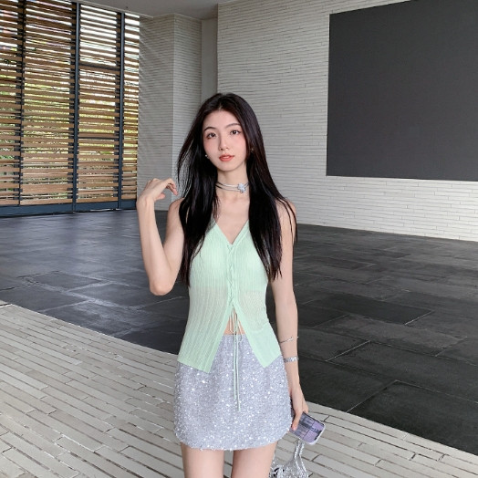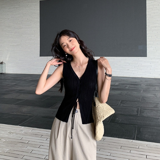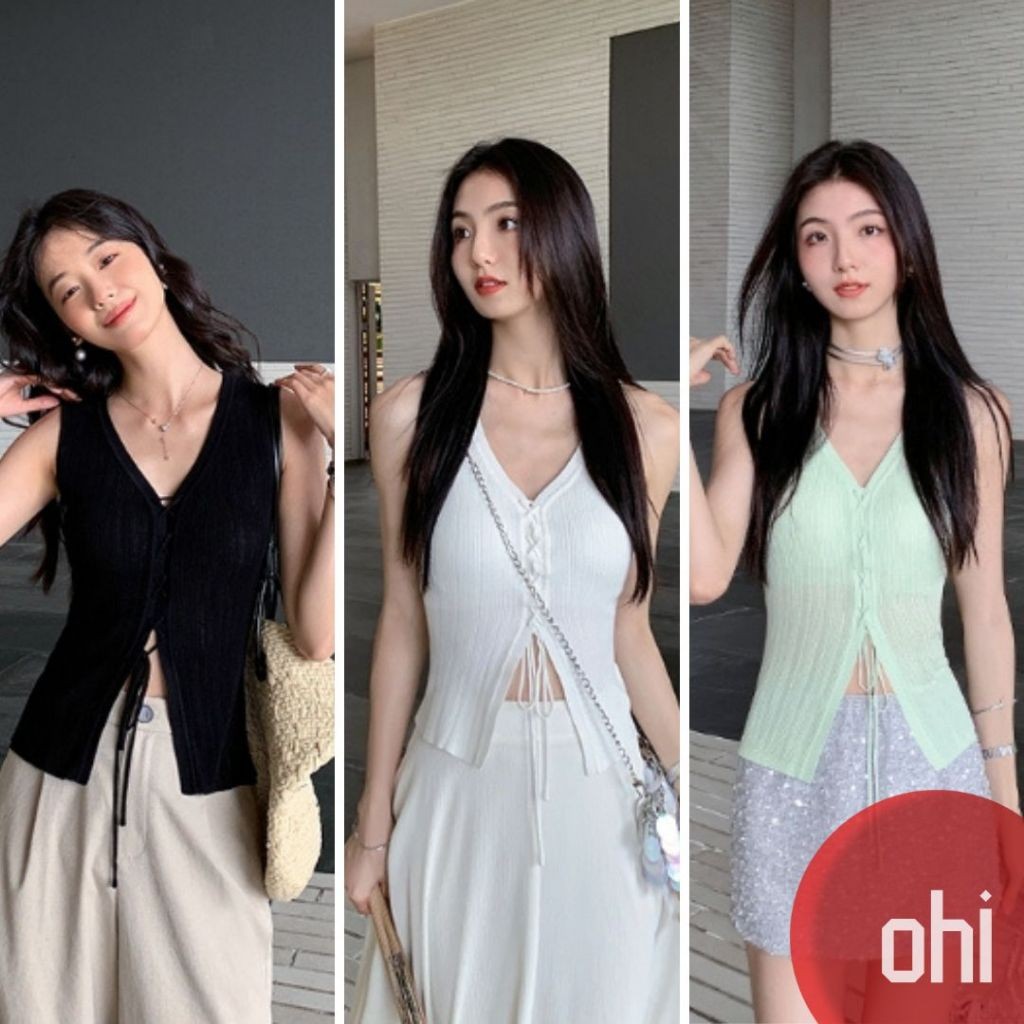 【ohi】V領針織背心 薄款綁帶設計感無袖上衣 女生顯瘦百搭 吊帶背心 背心小可愛 女裝 背心女 女裝 GVD5725黑色,均碼-F(40-65KG可穿)|白色,均碼-F(40-65KG可穿)|綠色,均碼-F(40-65KG可穿)Tanks & CamisolesOHI衣著