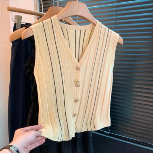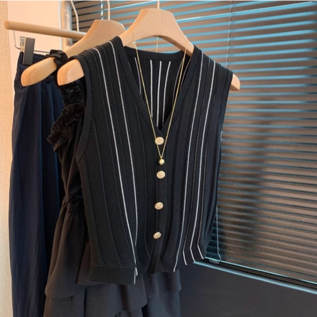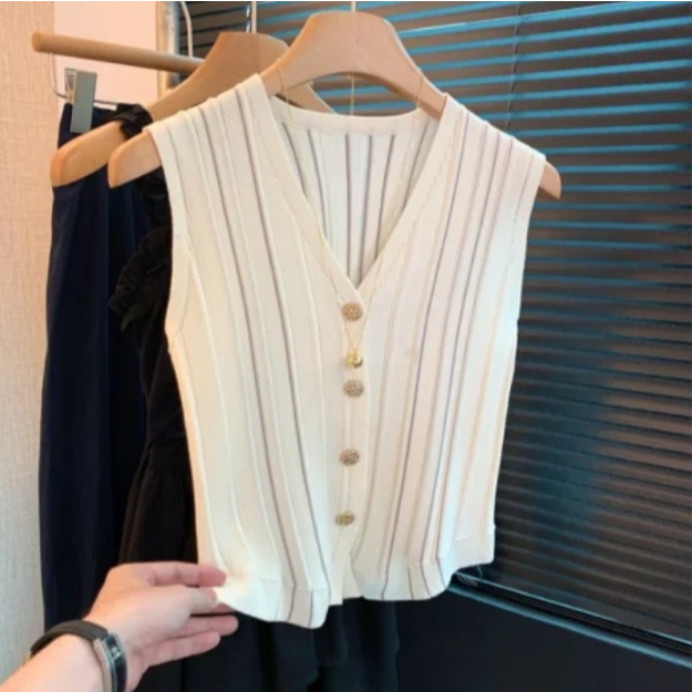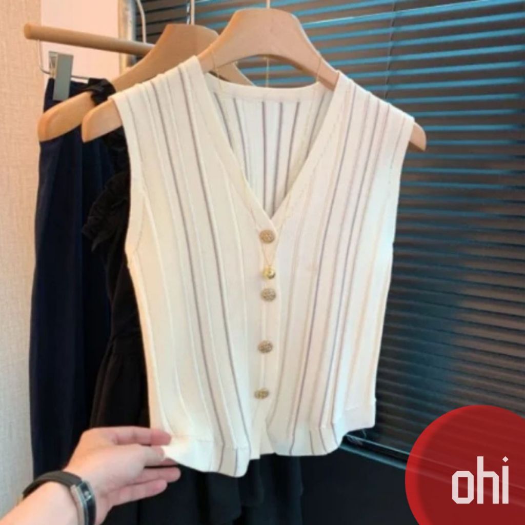 【ohi】復古V領無袖針織開衫 修身顯瘦馬甲背心 針織開衫 罩衫 外套 小外套 開衫外套 女上衣 女裝 GWH2191黑色,F碼(均碼40-55KG可穿)|白色,F碼(均碼40-55KG可穿)|杏色,F碼(均碼40-55KG可穿)OHI衣著
