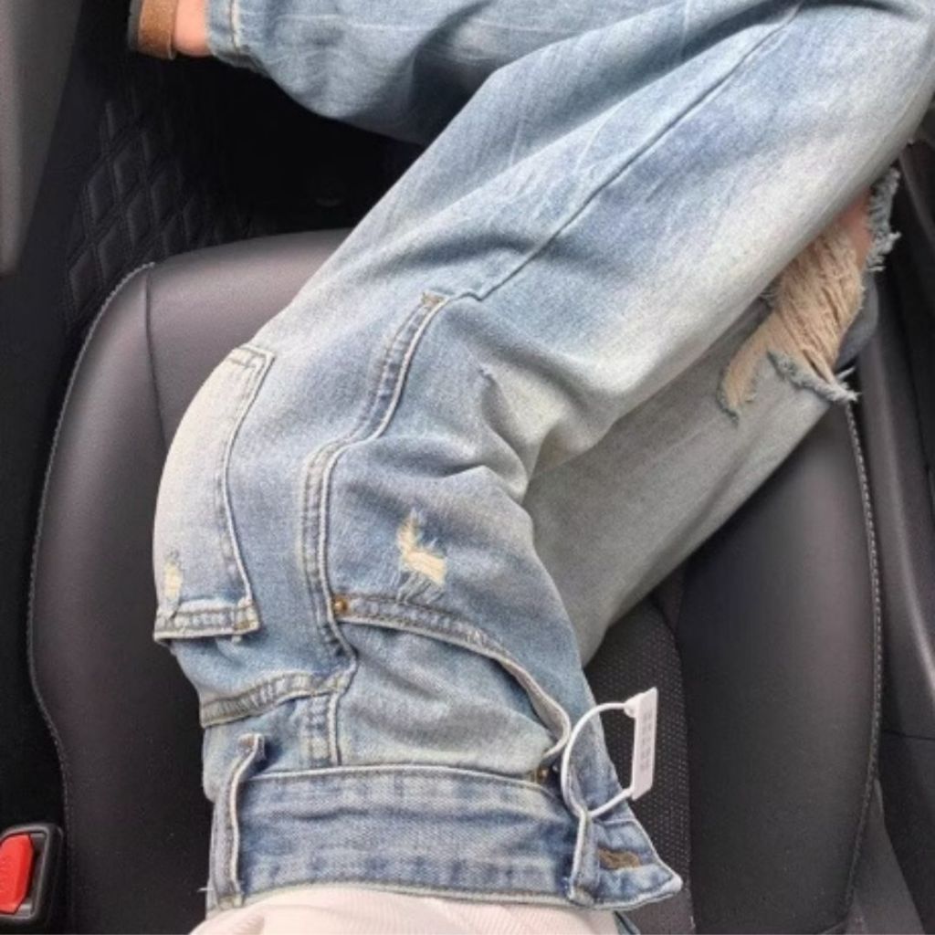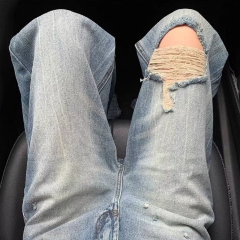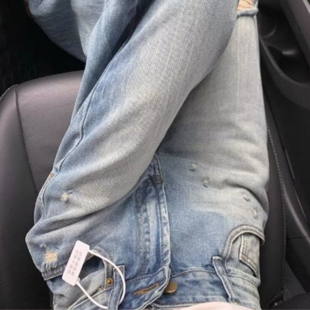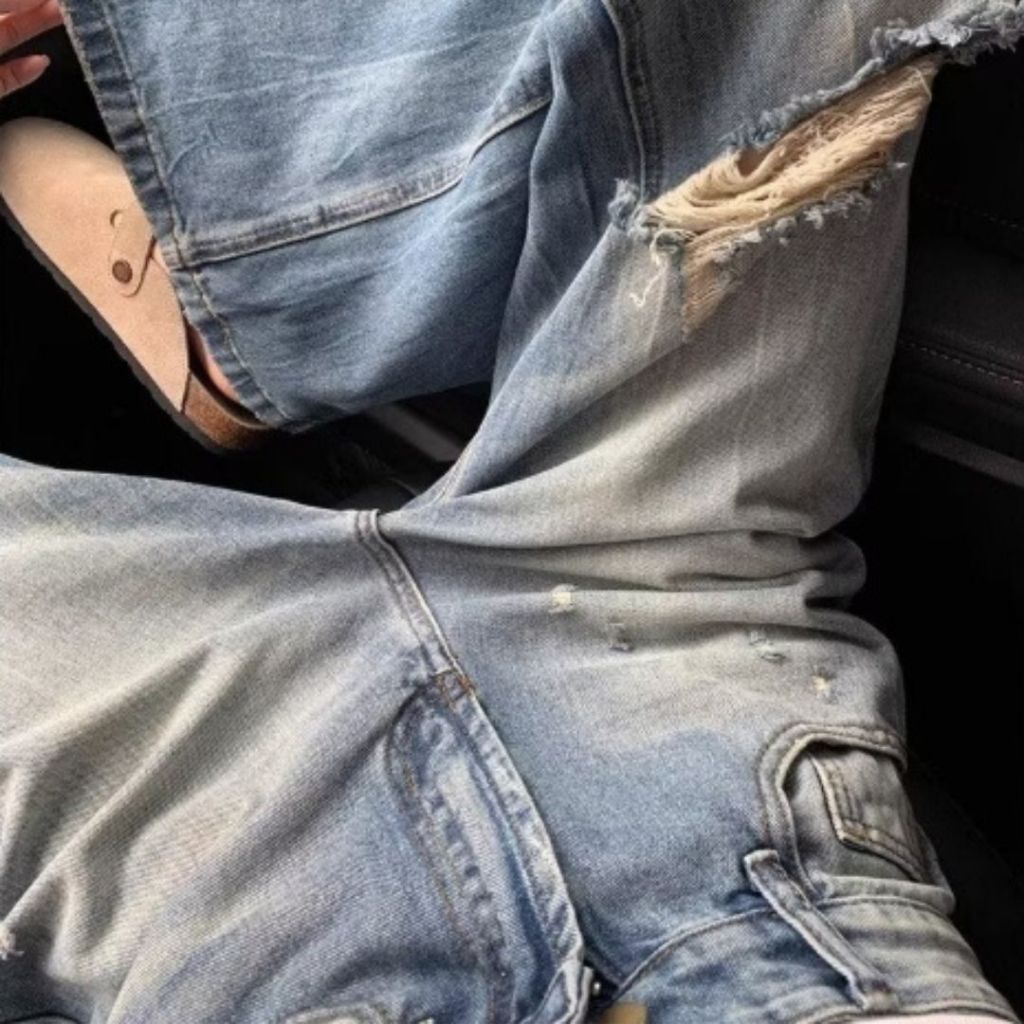 【ohi】美式設計感復古闊腿破洞牛仔褲 顯瘦牛仔長褲 長褲女 女生褲子 休閒長褲 大碼女裝 XGJY5542藍色,S|藍色,M|藍色,L|藍色,XL|藍色,2XL|藍色,3XL|藍色,4XLOHI衣著